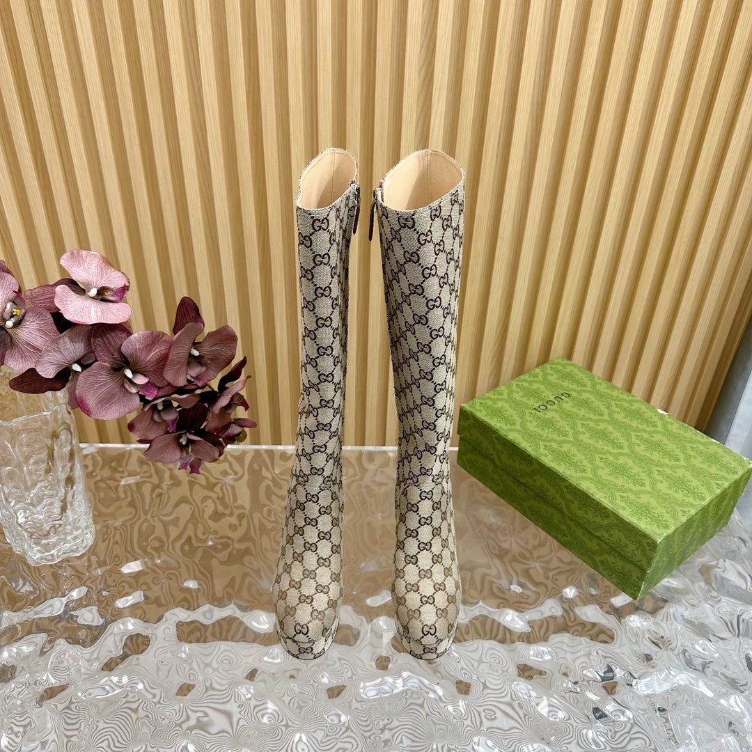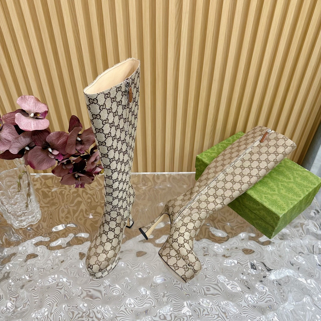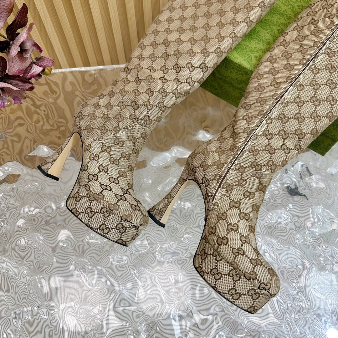PLATFORM KNEE BOOTS IN ECRU BEIGE MONOGRAM CANVAS AND SHEEPSKIN LINING