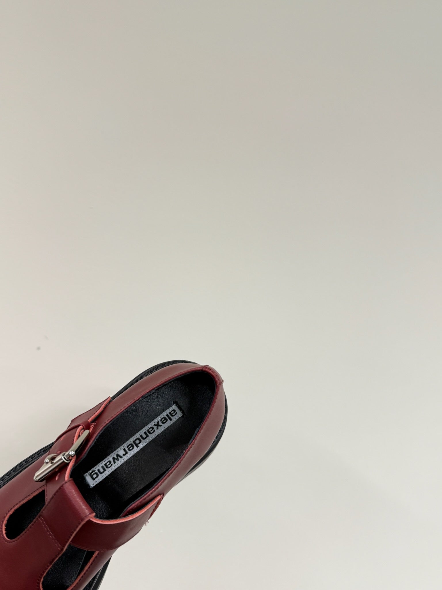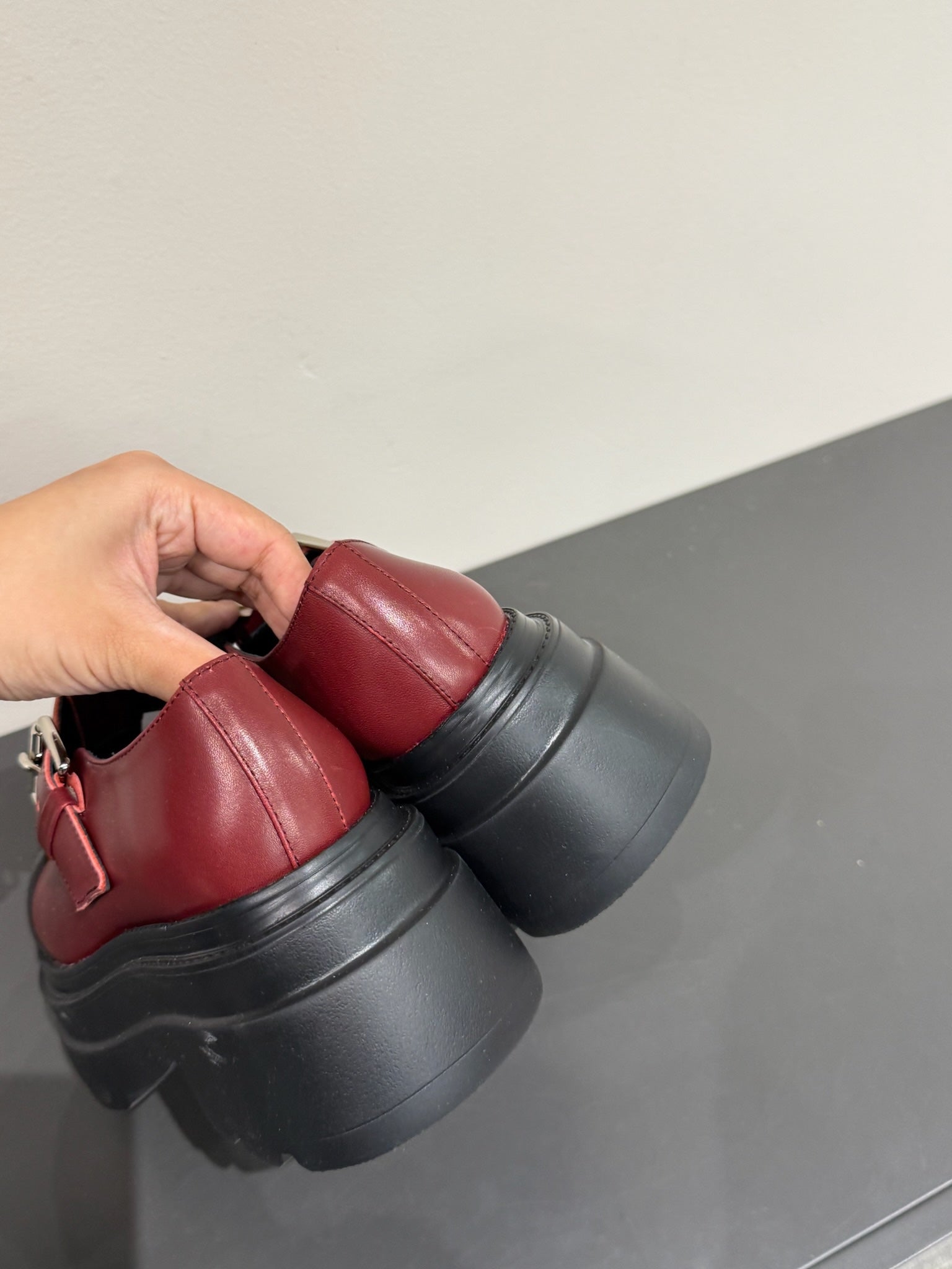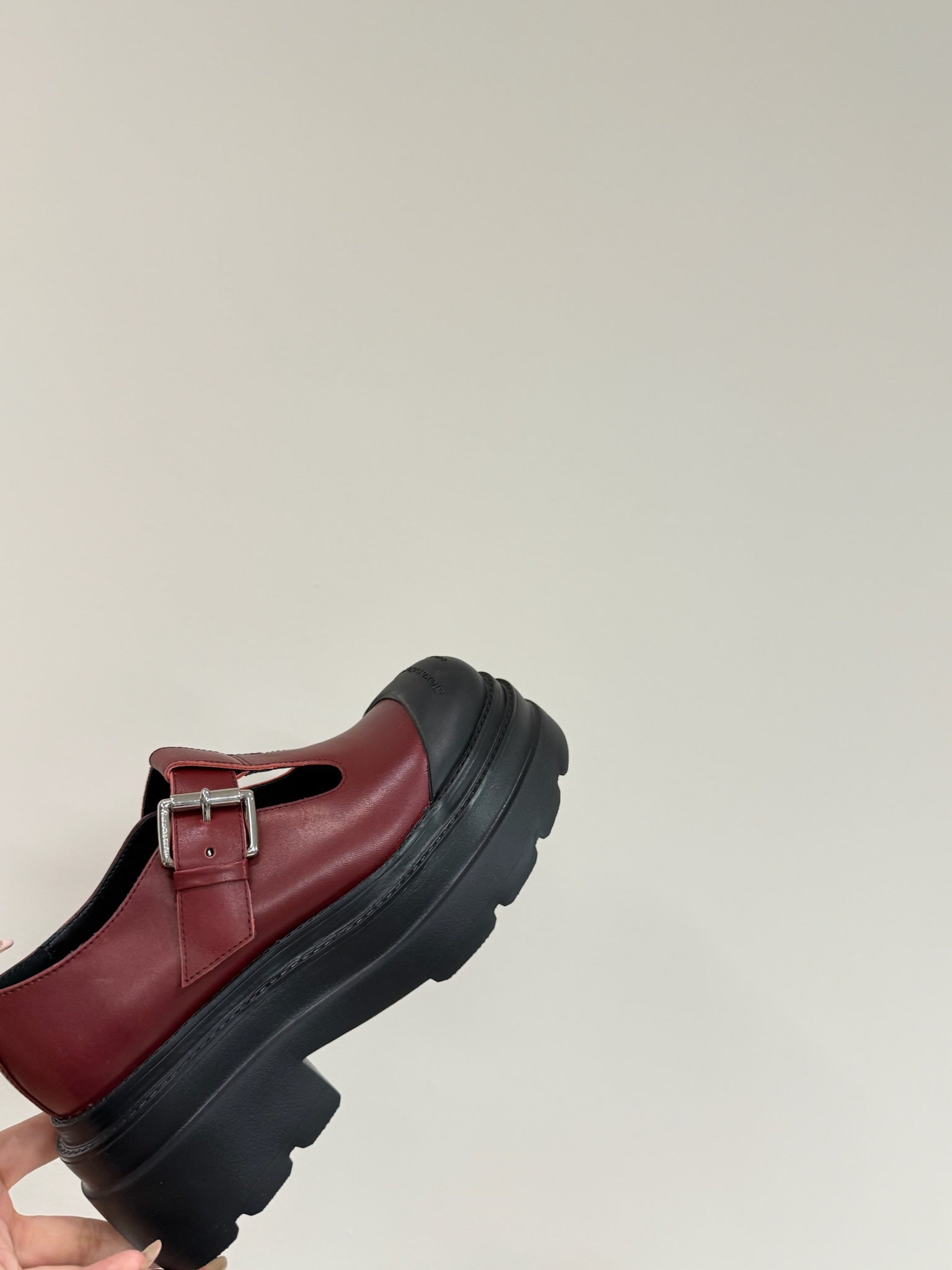 PLATFORM PATCHWWORK MARY JANE IN BLACK MIX BURGUNDY RED CALFSKIN