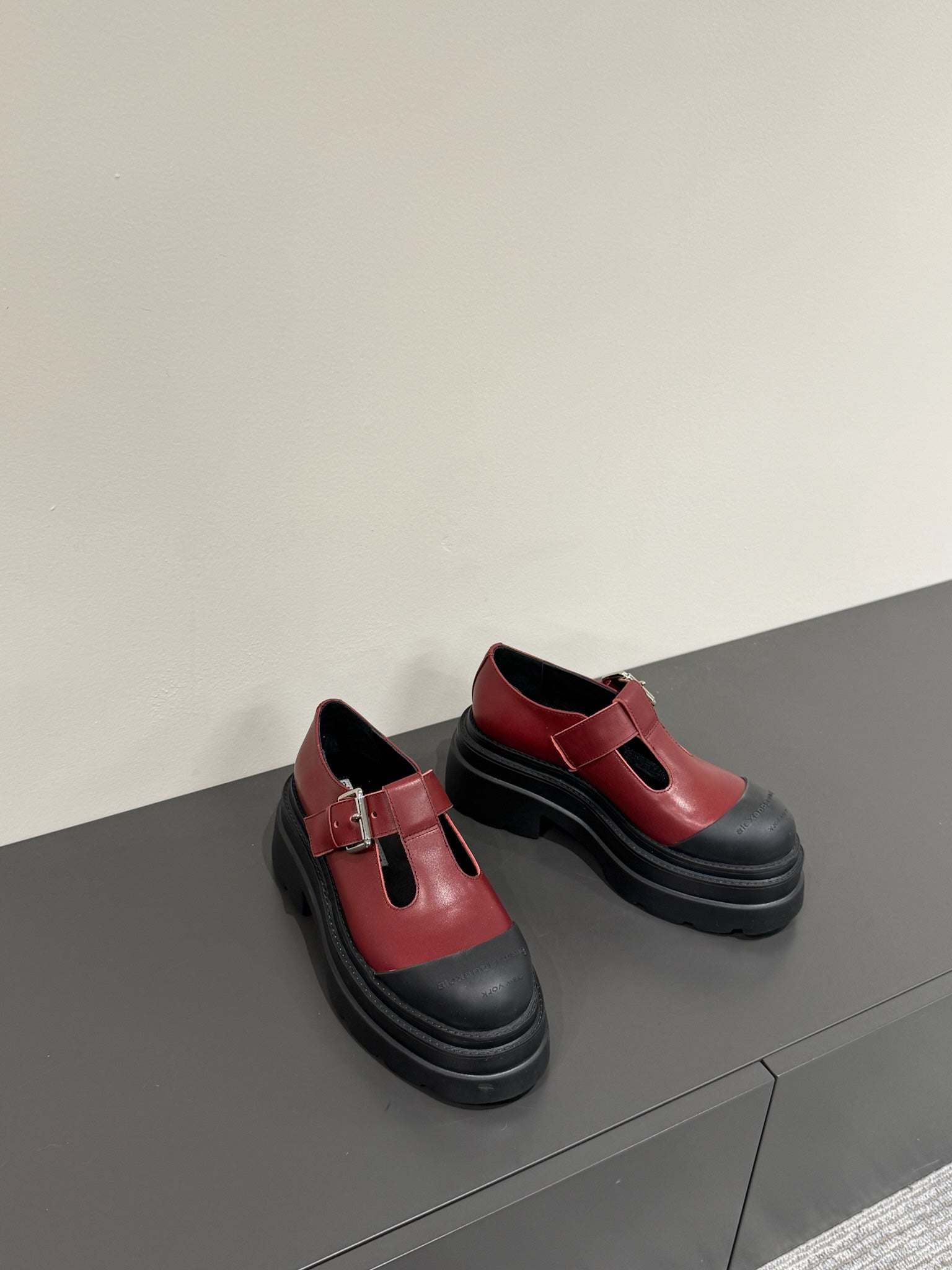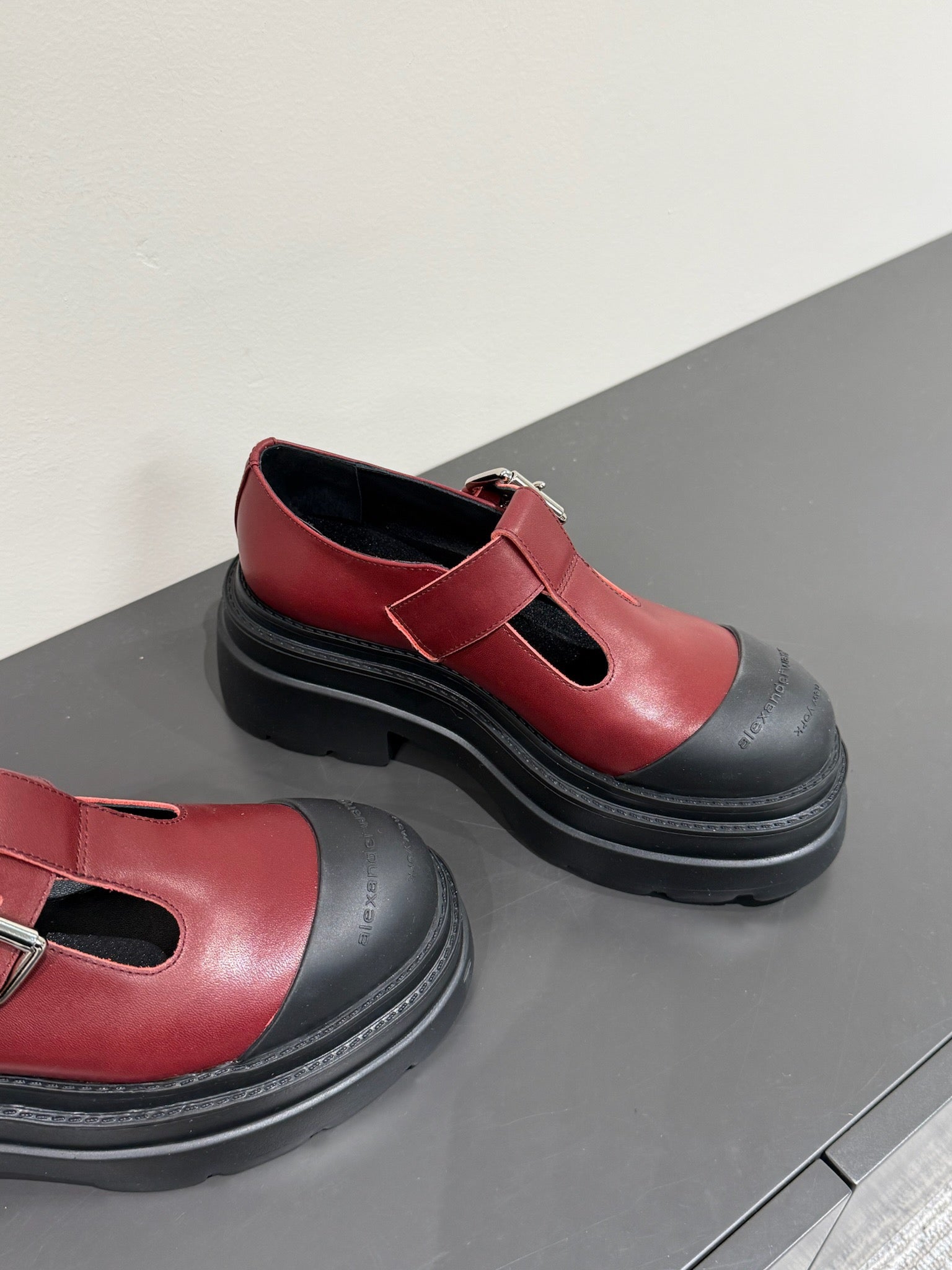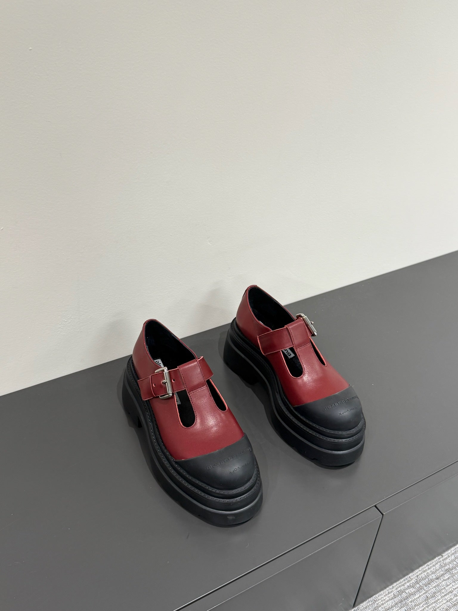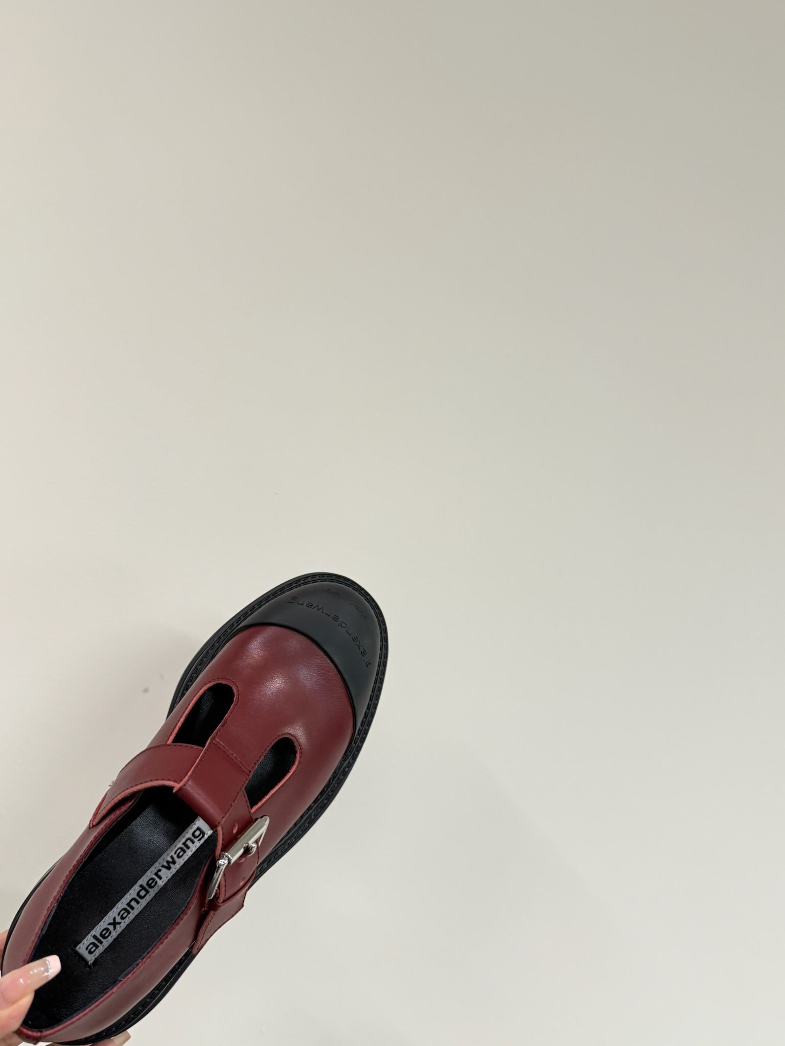 PLATFORM PATCHWWORK MARY JANE IN BLACK MIX BURGUNDY RED CALFSKIN