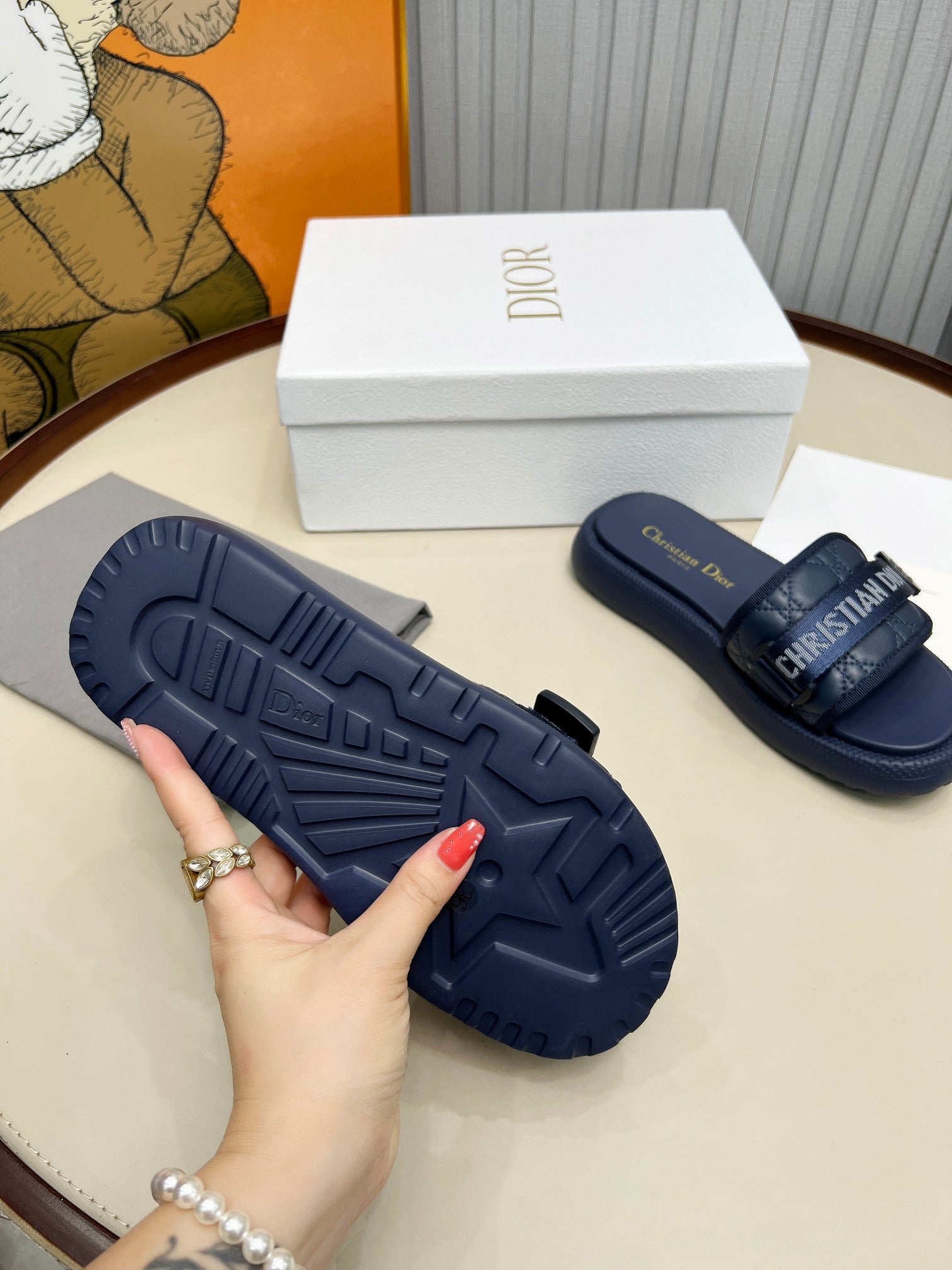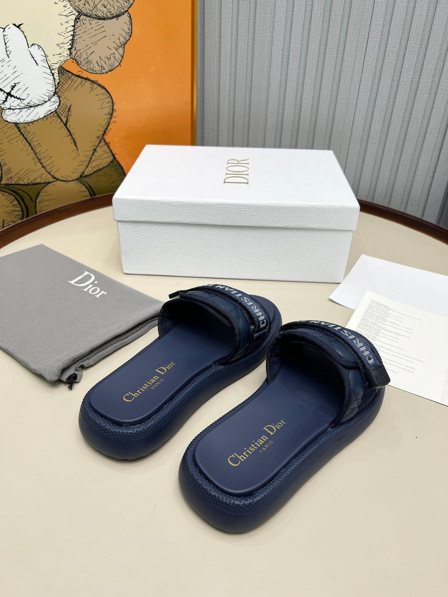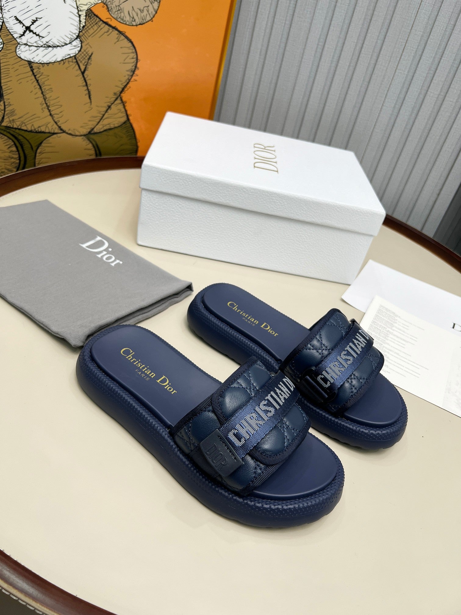 PLATFORM SLIDES 25S 50MM IN NAVY BLUE CALFSKIN AND ELECTRIC FABRIC