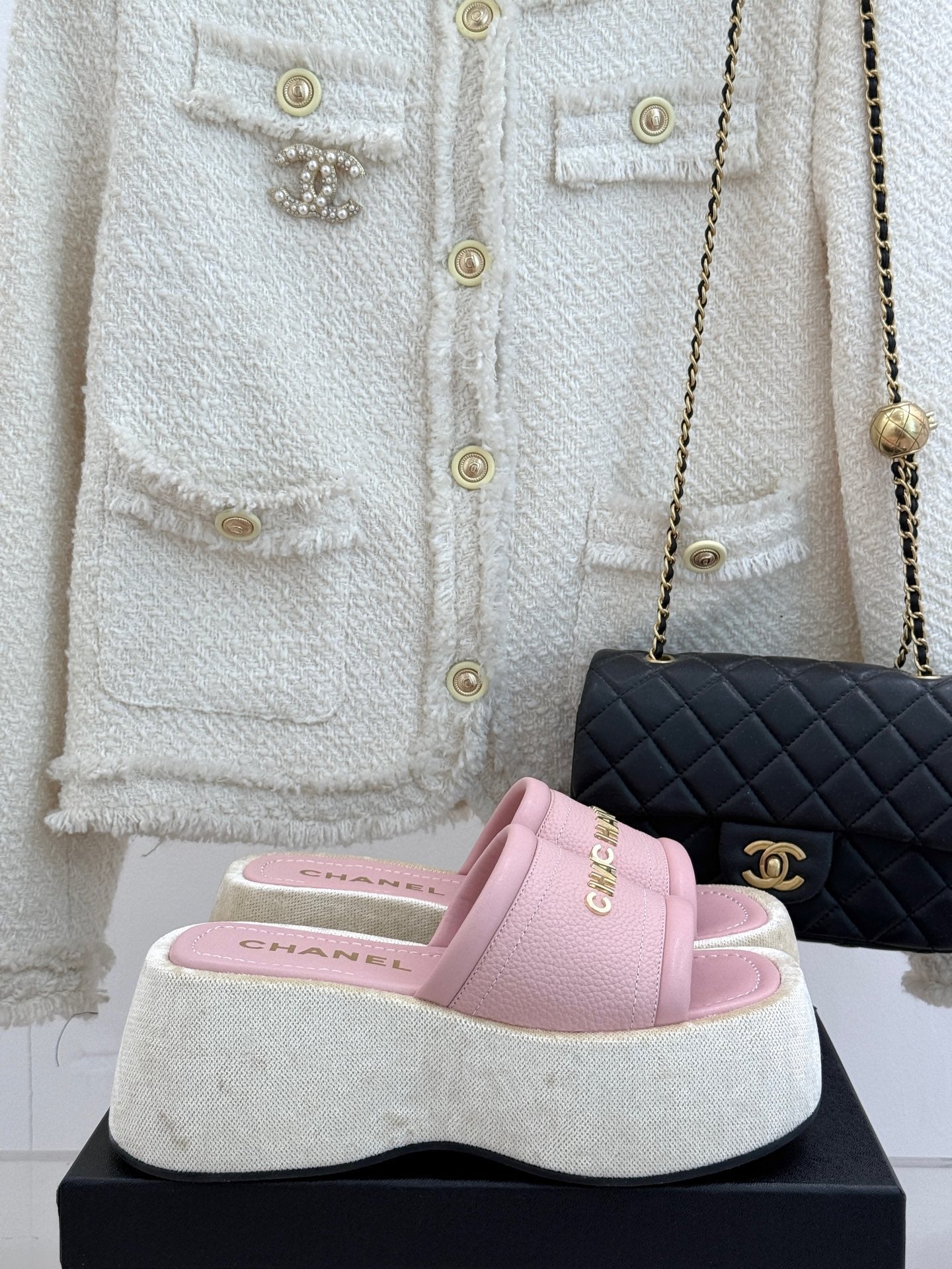 PLATFORM SLIPPERS IN BABY PINK LAMBSKIN