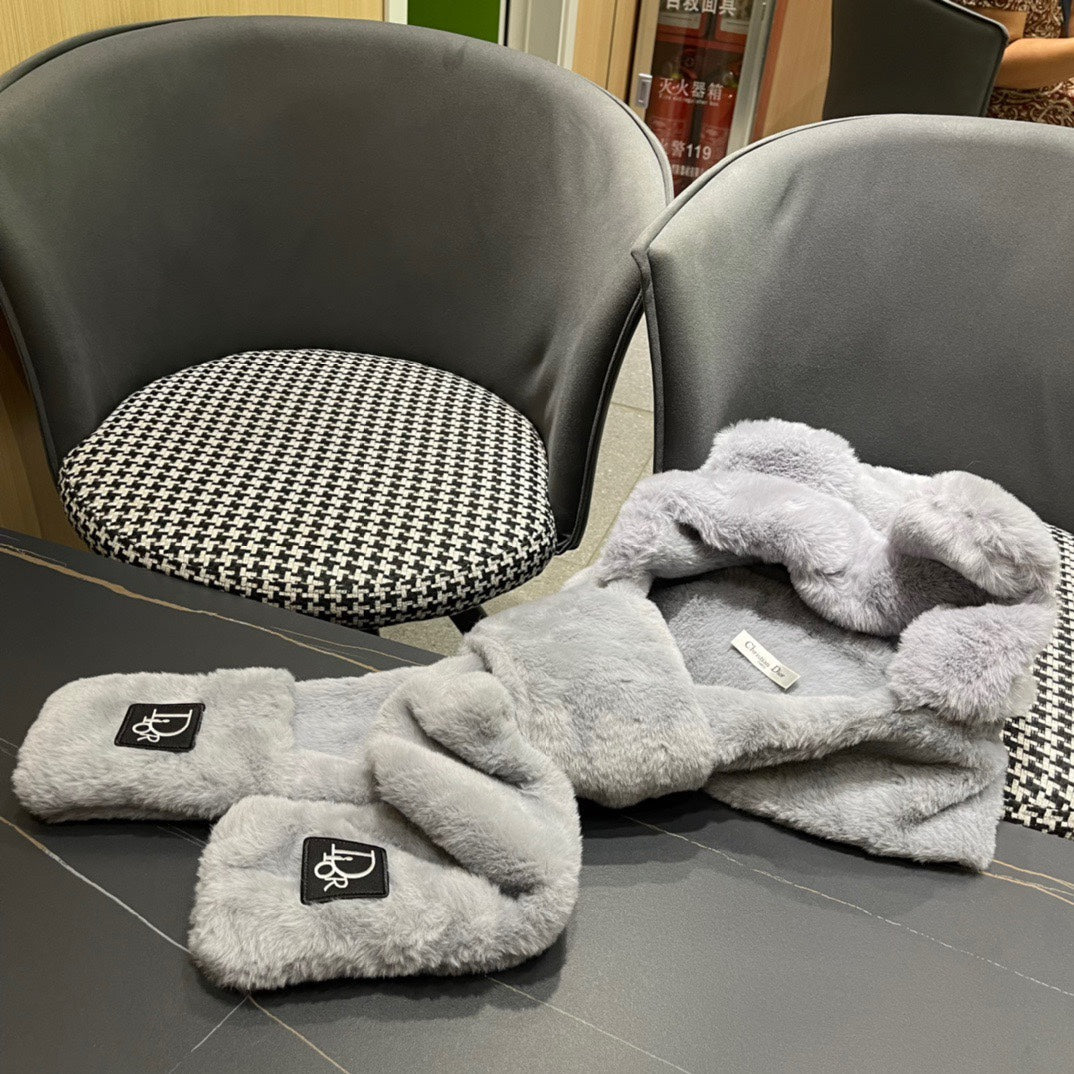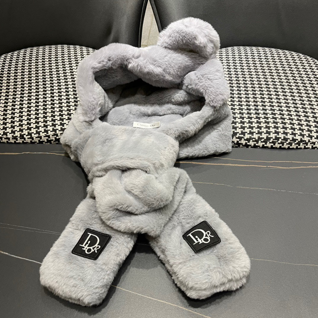 PLUSH WARM HAT IN GRAY RABBIT FUR WITH FOX EARS 439586