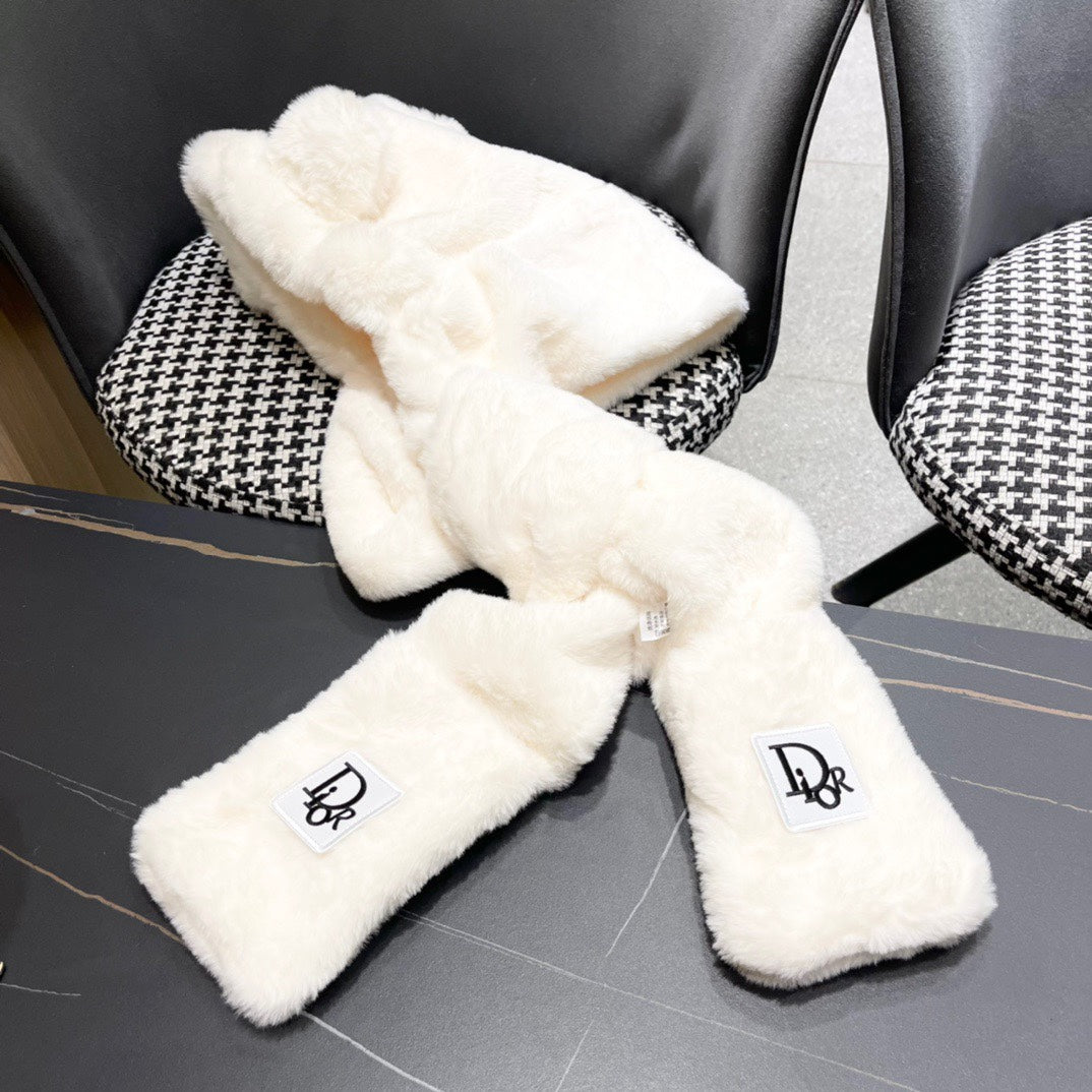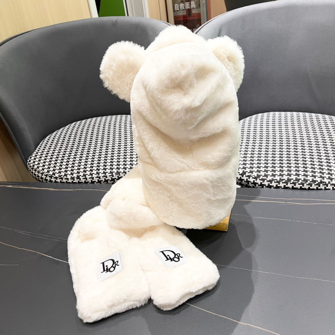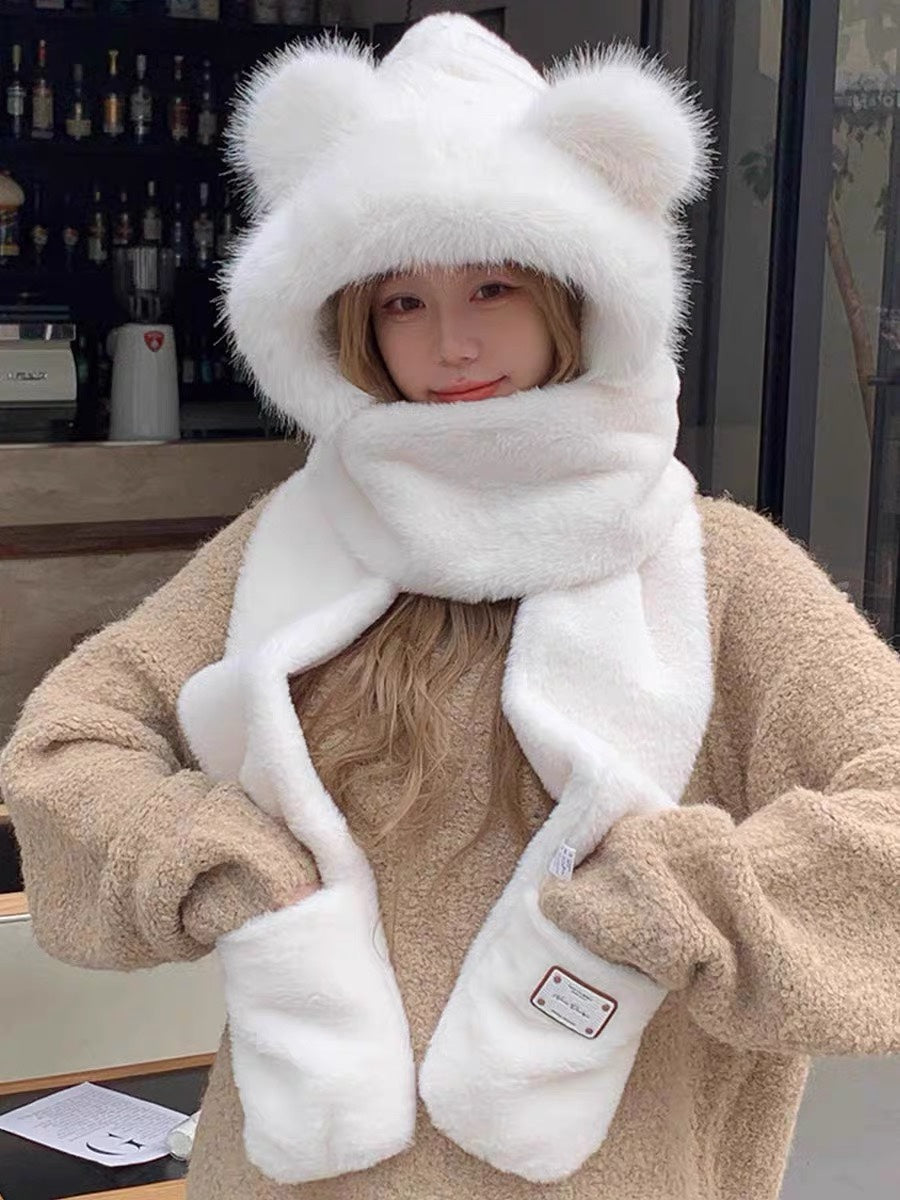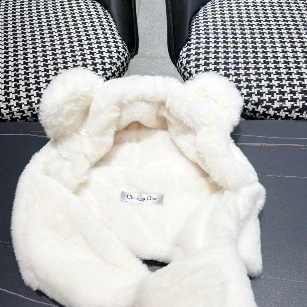 PLUSH WARM HAT IN WHITE RABBIT FUR WITH FOX EARS 439587