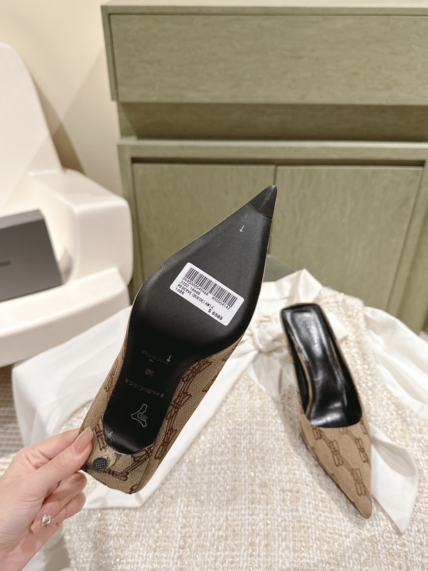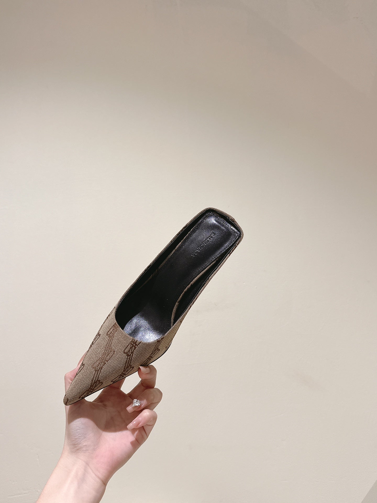 POINTED HIGH MULES IN BEIGE MONOGRAM JACQUARD FABRIC