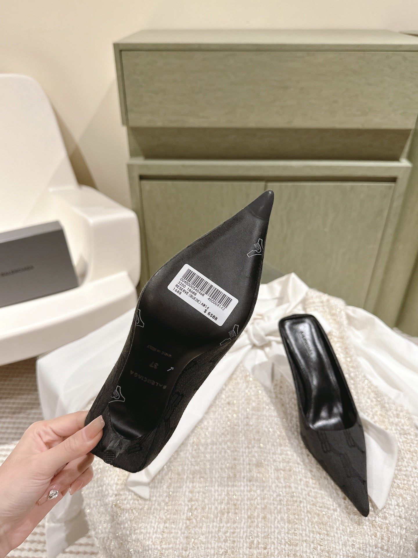 POINTED HIGH MULES IN BLACK MONOGRAM JACQUARD FABRIC
