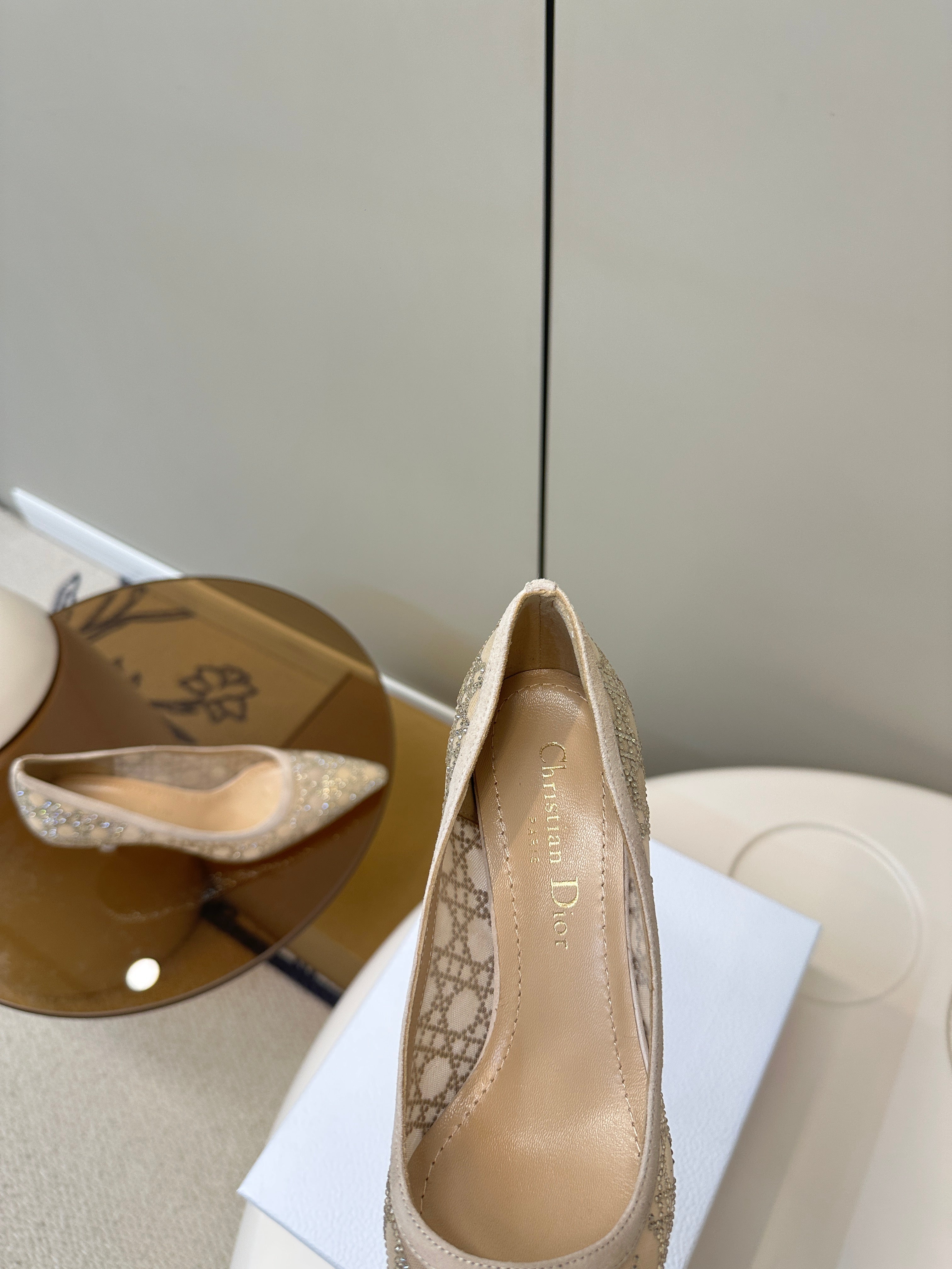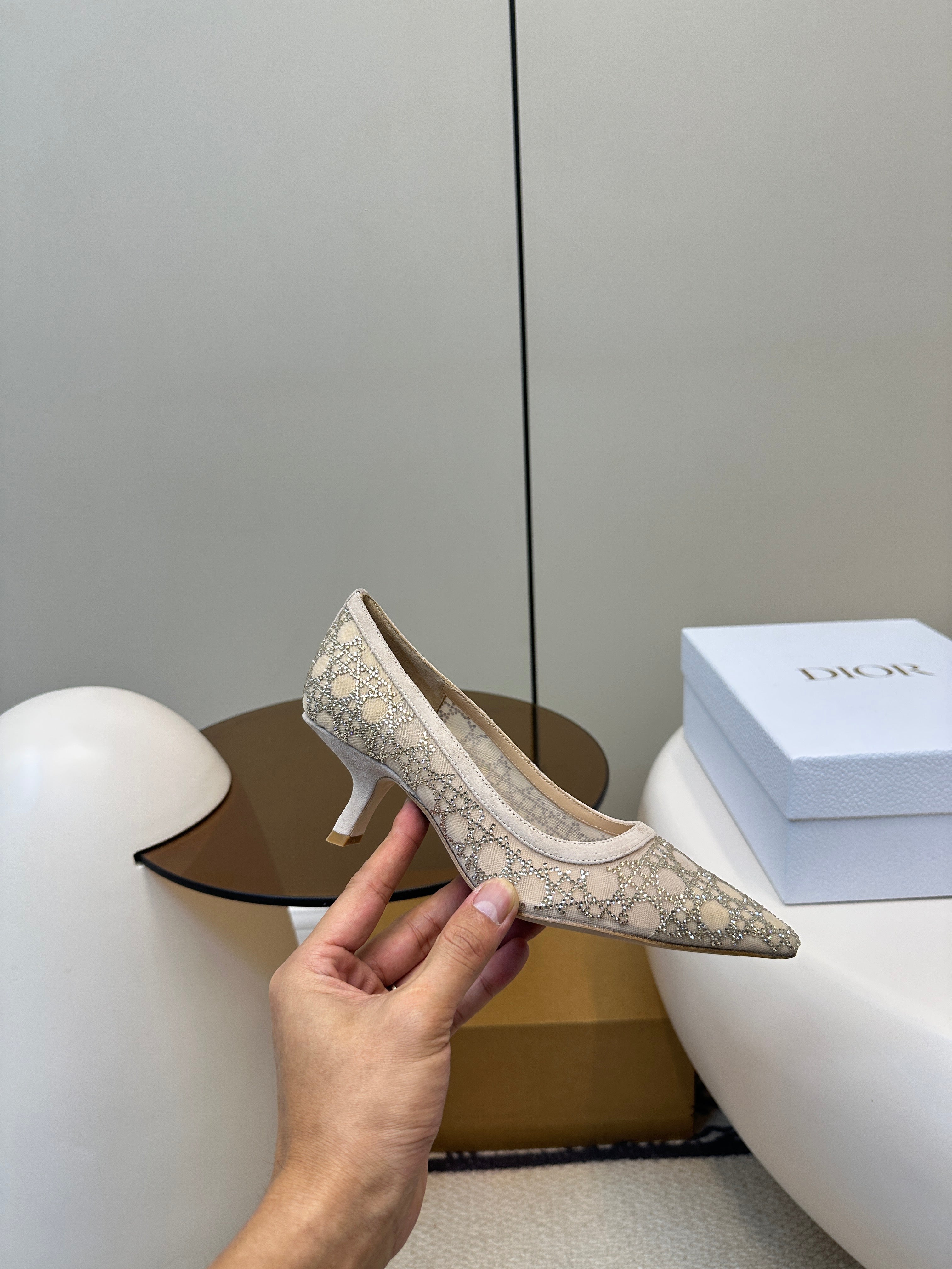 POINTED TOE HEELS 55MM IN NUDE MESH WITH RHINESTONES