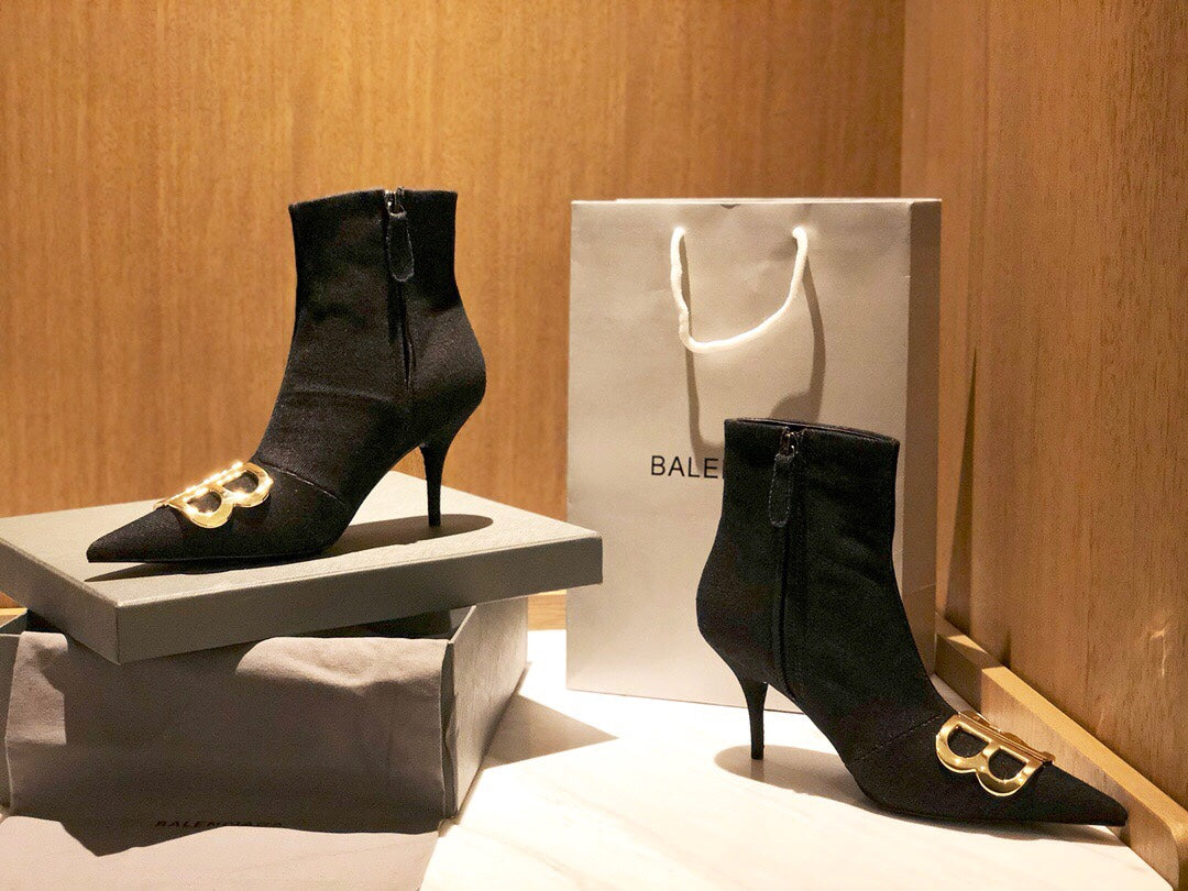 POINTED-TOE HIGH HEEL 80 MM ANKLE BOOTS IN BLACK DENIM