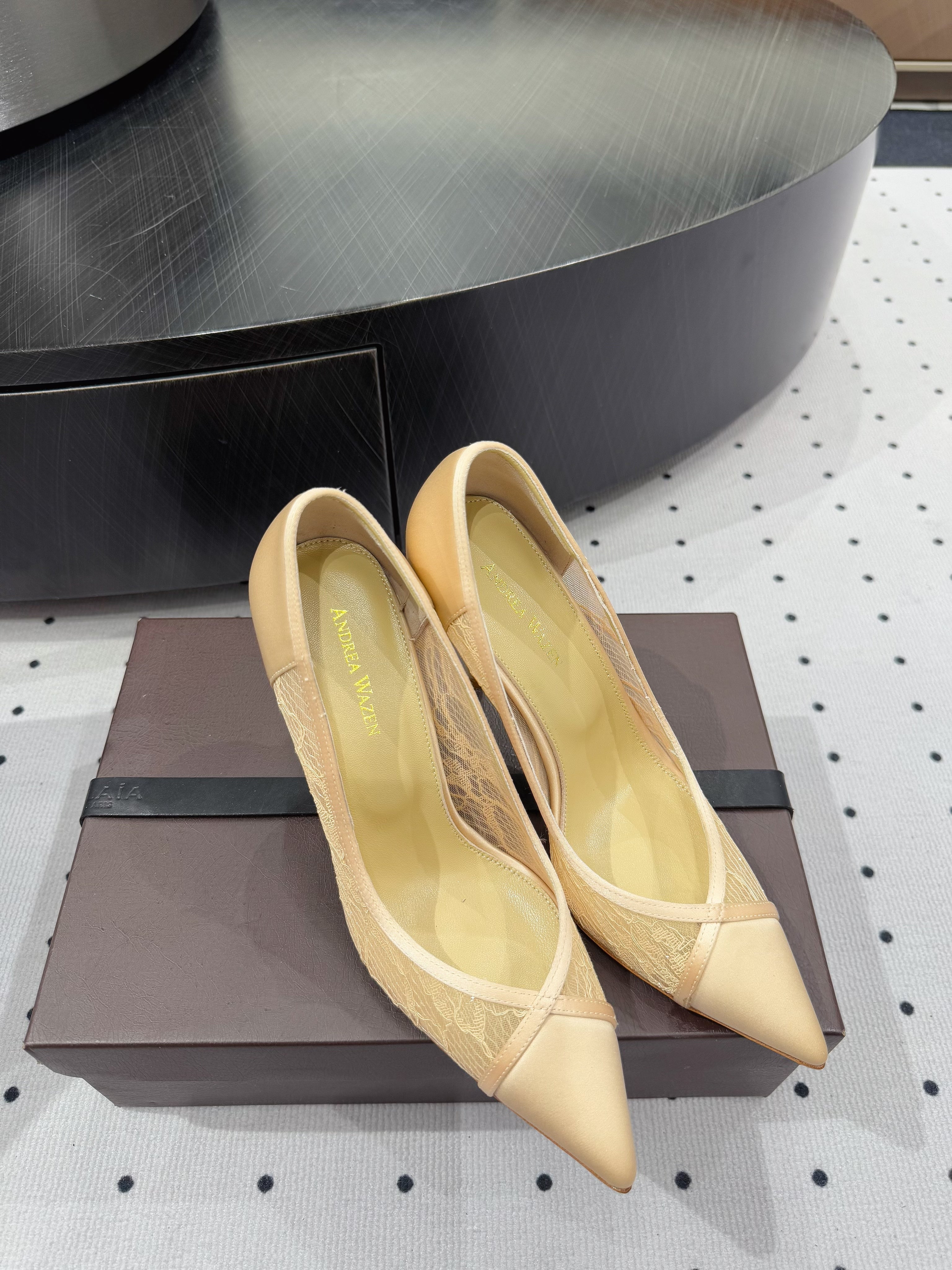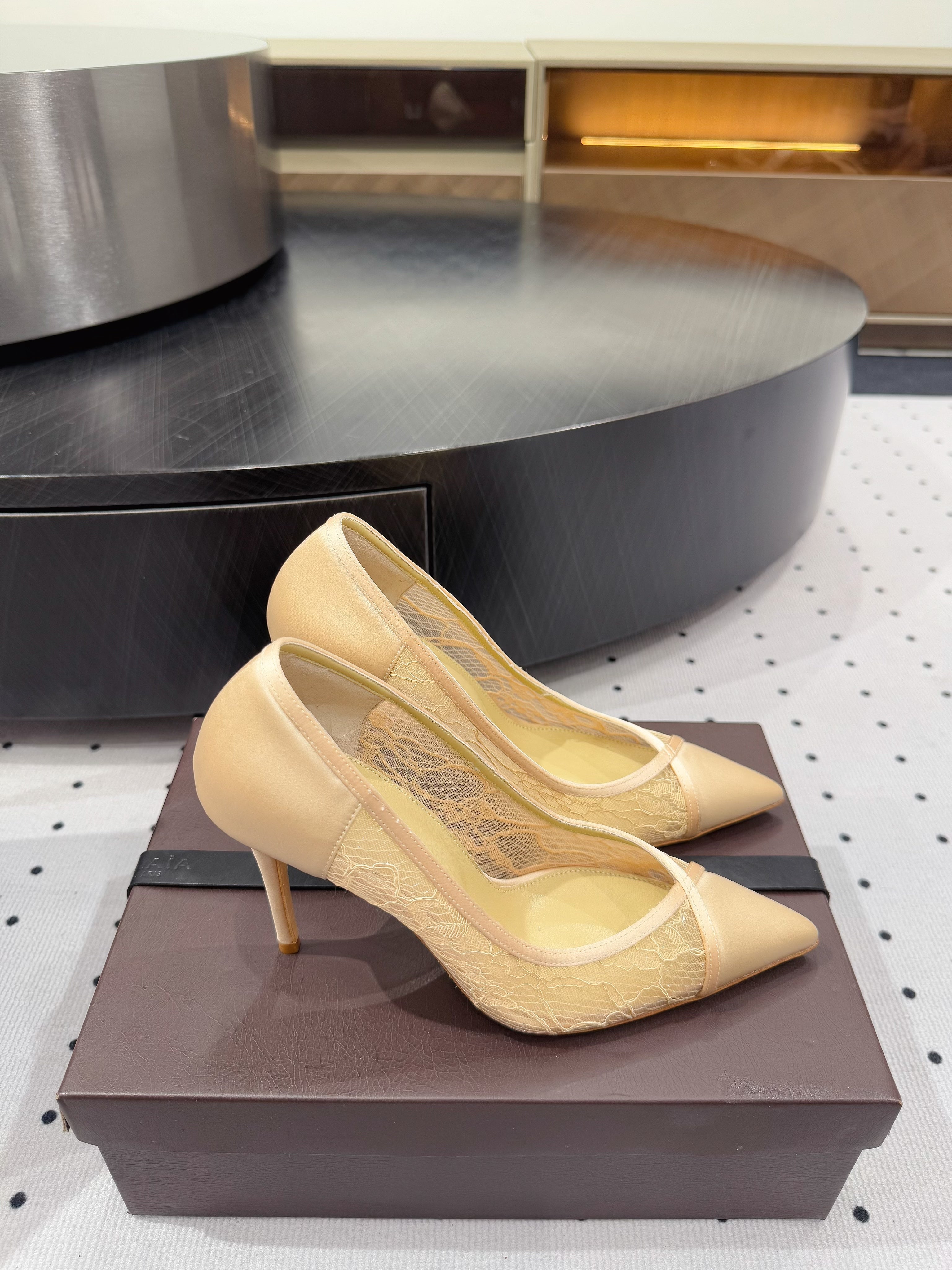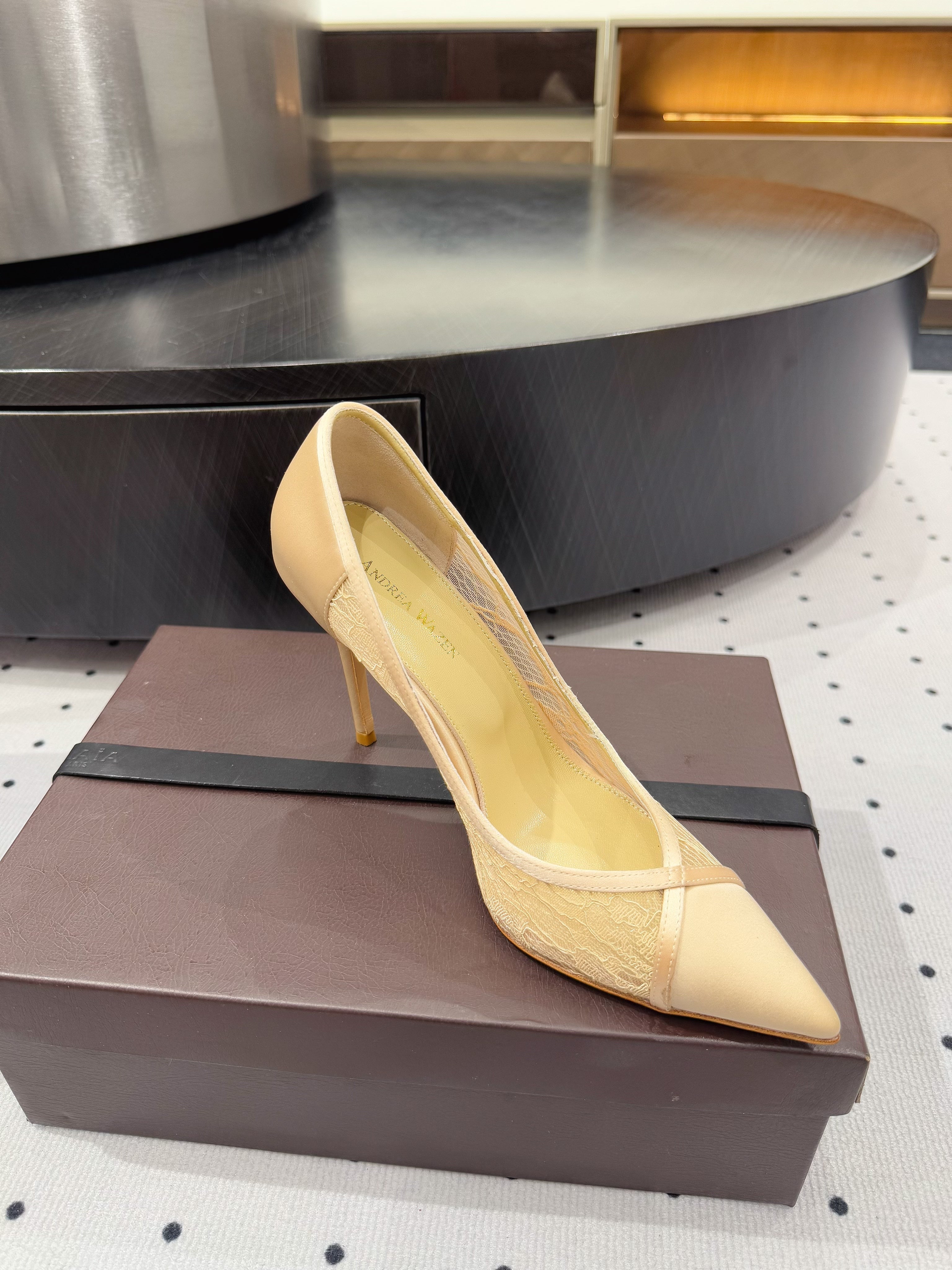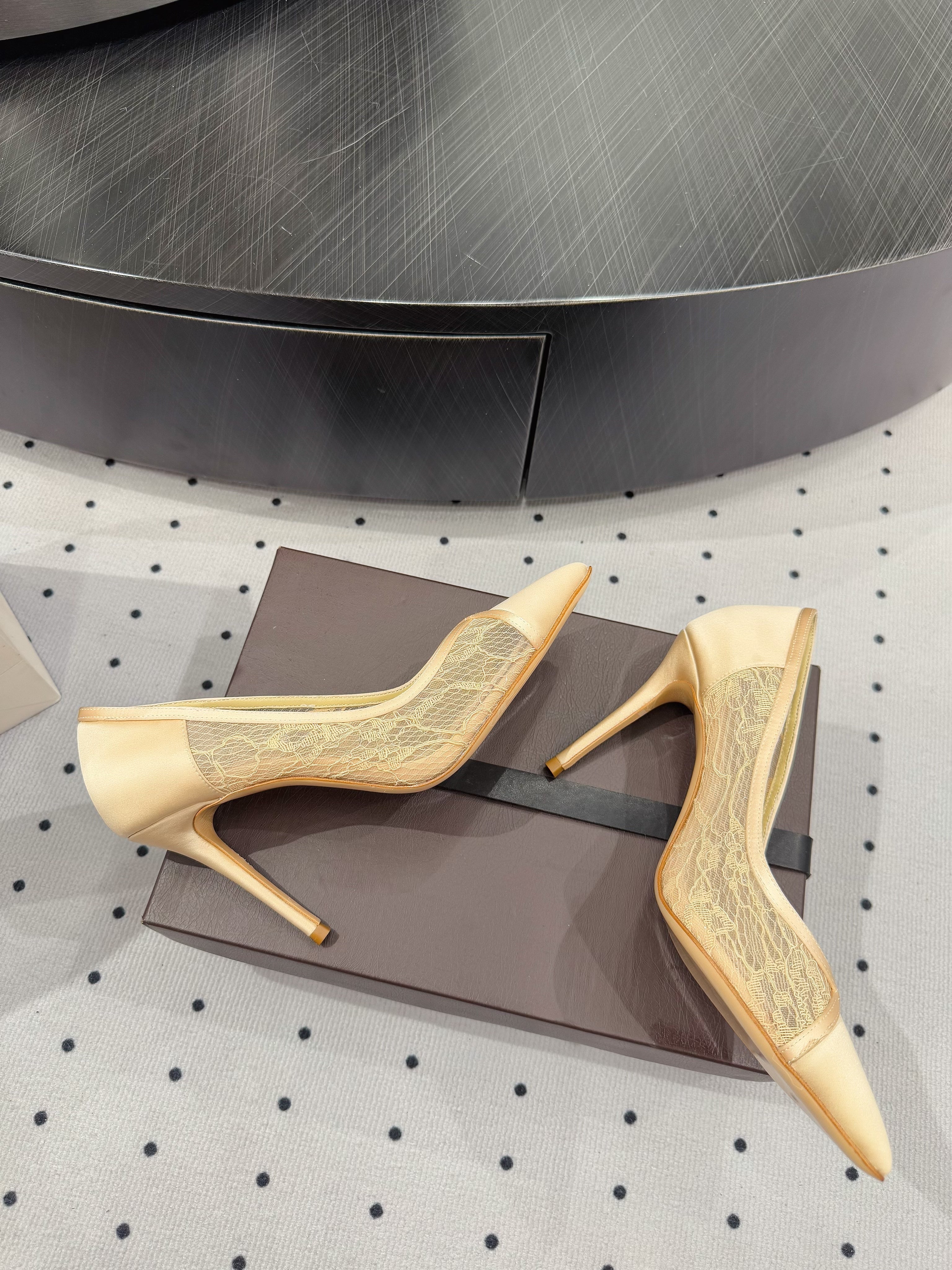 POINTED-TOE HIGH PUMPS 95MM IN YELLOW MESH AND SILK