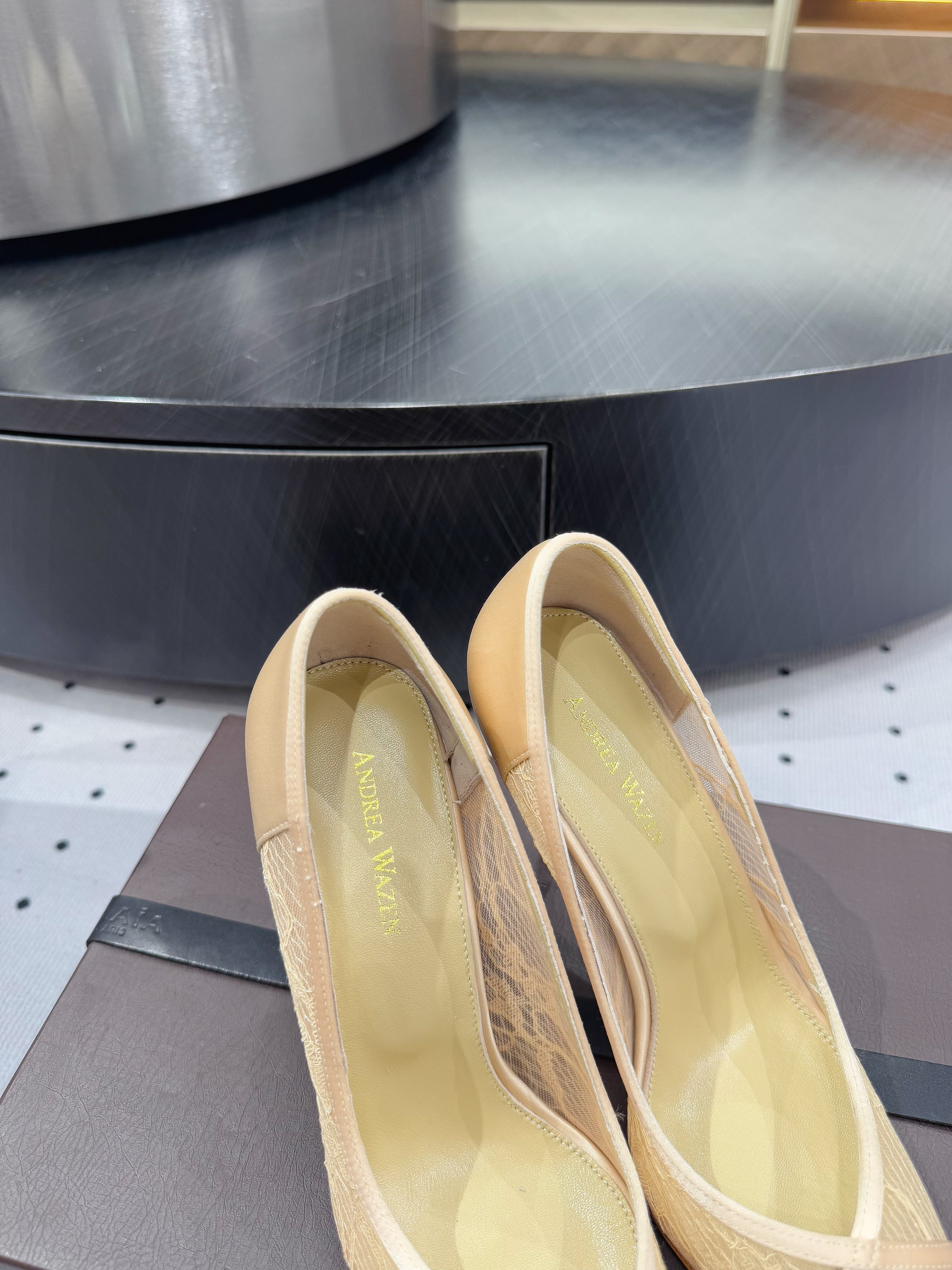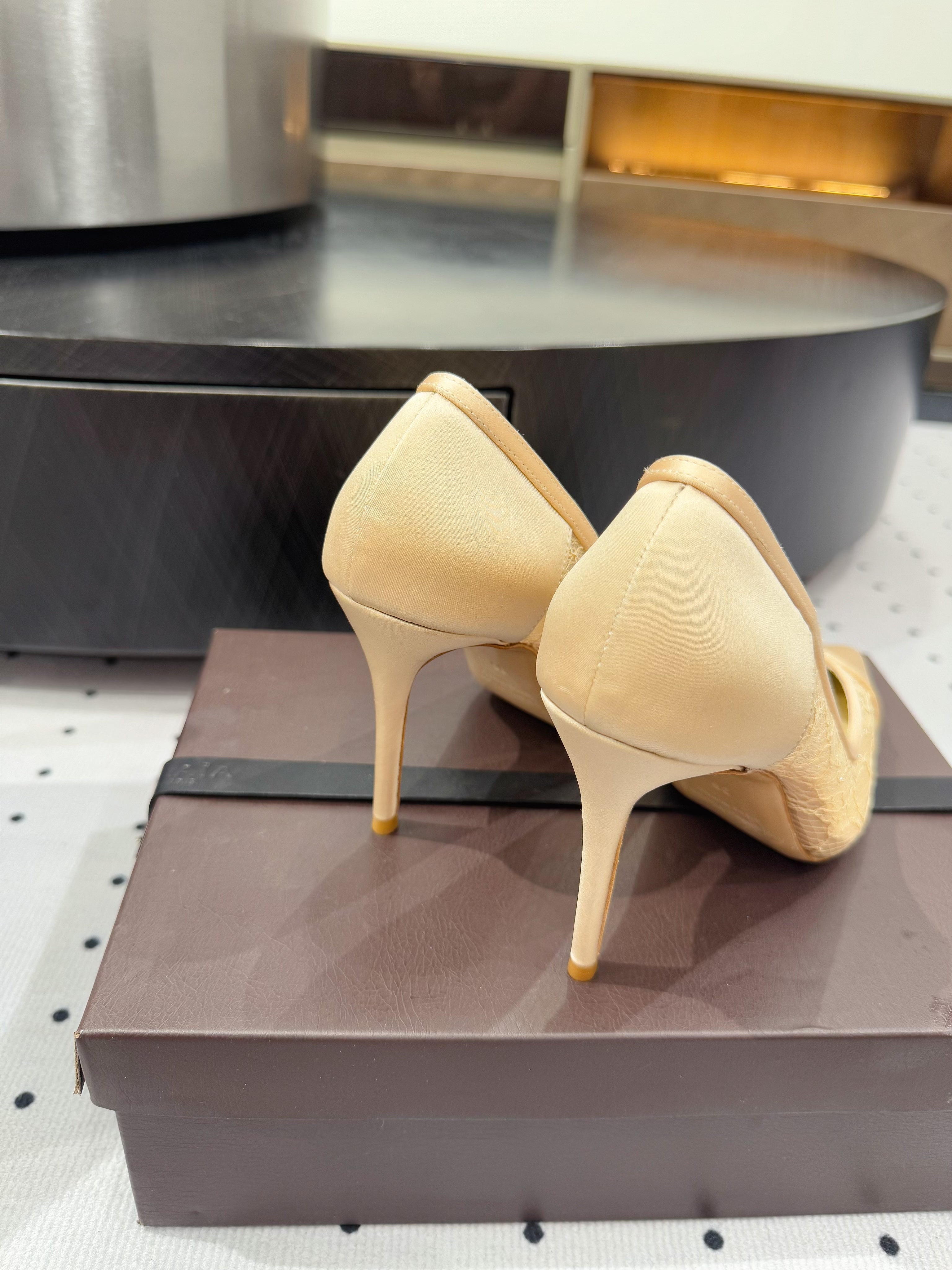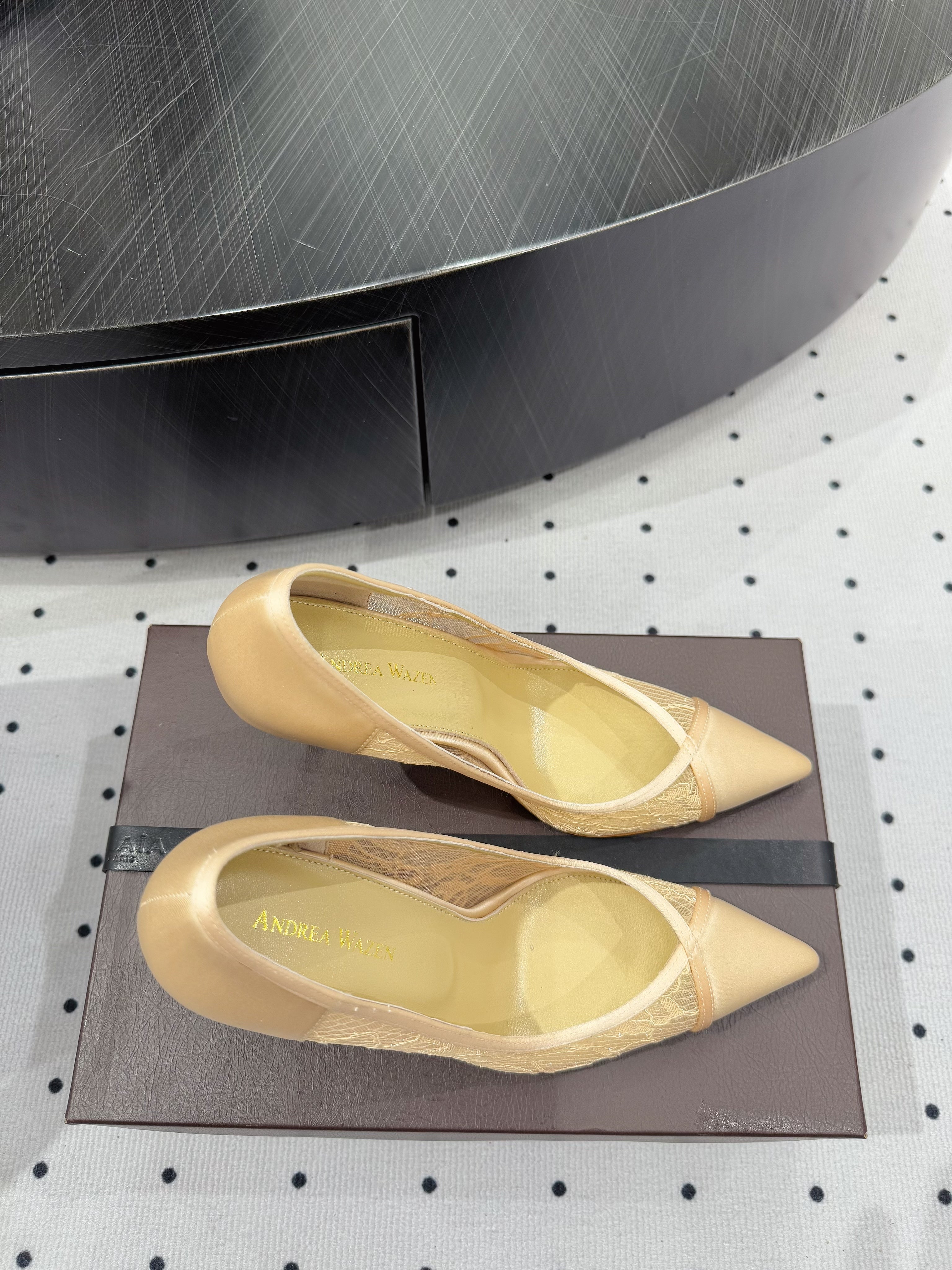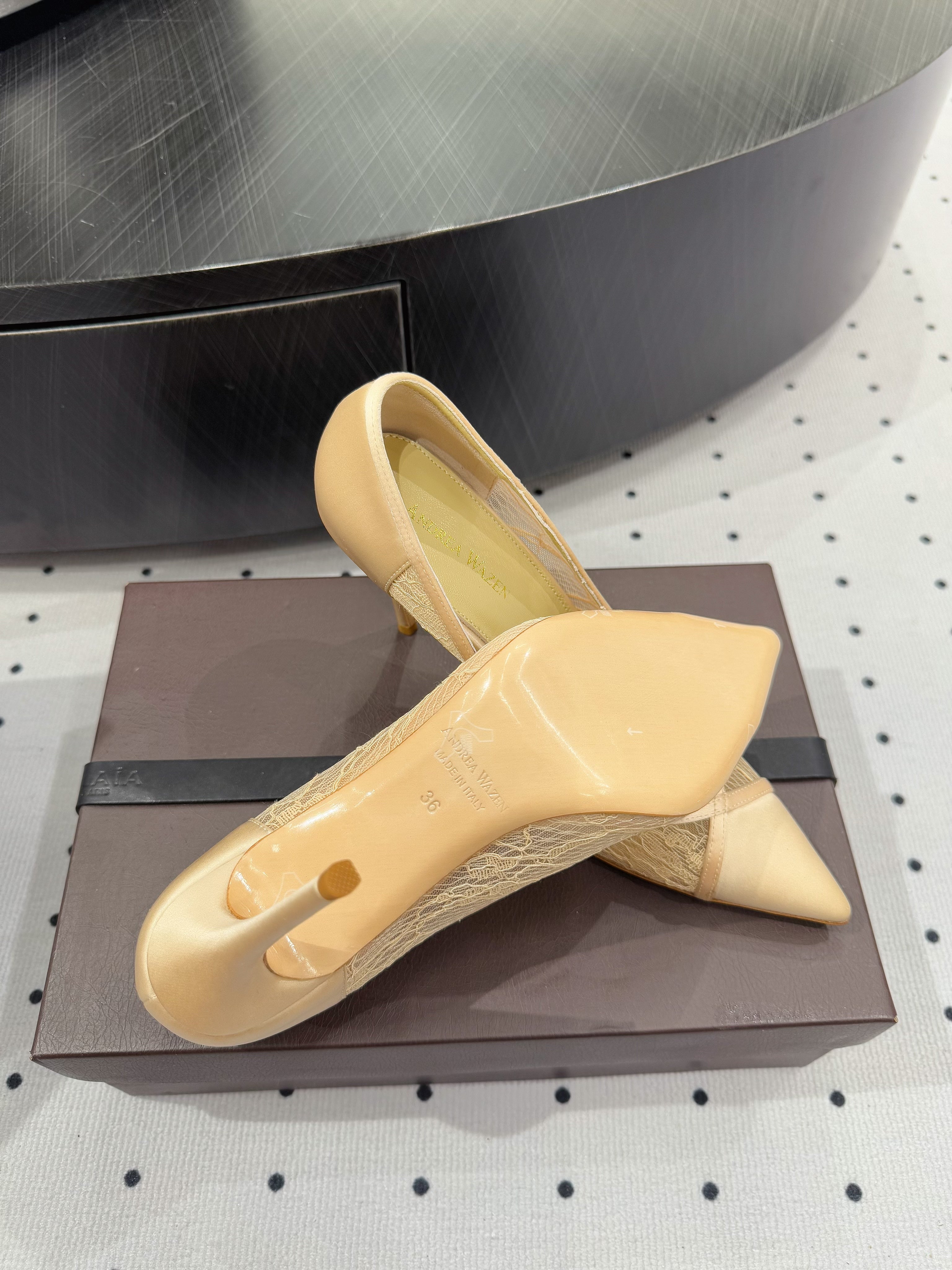 POINTED-TOE HIGH PUMPS 95MM IN YELLOW MESH AND SILK