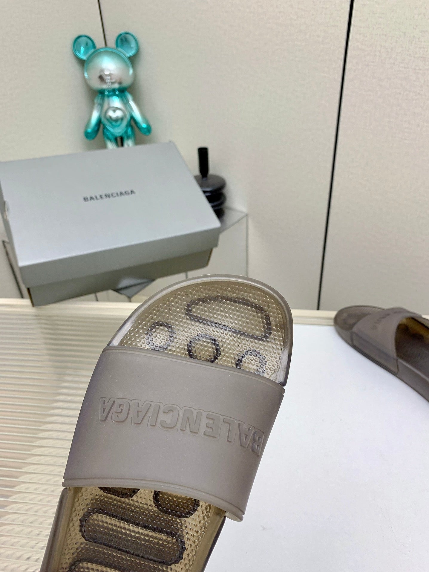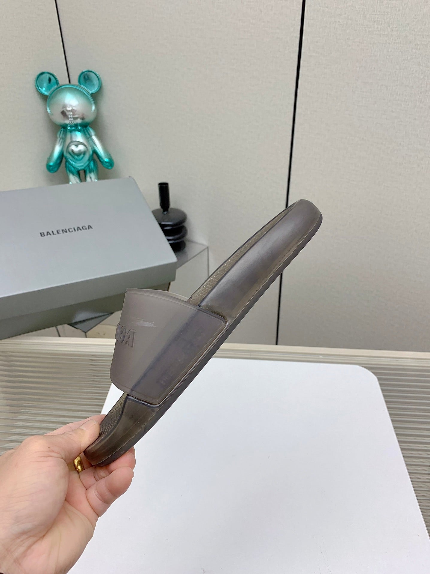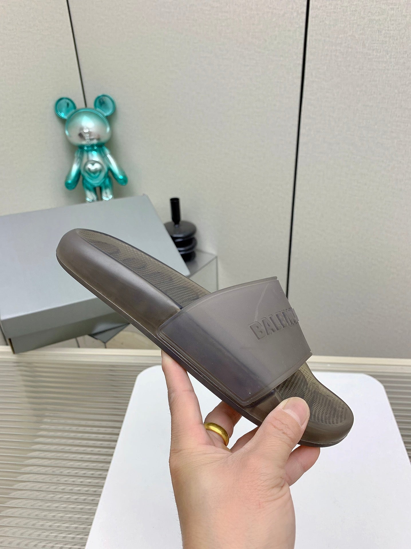 POOL SLIDE SANDAL IN SMOKE BROWN RUBBER