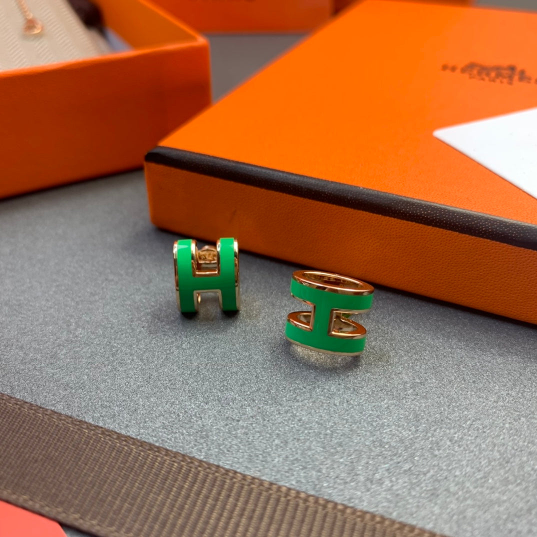 POP H NECKLACE GREEN LACQUER YELLOW GOLD PLATED PENDANT