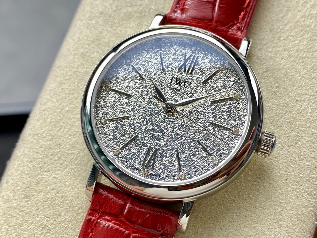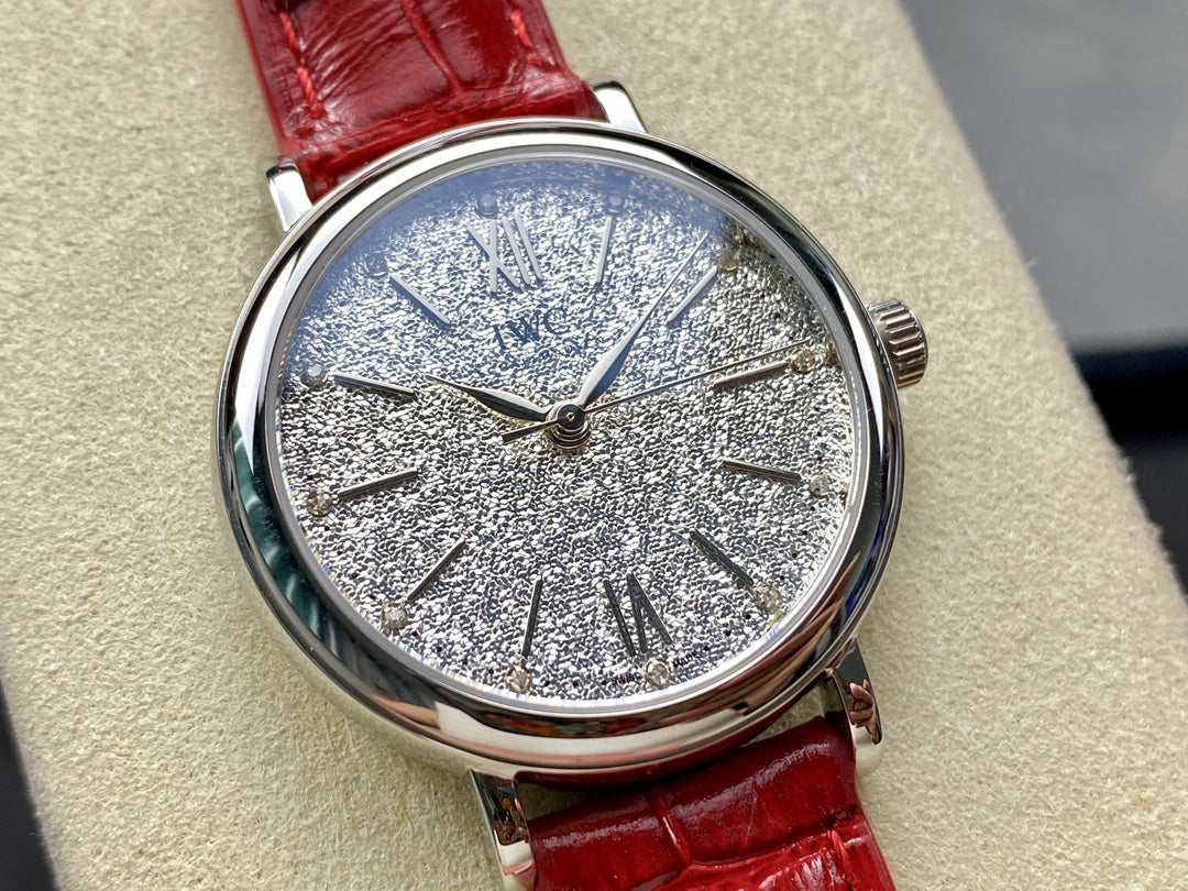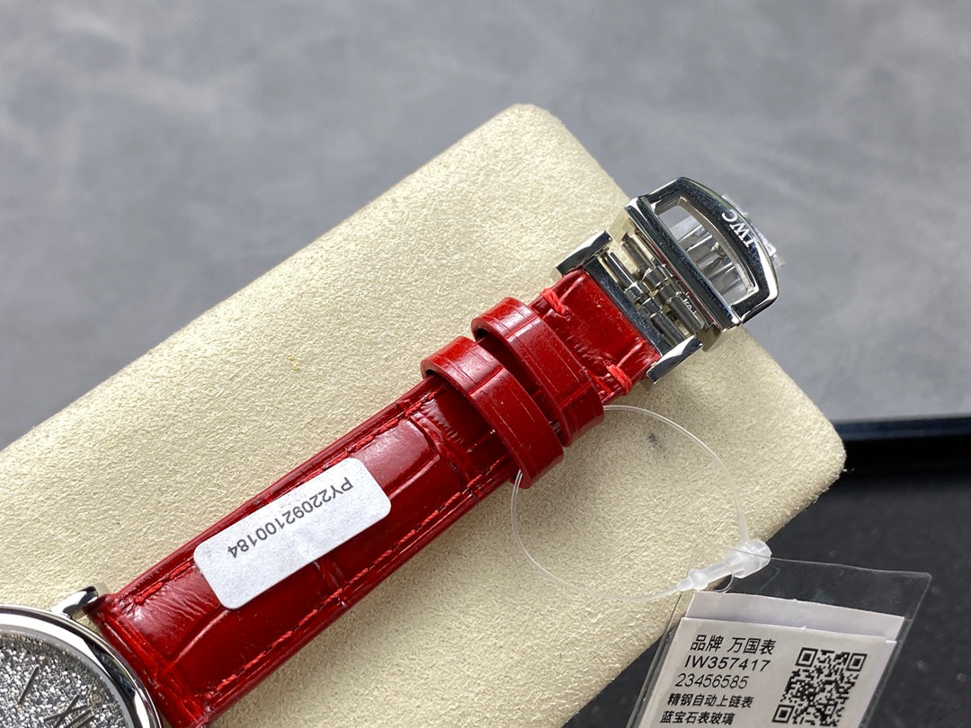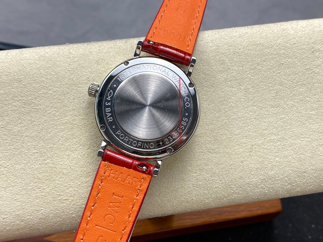 PORTOFINO AUTOMATIC 34 WATCH SILVER CASE WITH RUBY RED LEATHER STRAP