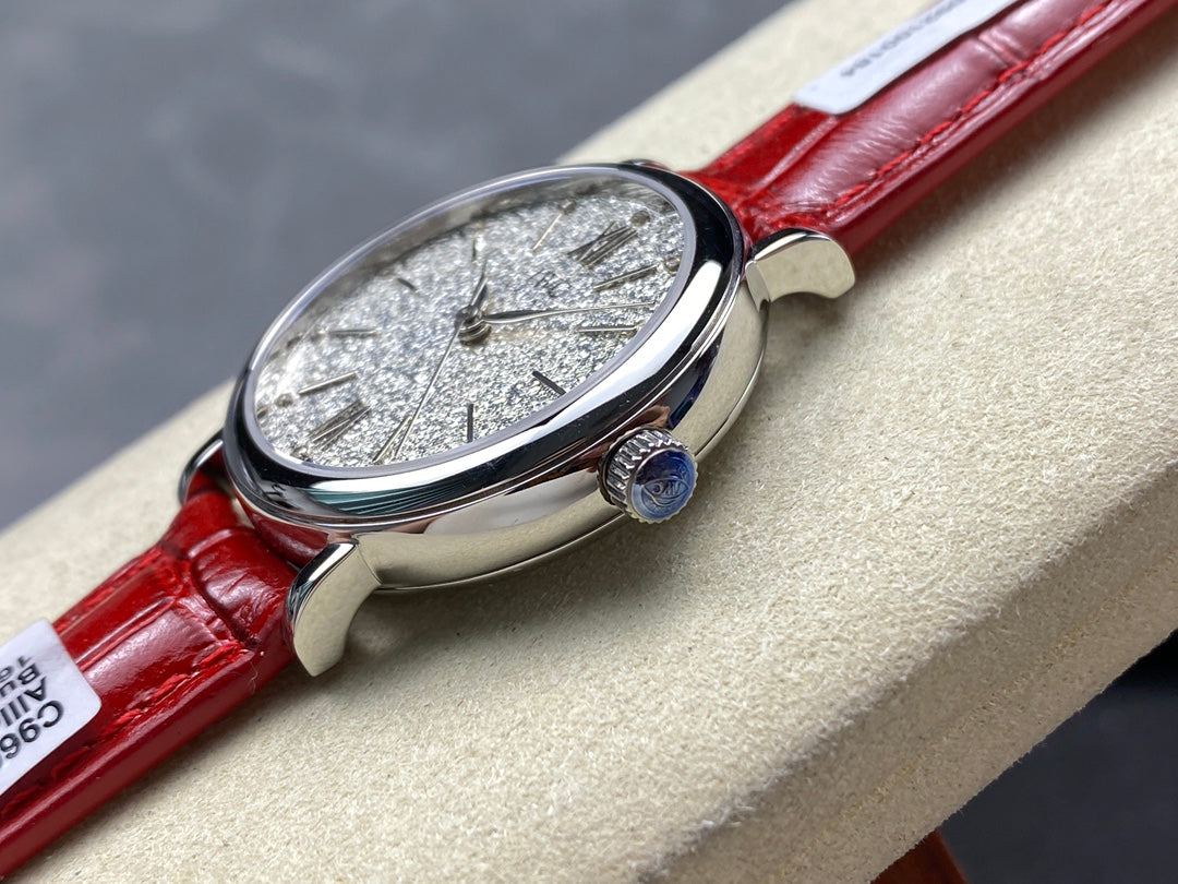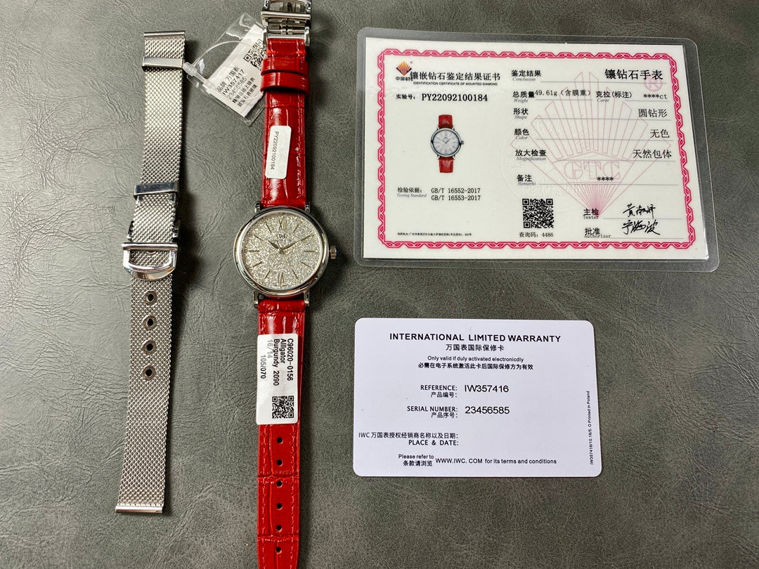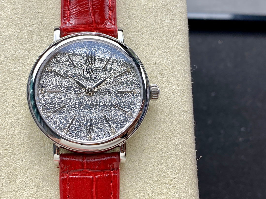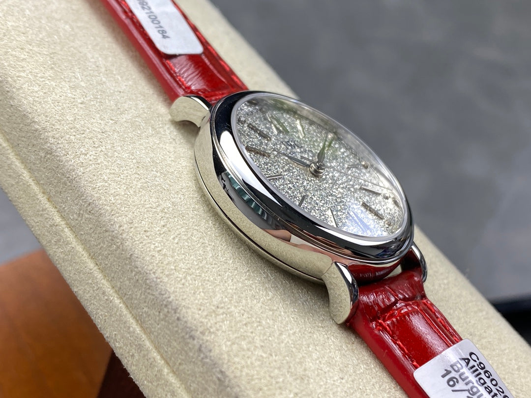 PORTOFINO AUTOMATIC 34 WATCH SILVER CASE WITH RUBY RED LEATHER STRAP
