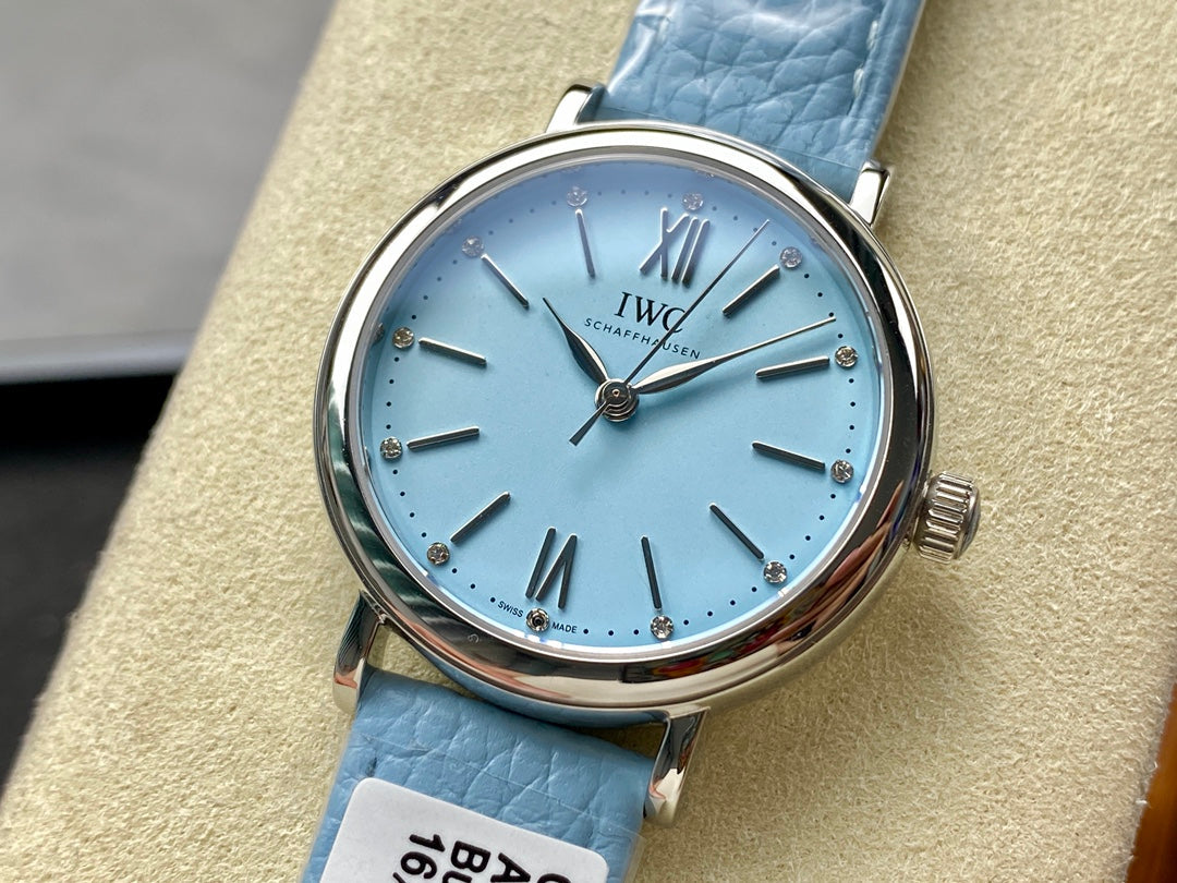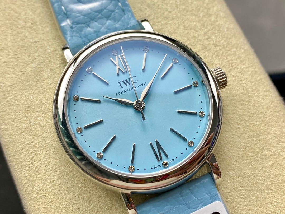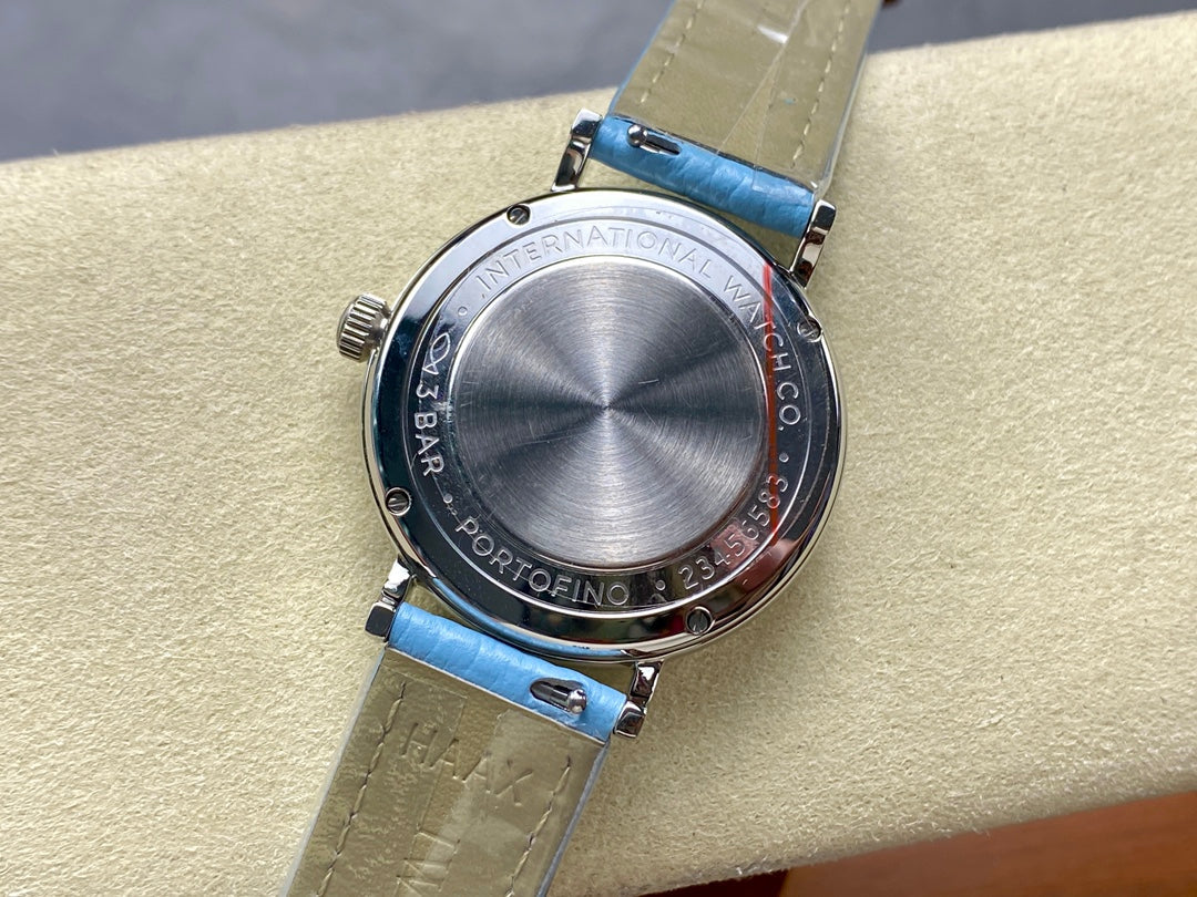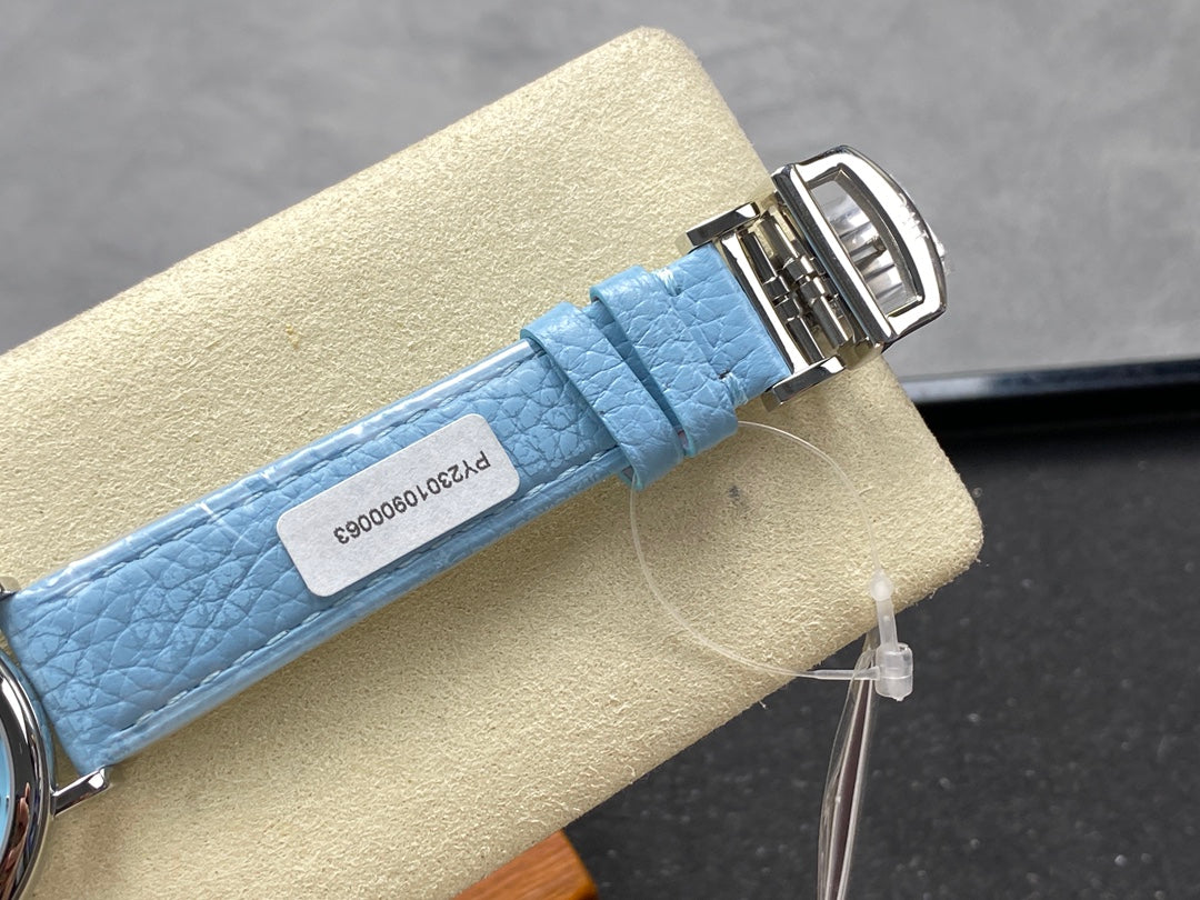 PORTOFINO AUTOMATIC 34 WATCH SILVER CASE WITH SAPPHIRE BLUE LEATHER STRAP AND DIAL