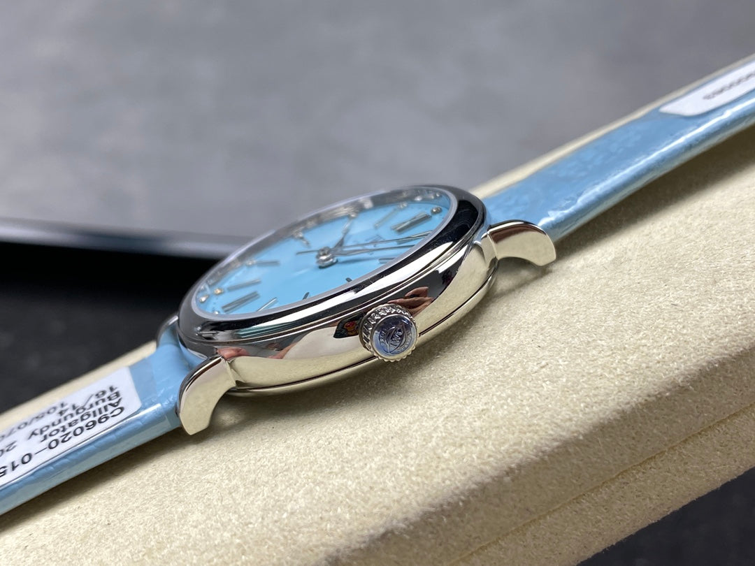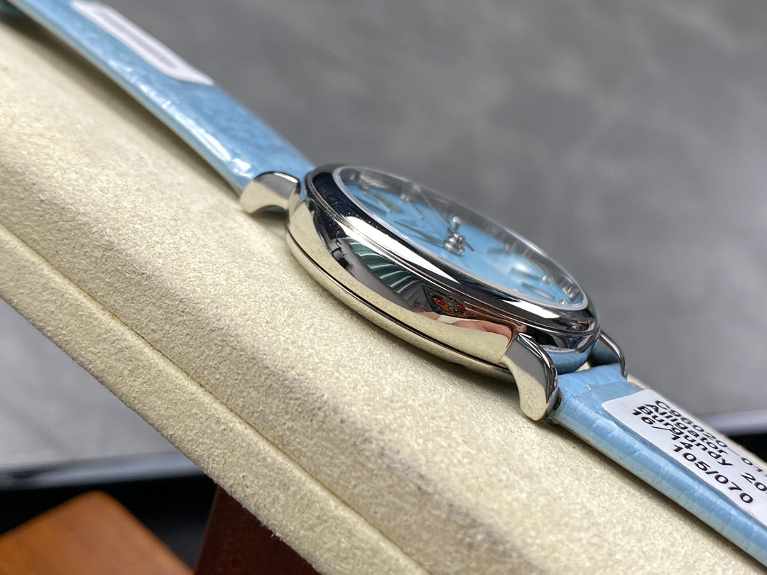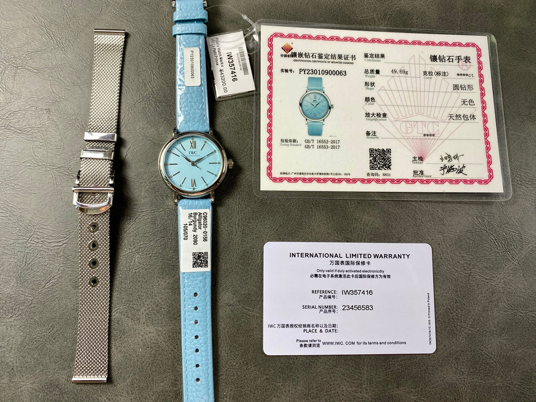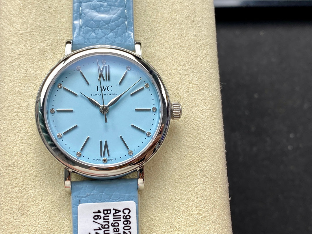 PORTOFINO AUTOMATIC 34 WATCH SILVER CASE WITH SAPPHIRE BLUE LEATHER STRAP AND DIAL