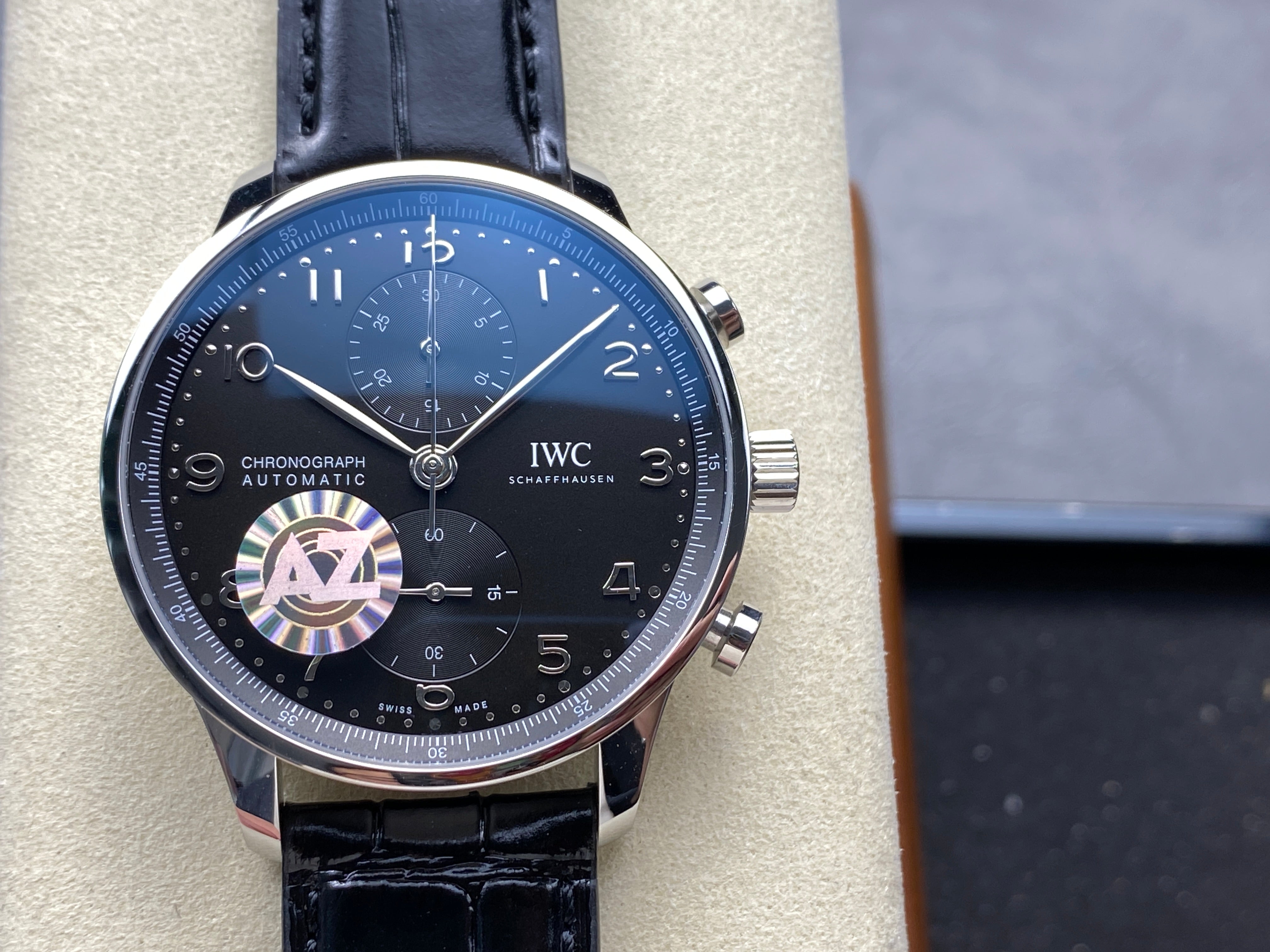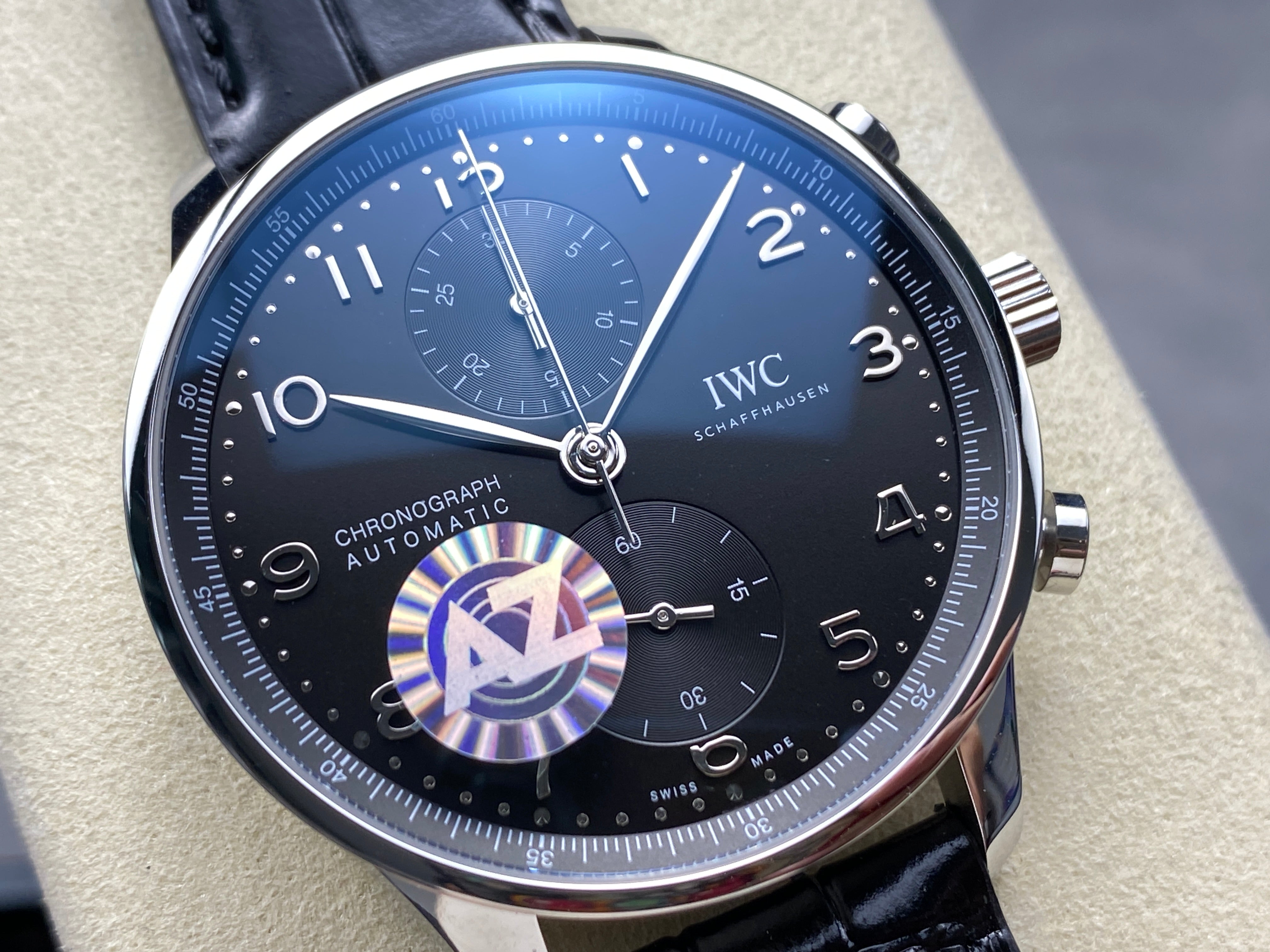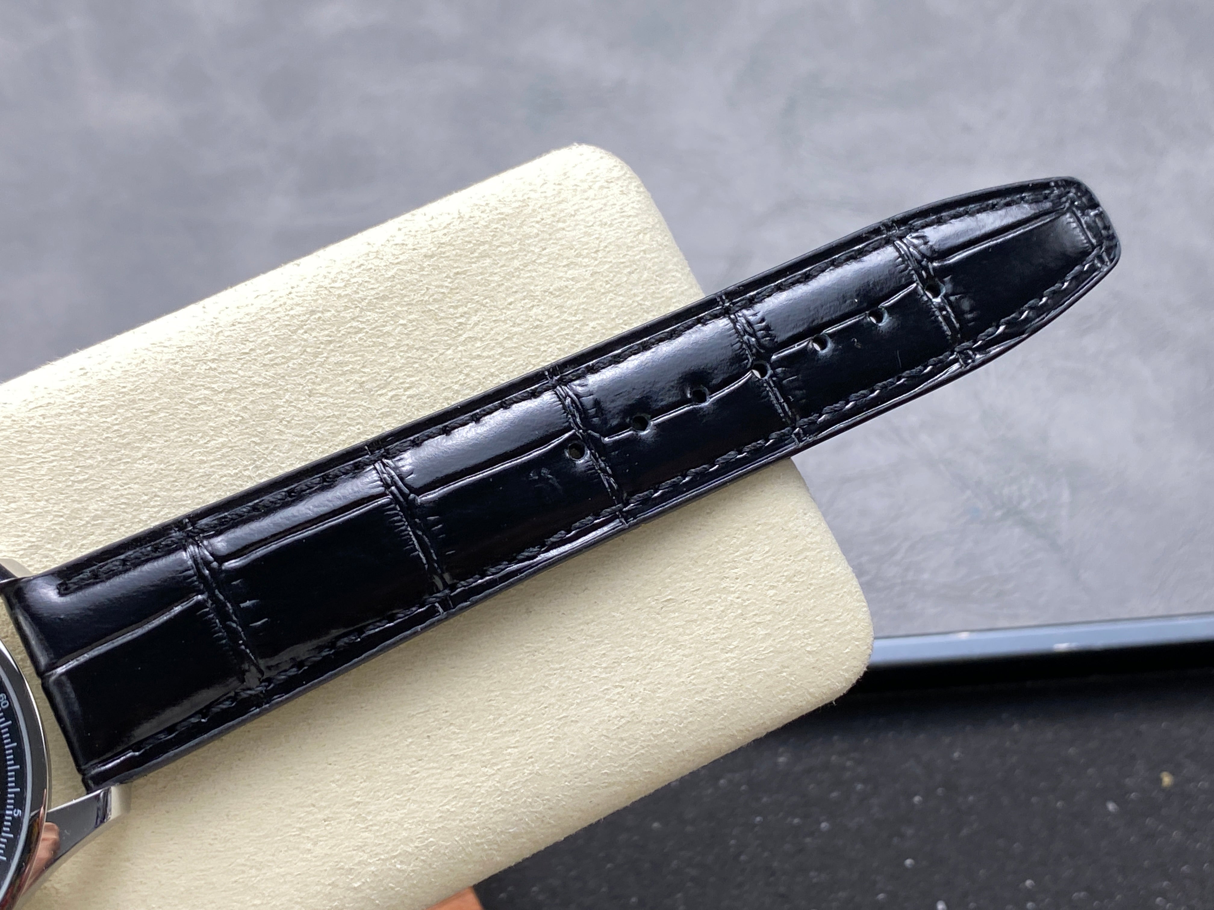 PORTUGIESER AUTOMATIC 40 MM WATCH SILVER CASE WITH BLACK LEATHER STRAP AND DIAL