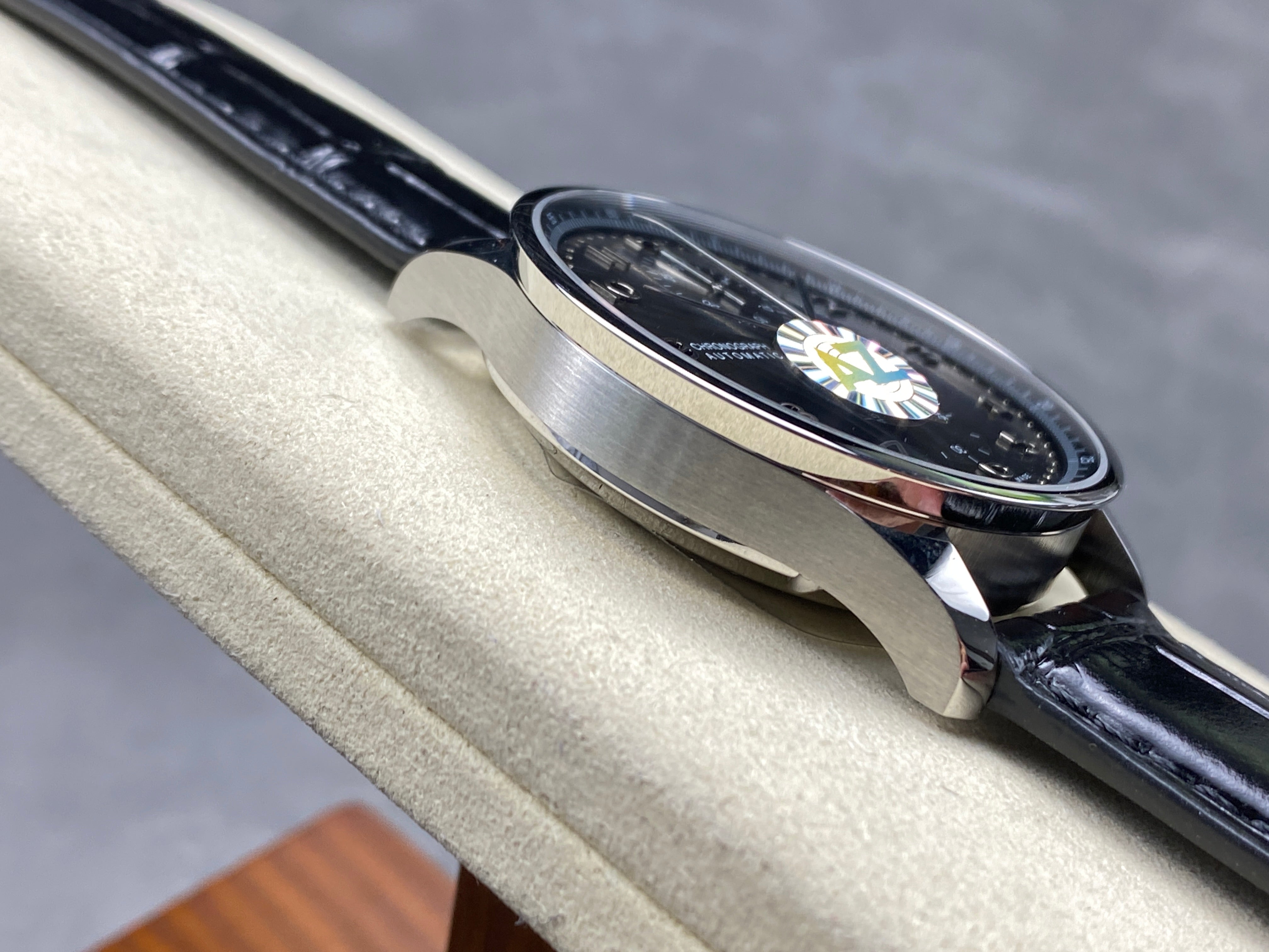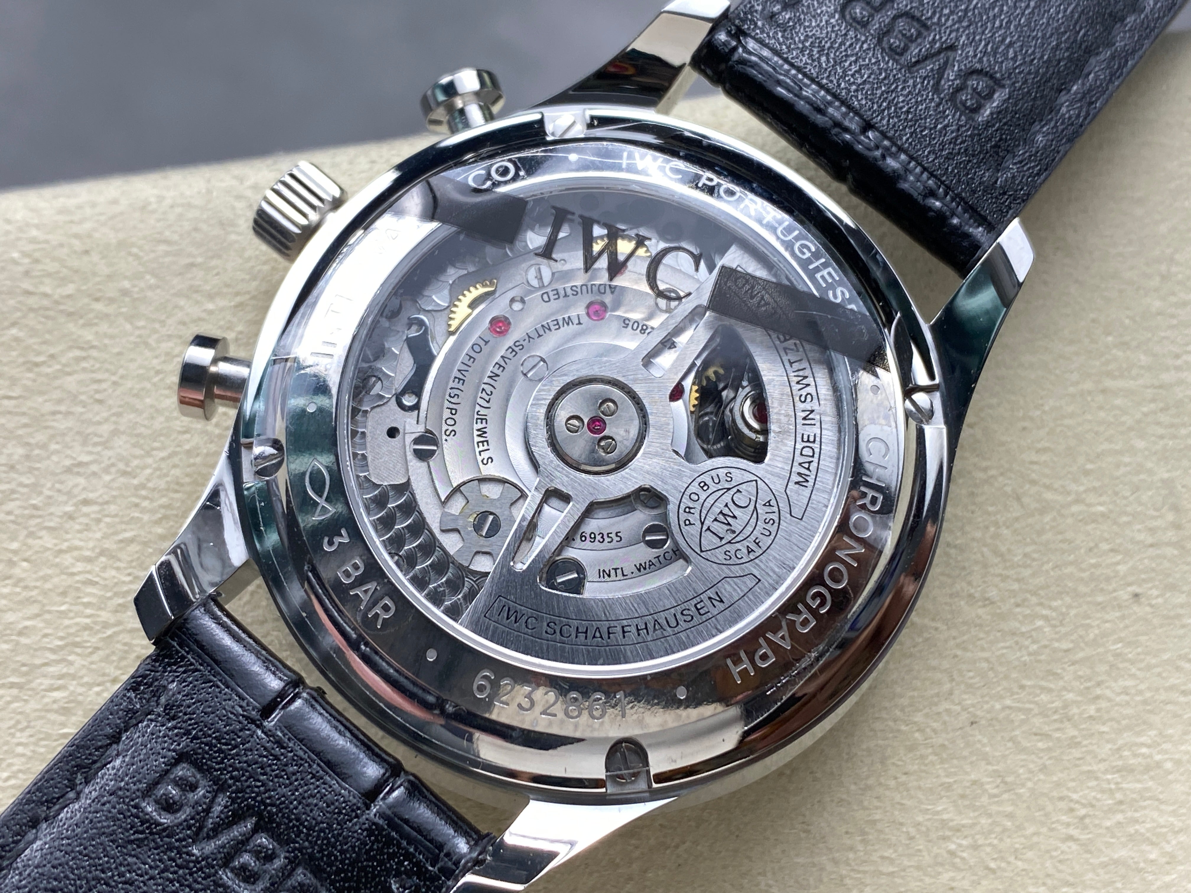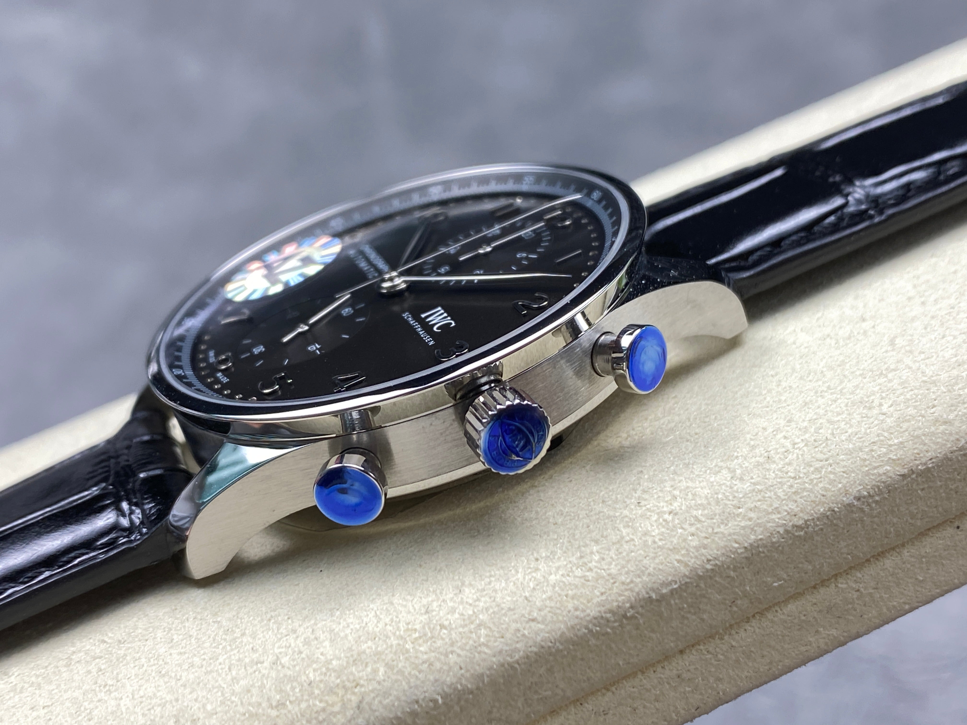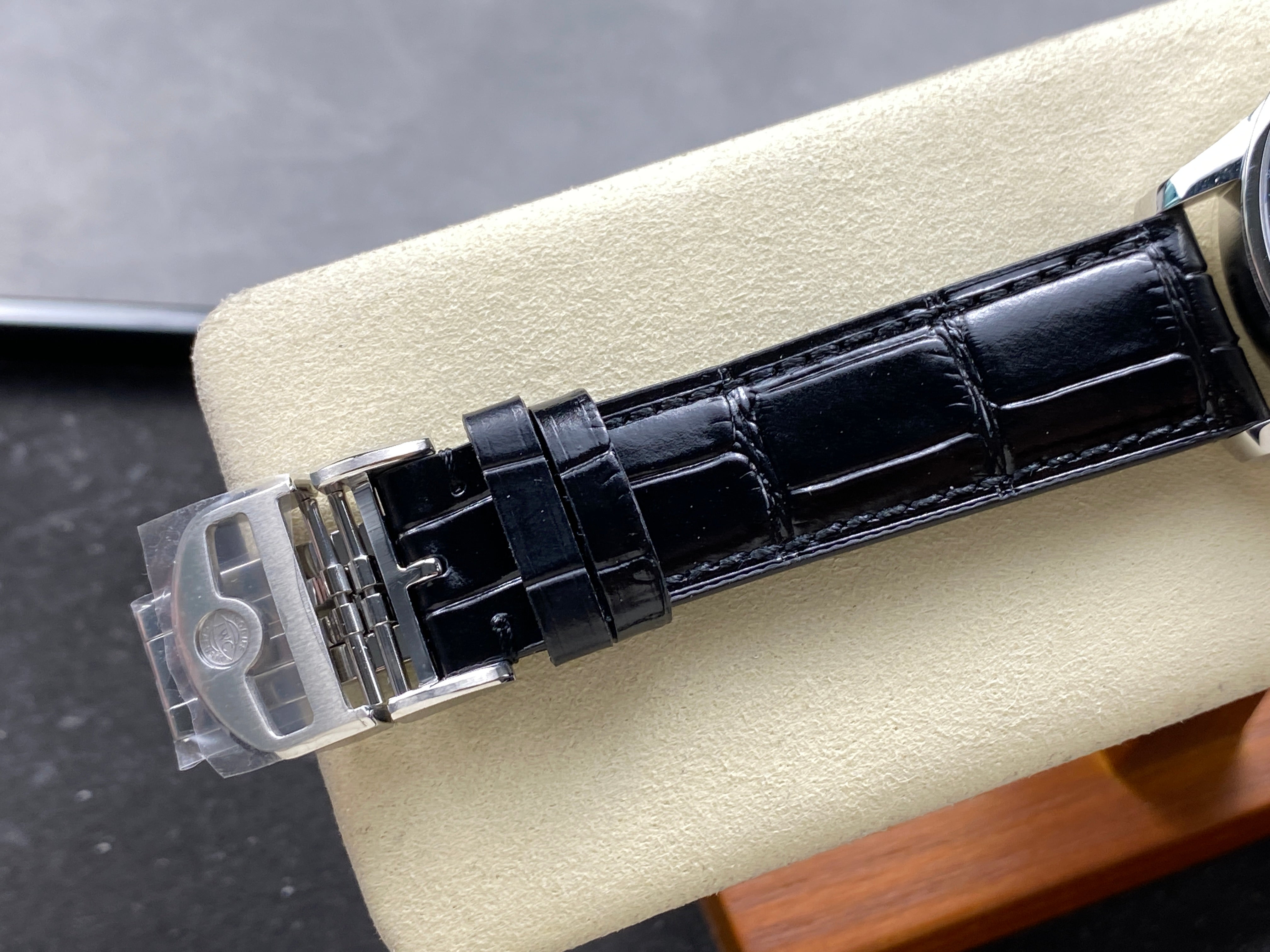 PORTUGIESER AUTOMATIC 40 MM WATCH SILVER CASE WITH BLACK LEATHER STRAP AND DIAL