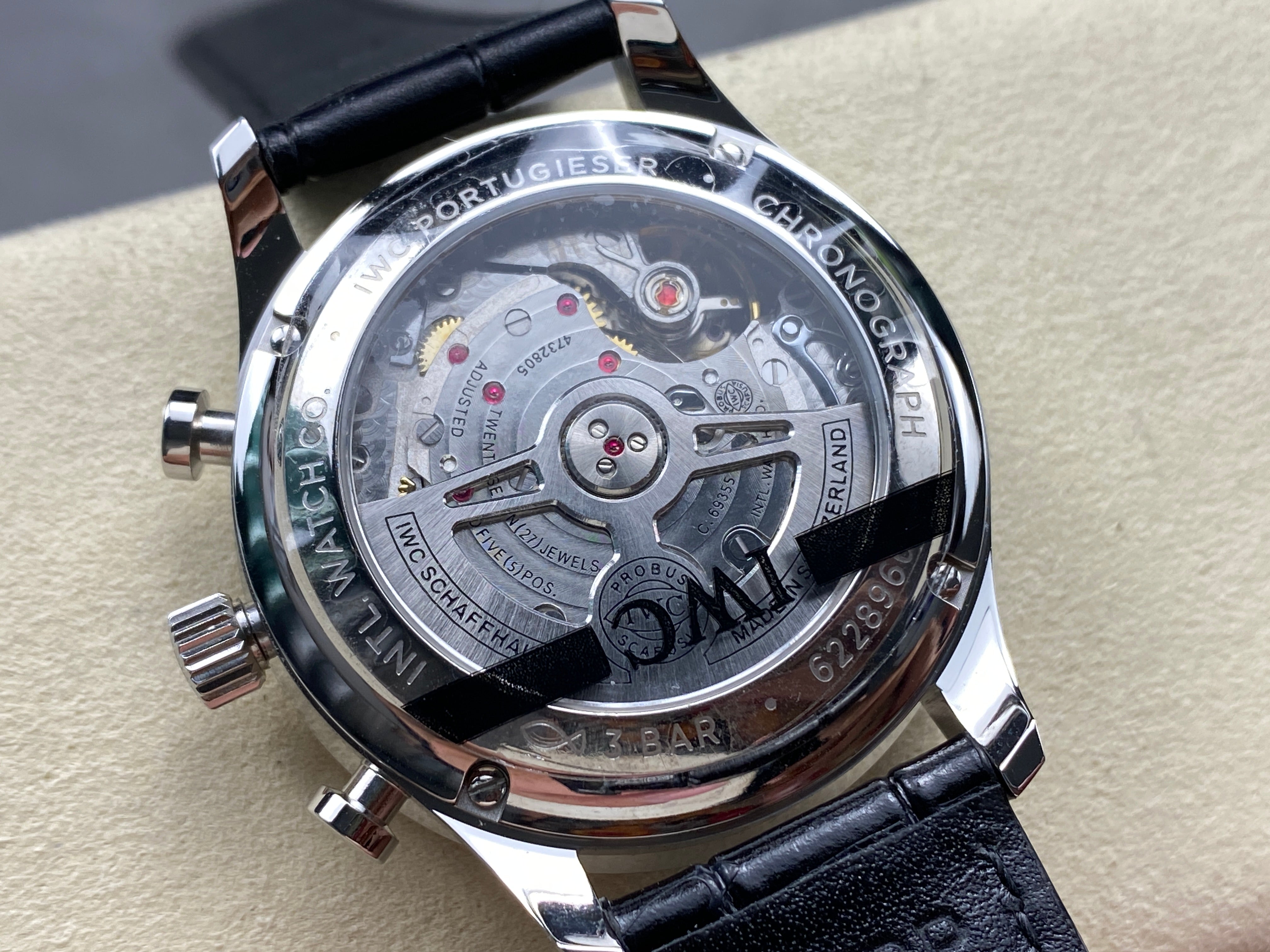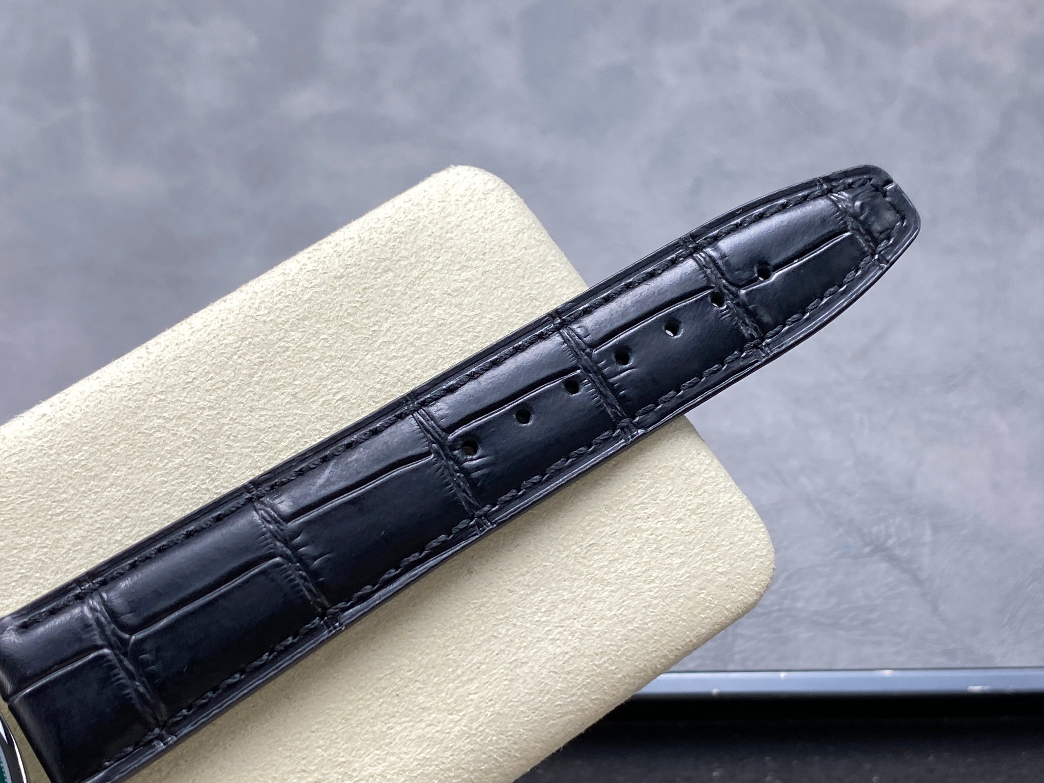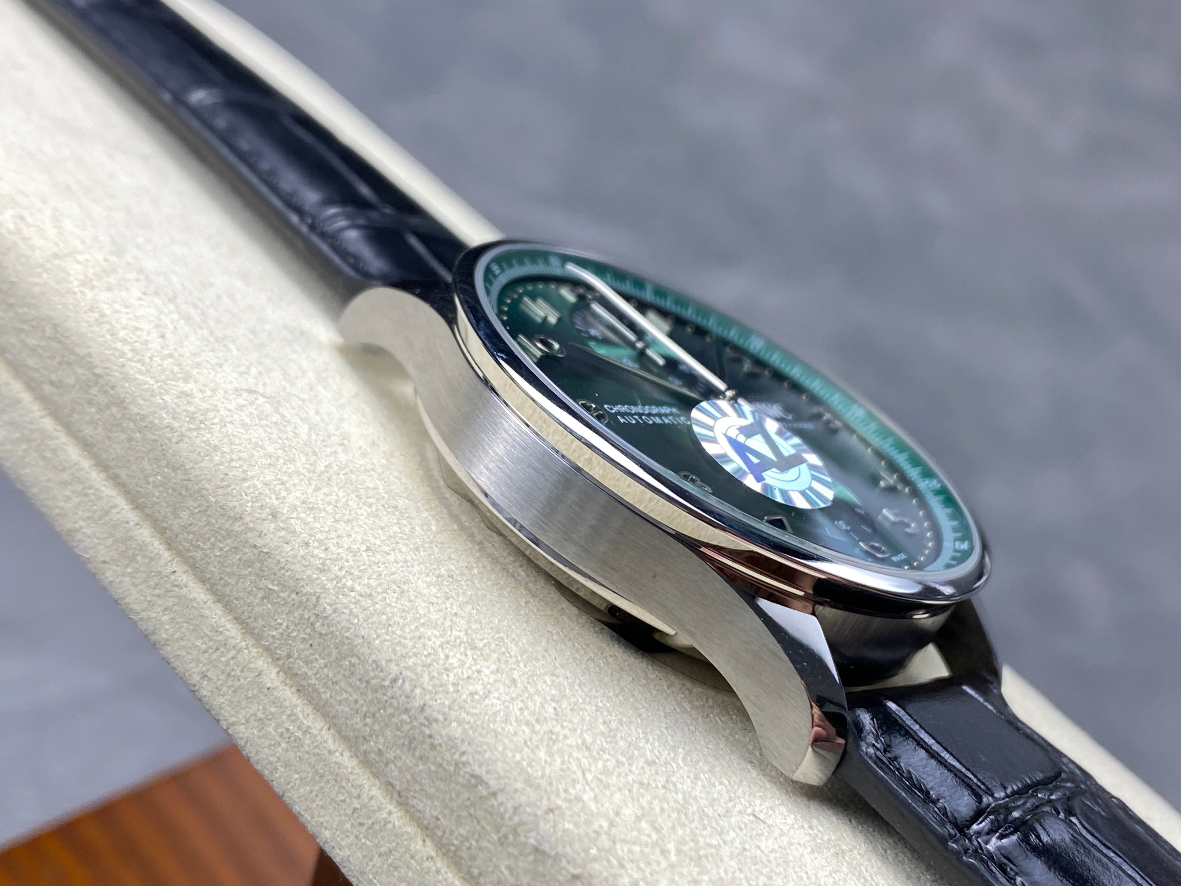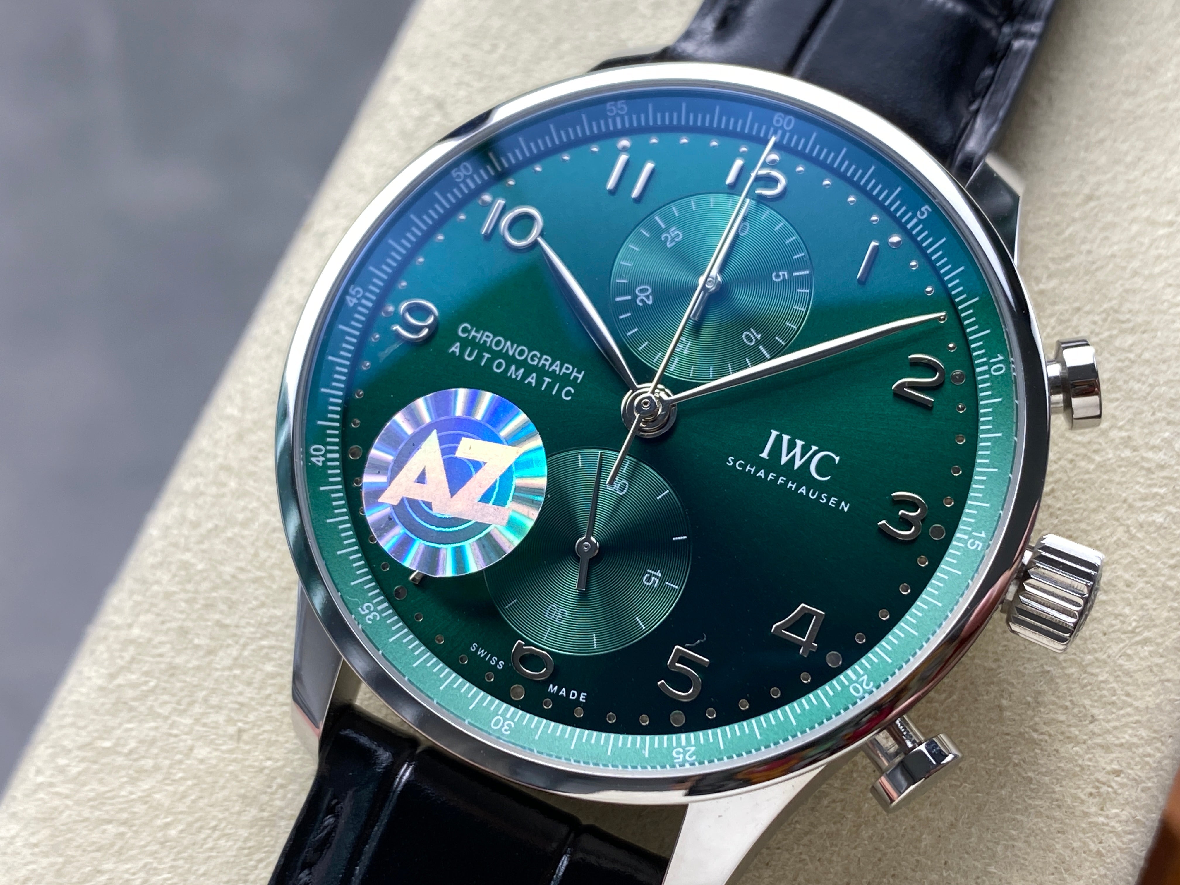 PORTUGIESER AUTOMATIC 40 MM WATCH SILVER CASE WITH BLACK LEATHER STRAP AND GREEN FOREST DIAL