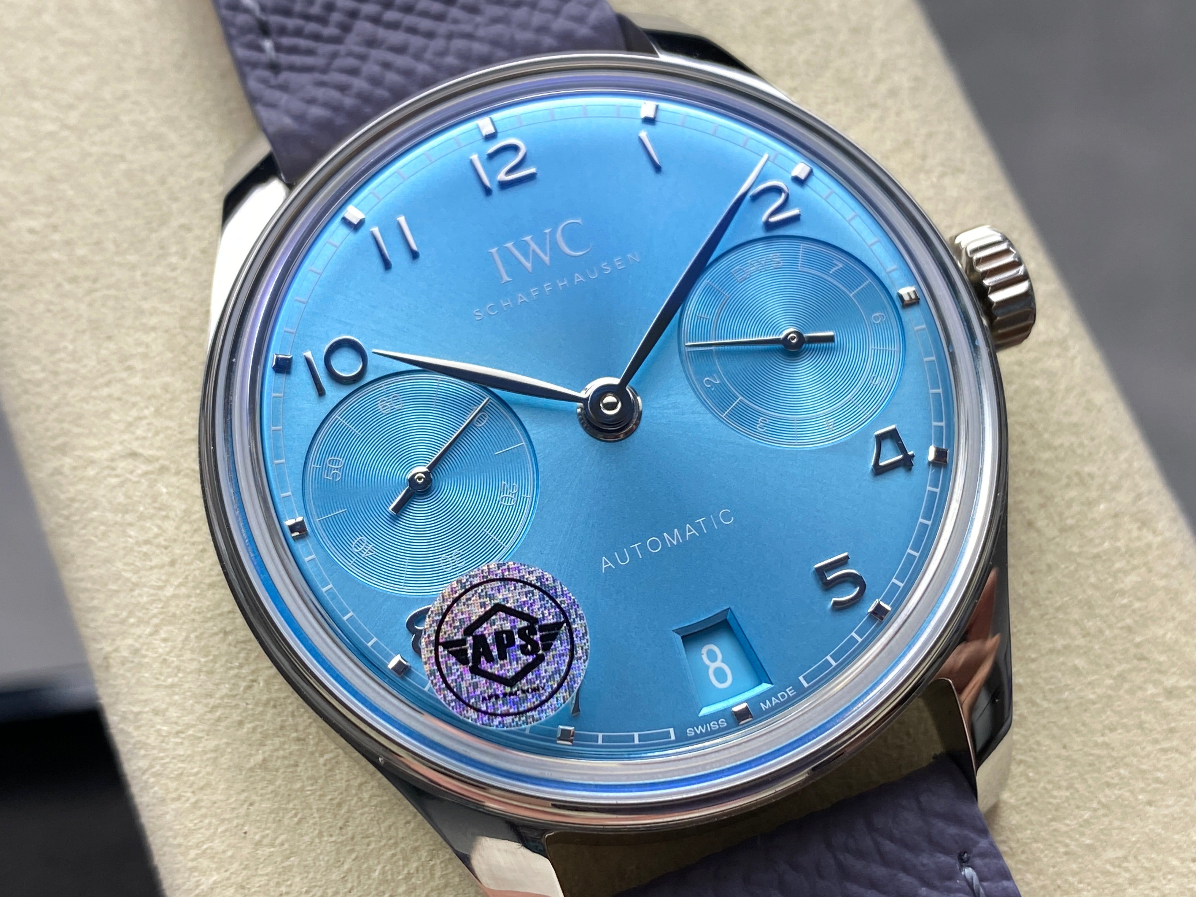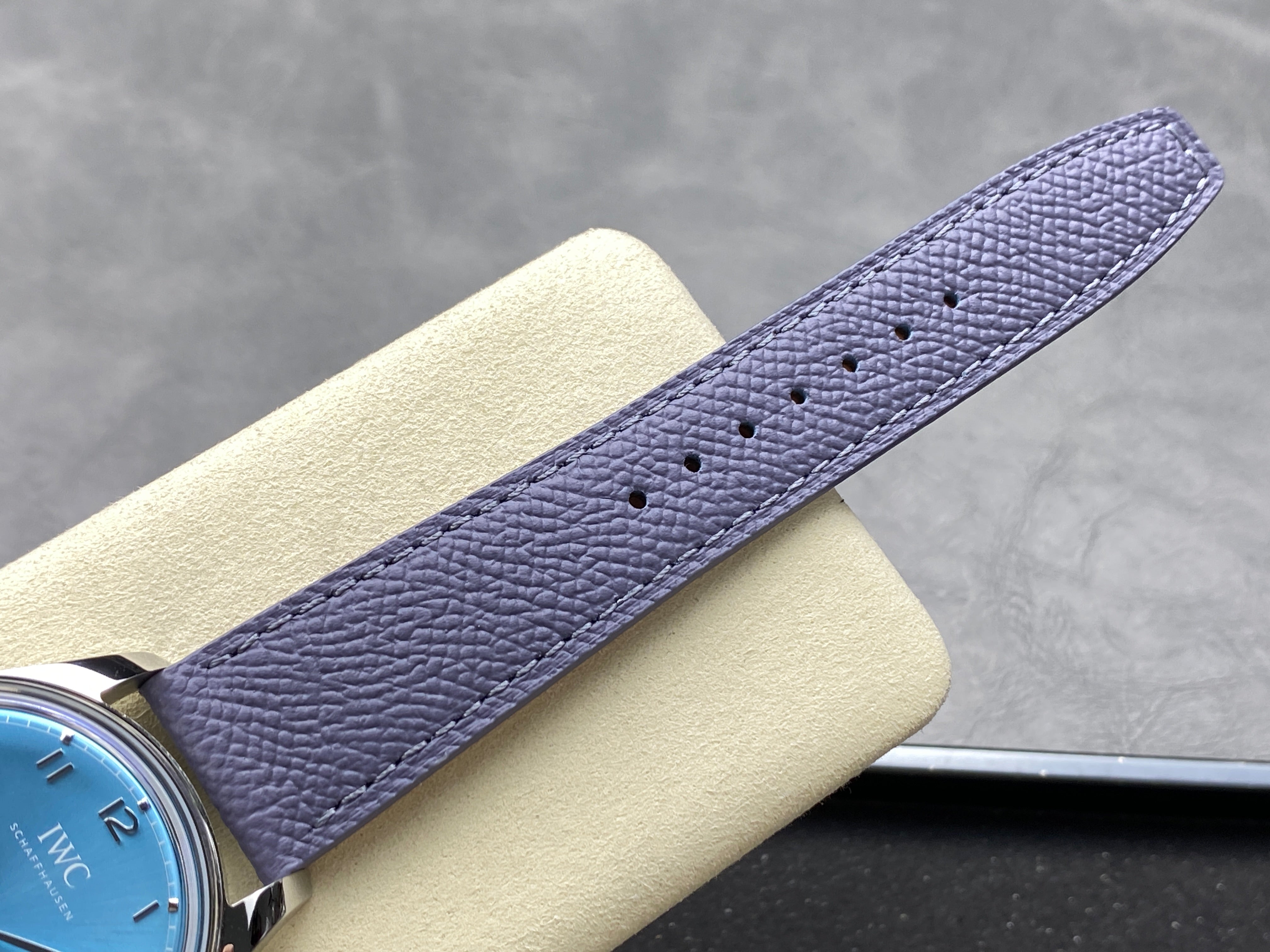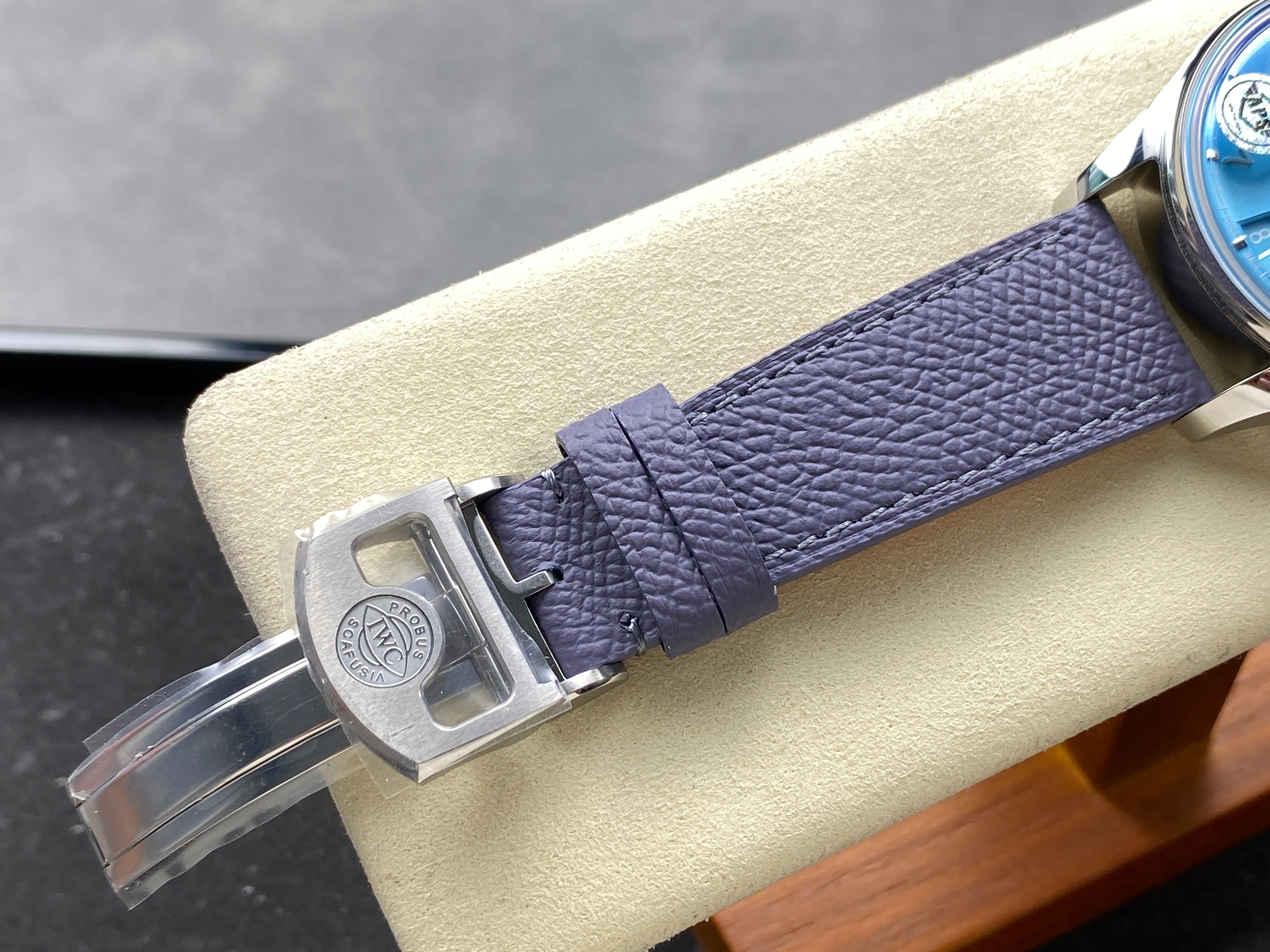 PORTUGIESER AUTOMATIC 42 WATCH SILVER CASE WITH NAVY BLUE LEATHER STRAP AND SAPPHIRE BLUE DIAL