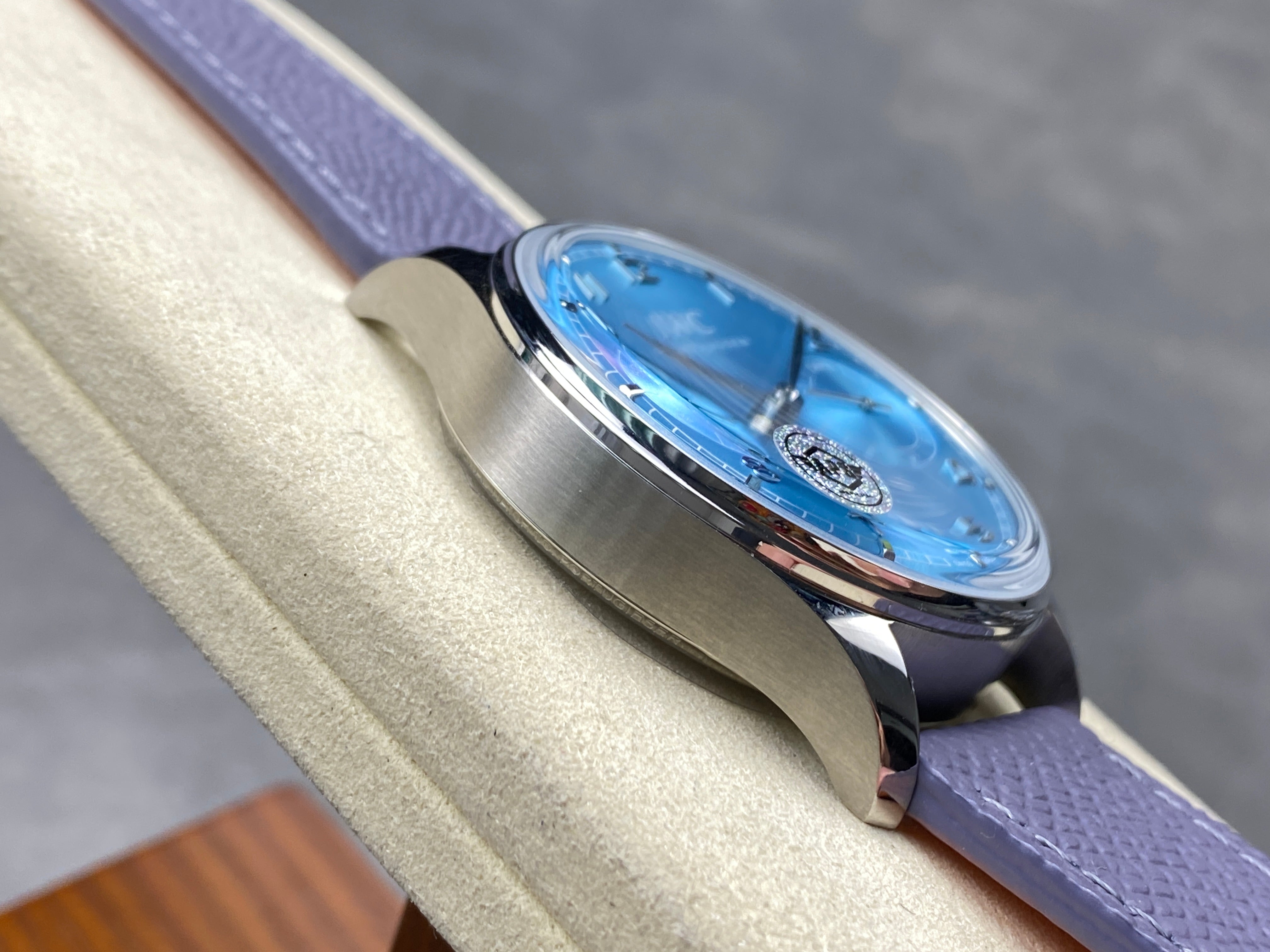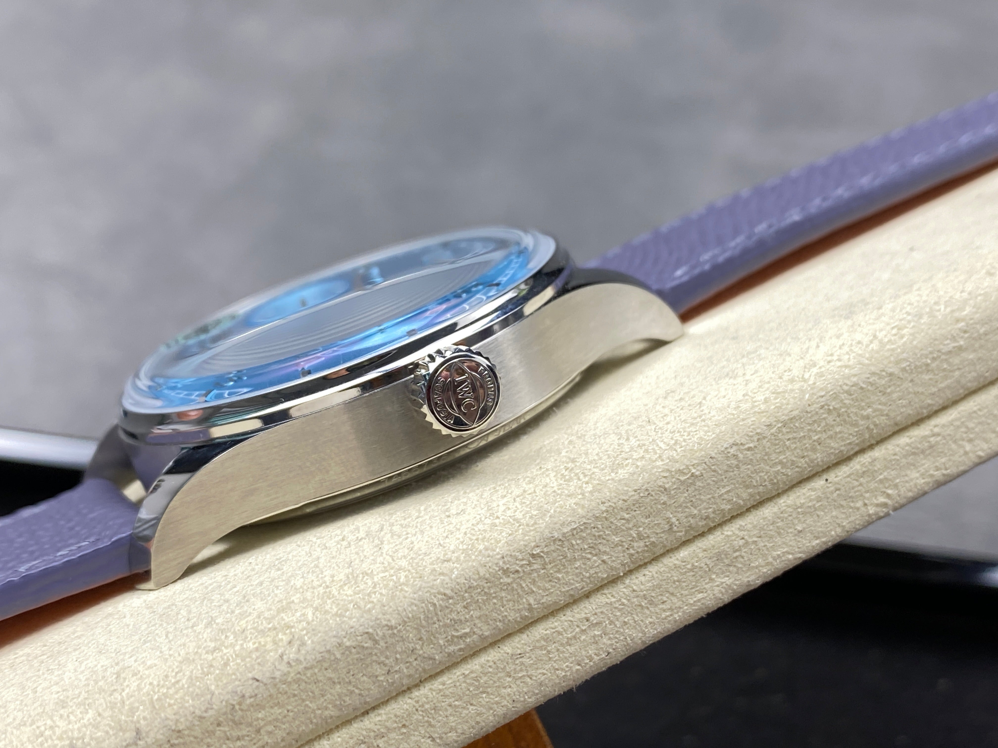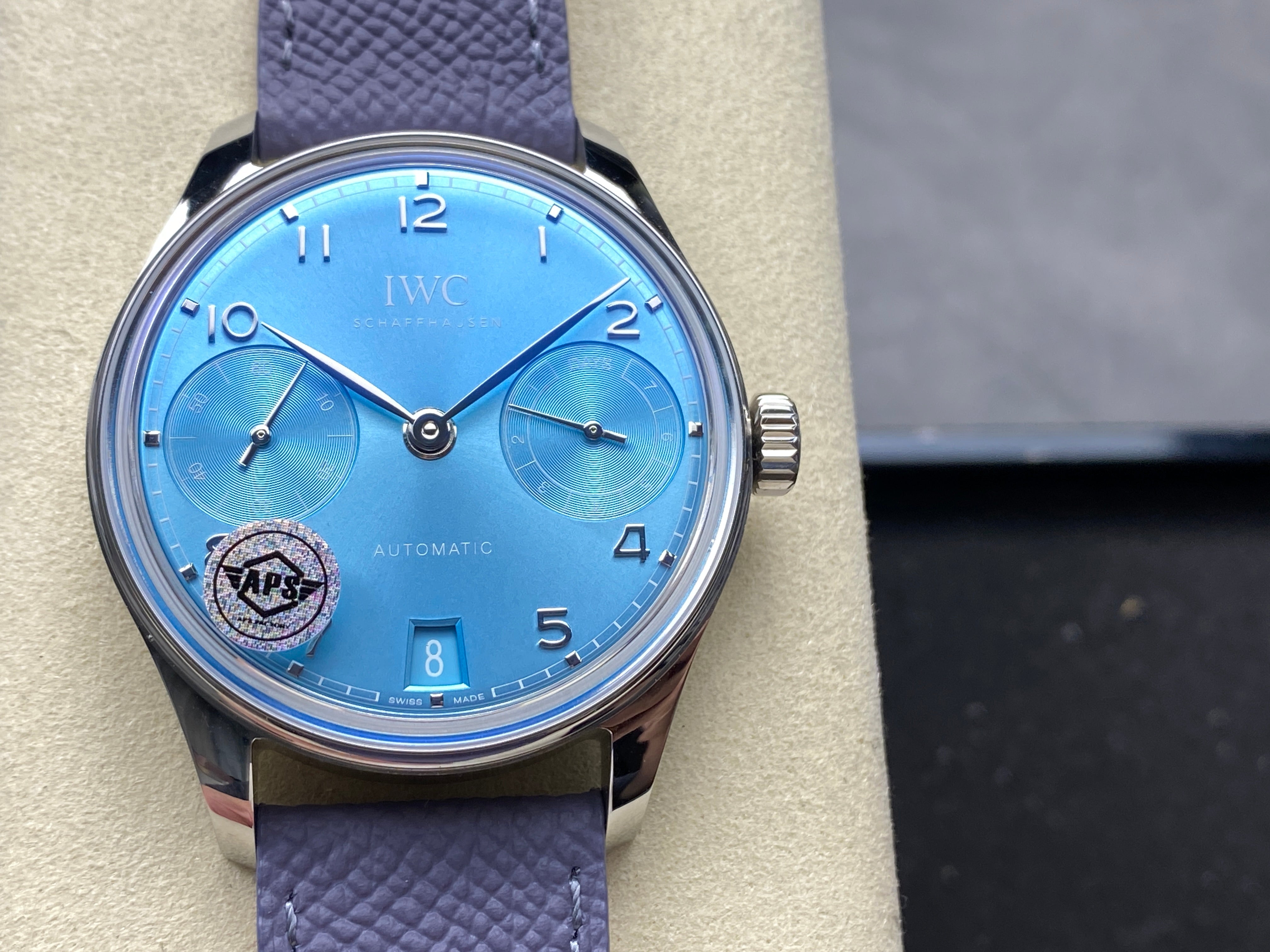 PORTUGIESER AUTOMATIC 42 WATCH SILVER CASE WITH NAVY BLUE LEATHER STRAP AND SAPPHIRE BLUE DIAL