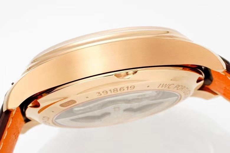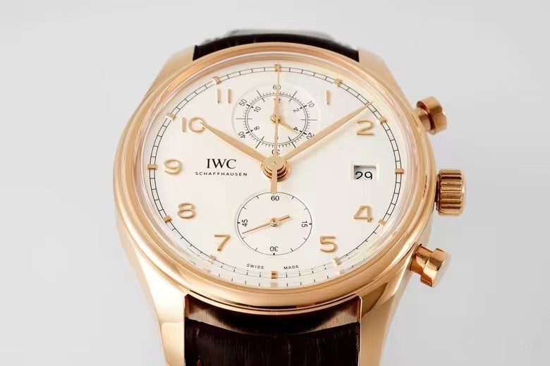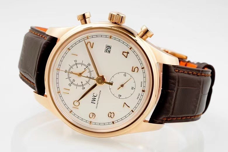 PORTUGIESER CHRONOGRAPH CLASSIC 42 MM GOLD CASE WITH BROWN LEATHER STRAP