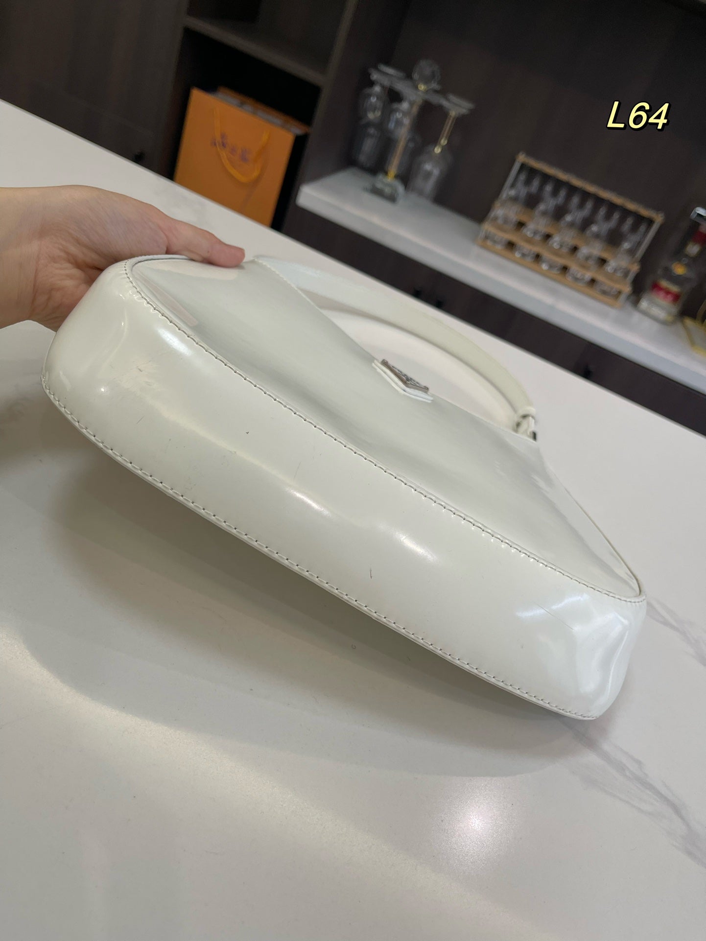 PRA 30 CLEO SHOULDER BAG IN WHITE BRUSHED LEATHER