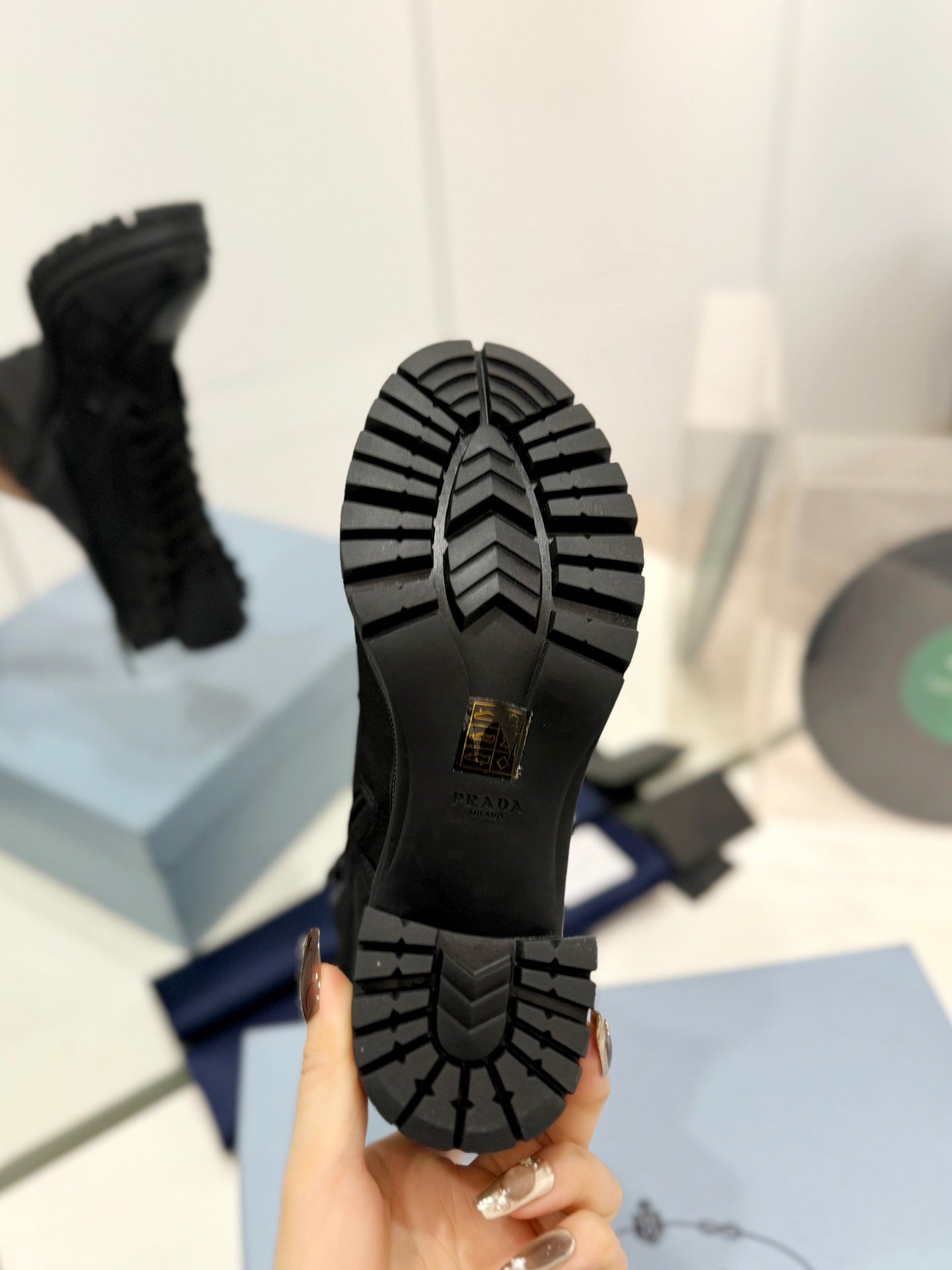 PRA BRUSHED LEATHER AND RE-NYLON LACED BOOTIES BLACK