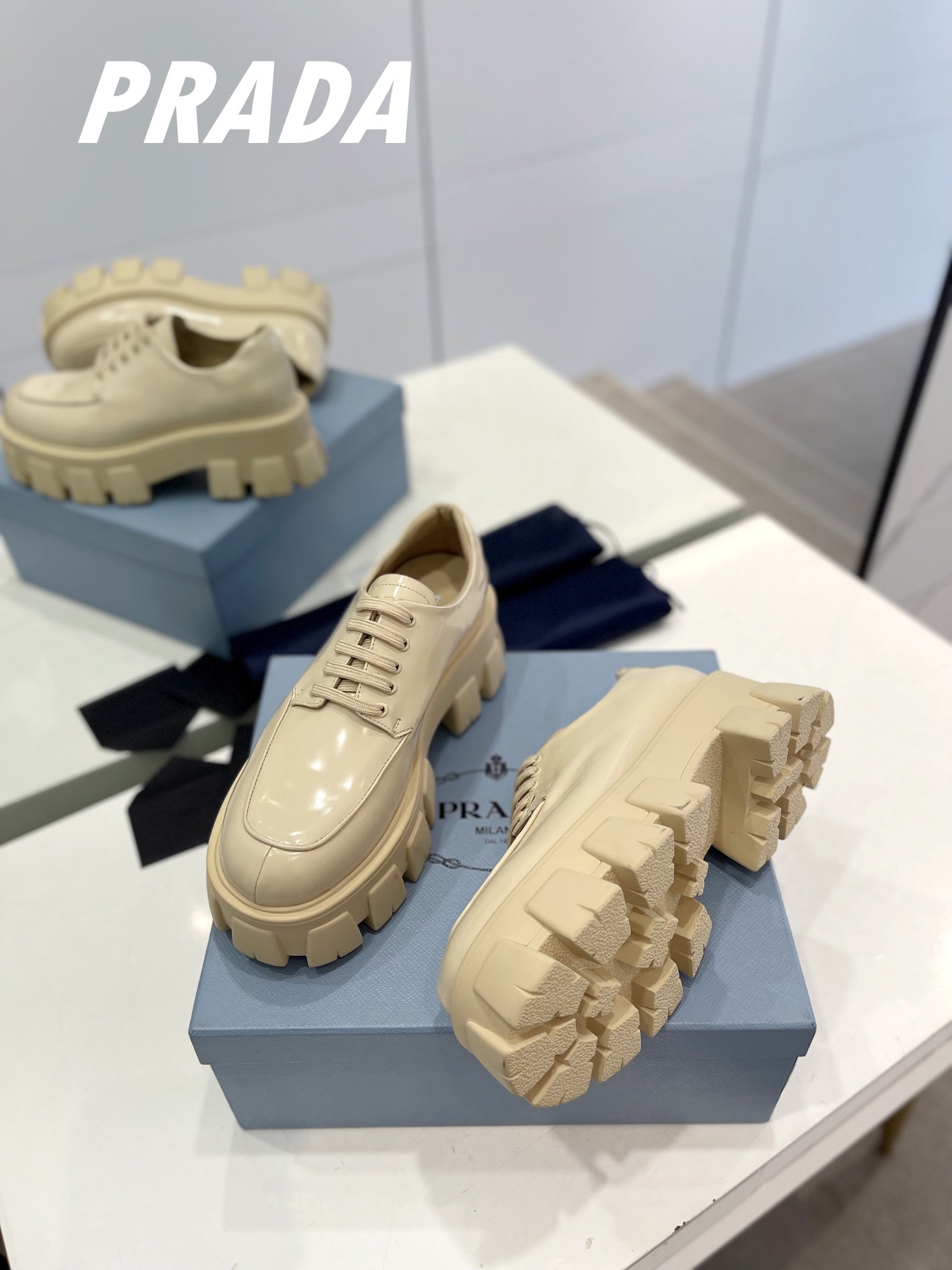 PRA BRUSHED LEATHER MONOLITH LACE-UP LOAFERS BEIGE