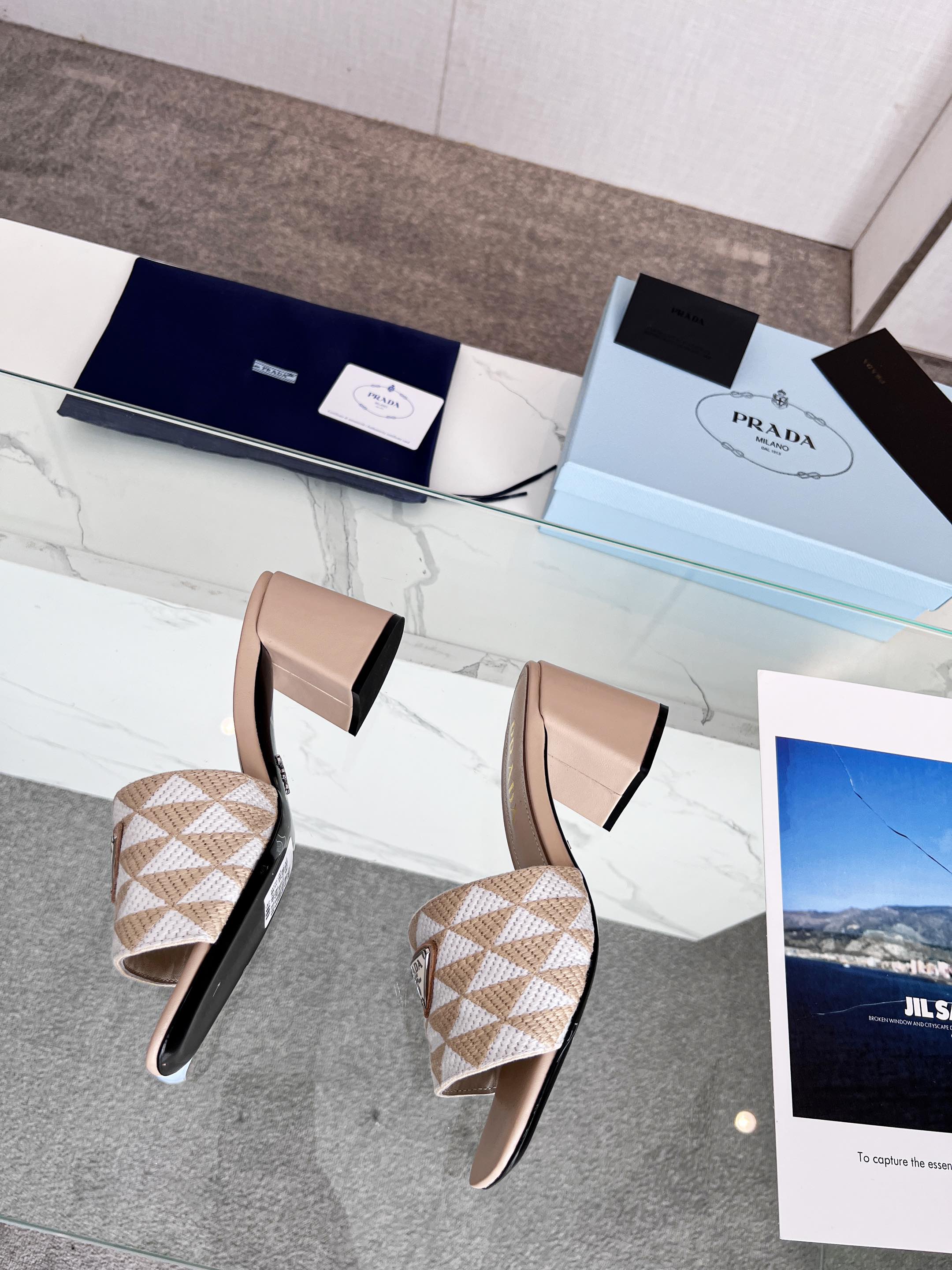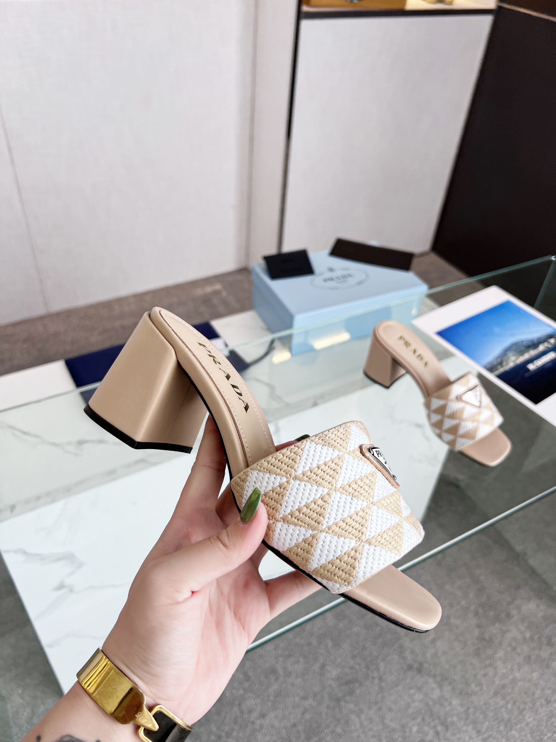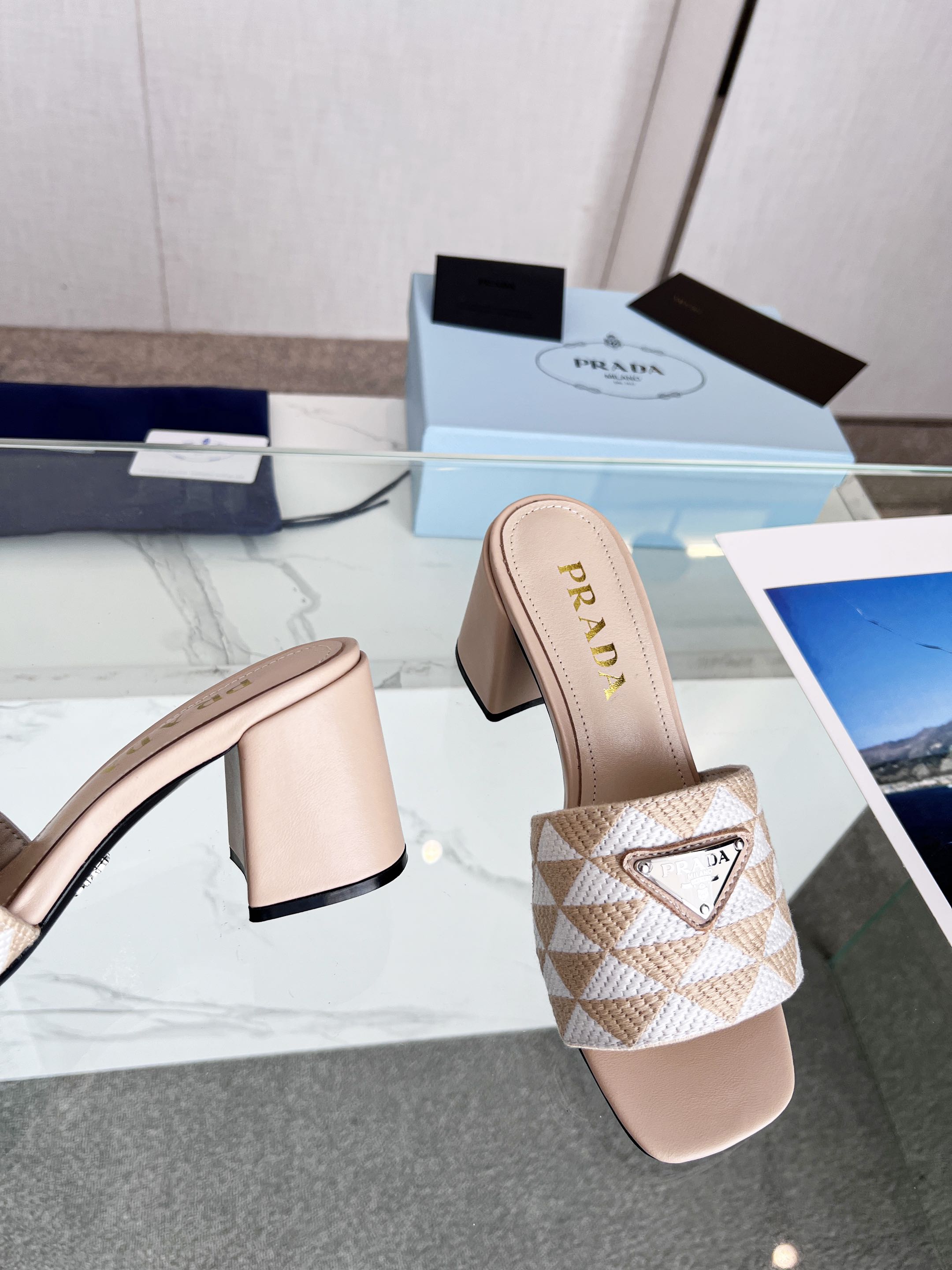 PRA EMBROIDERED SLIDES 65 BEIGE FABRIC
