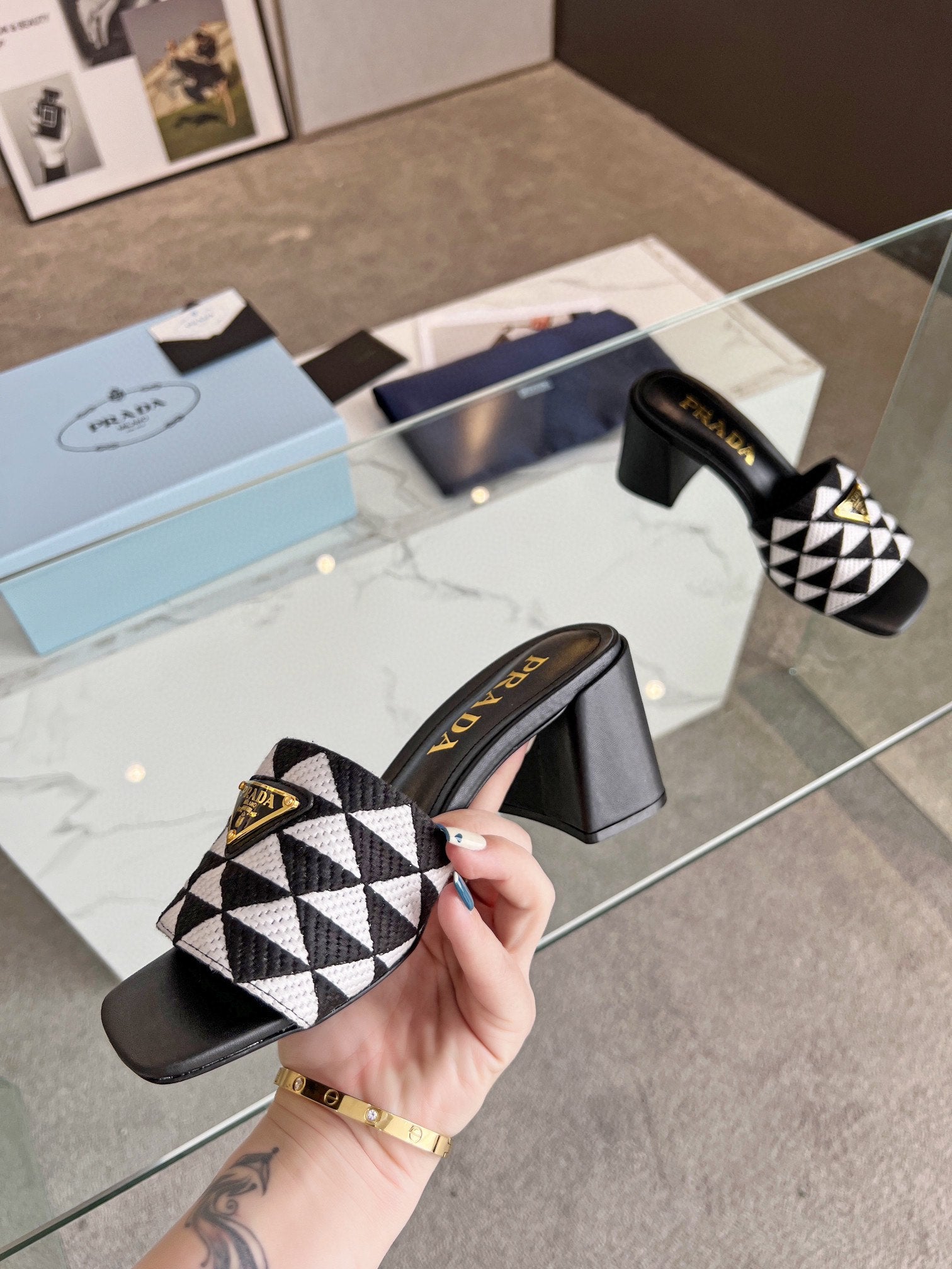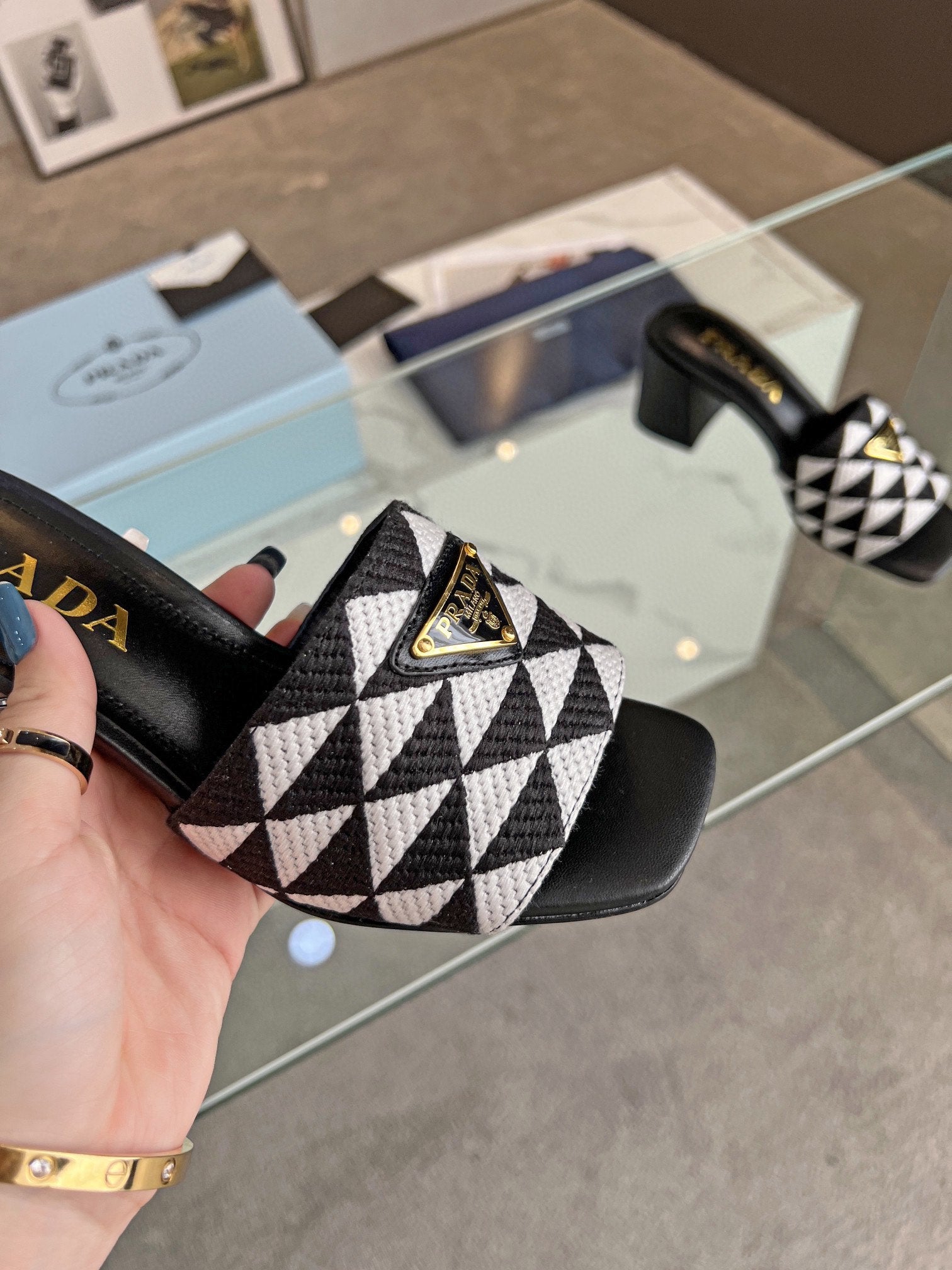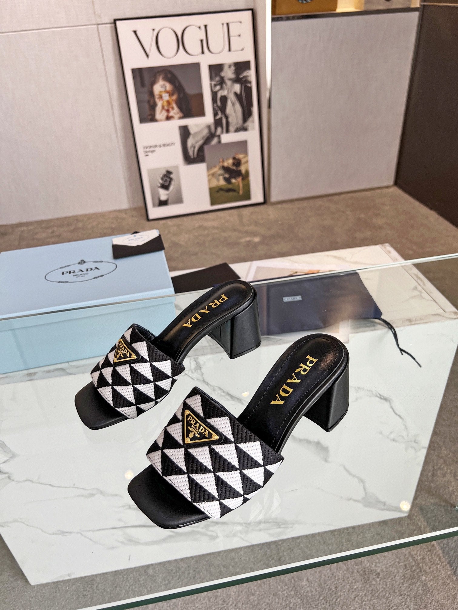 PRA EMBROIDERED SLIDES 65 BLACK AND WHITE FABRIC