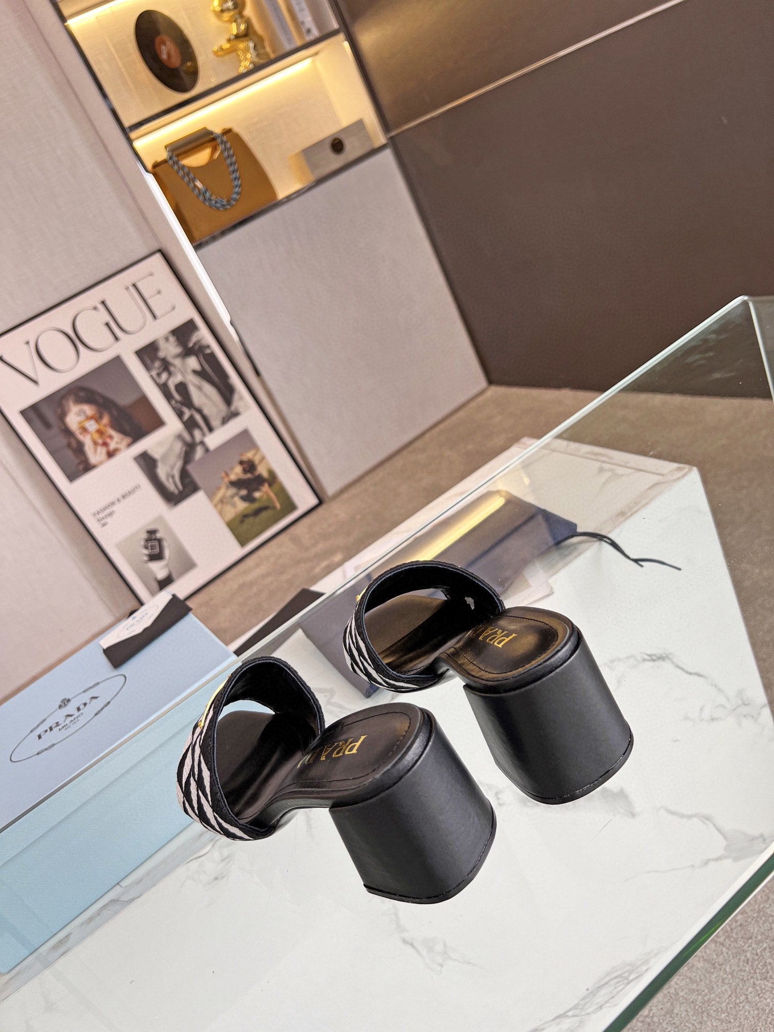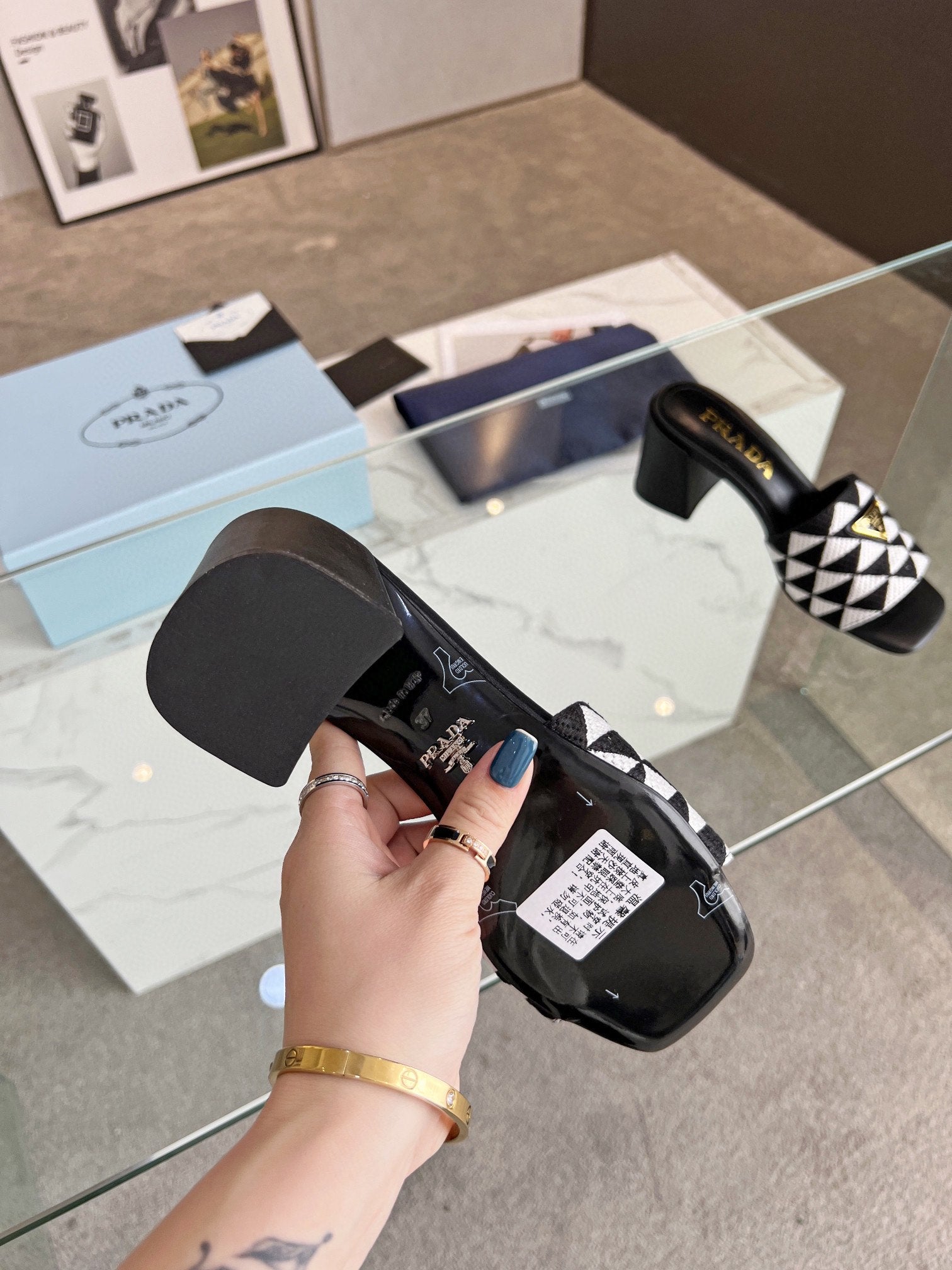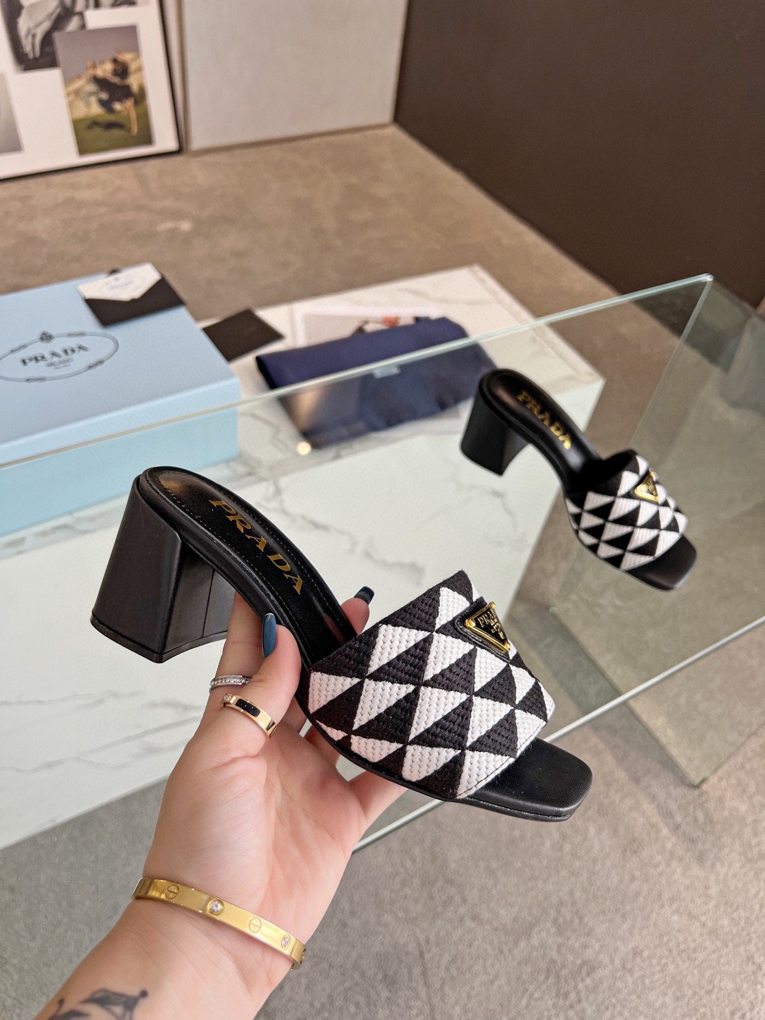 PRA EMBROIDERED SLIDES 65 BLACK AND WHITE FABRIC