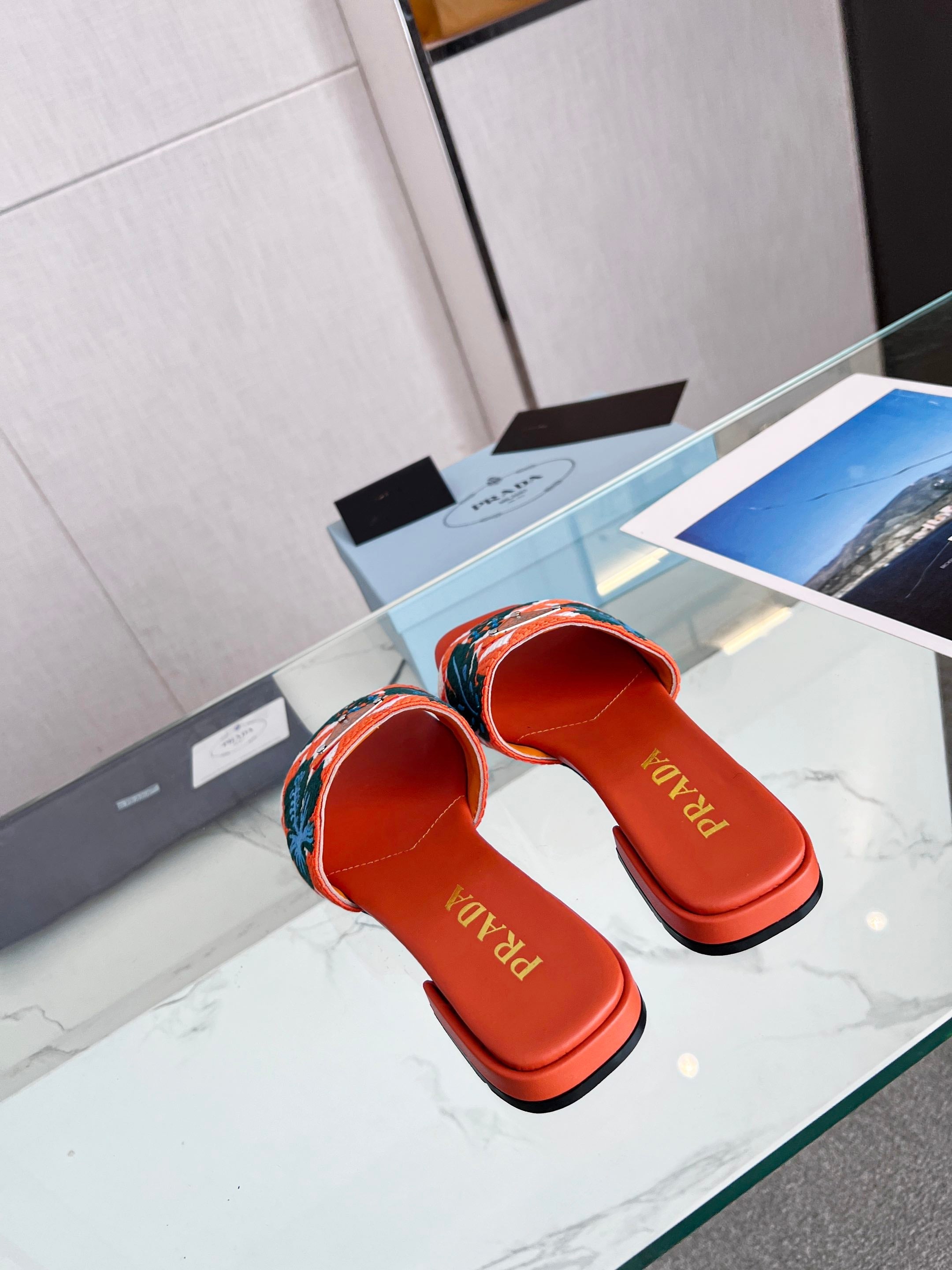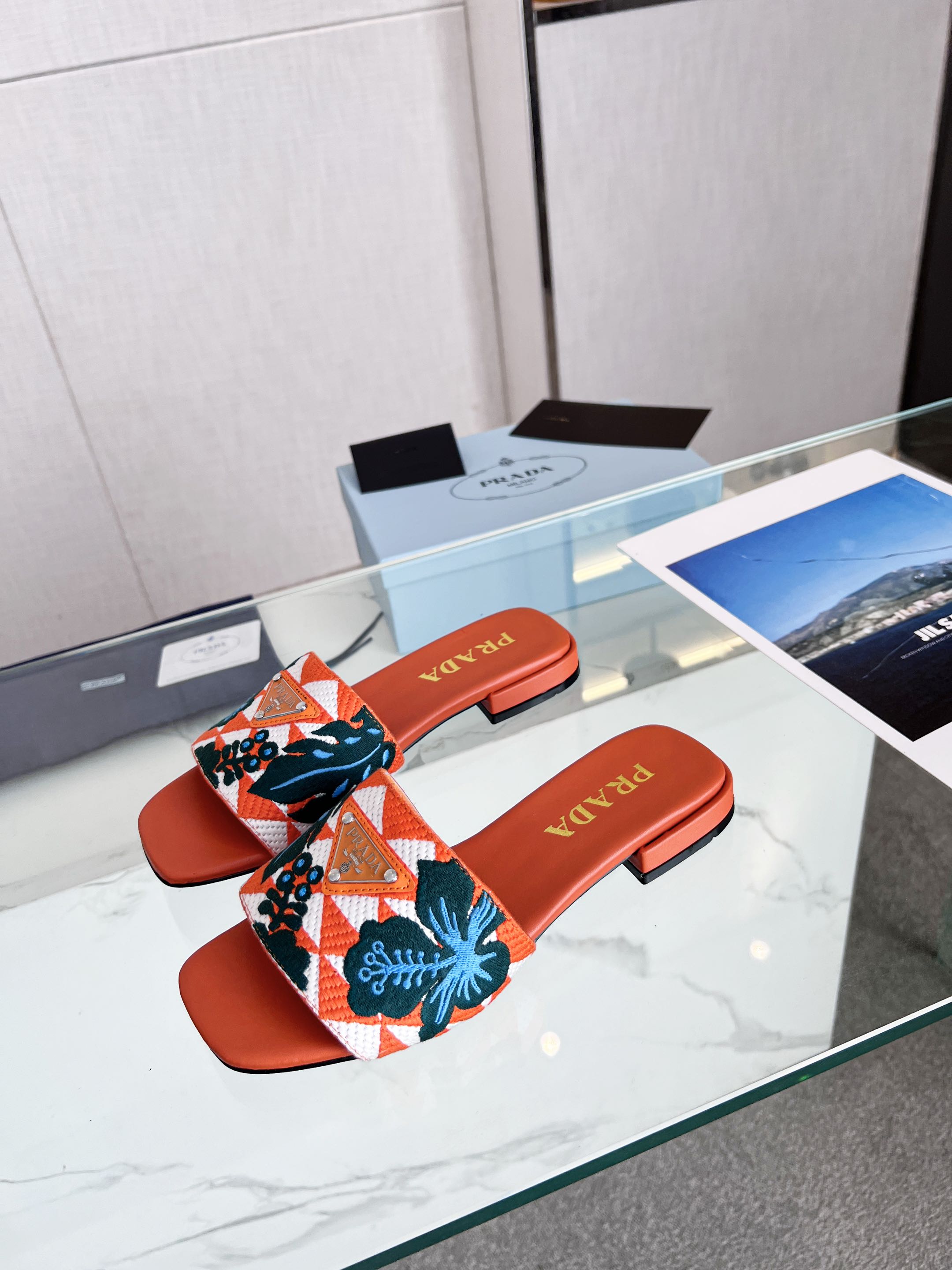 PRA EMBROIDERED SLIDES FLAT ORANGE FABRIC