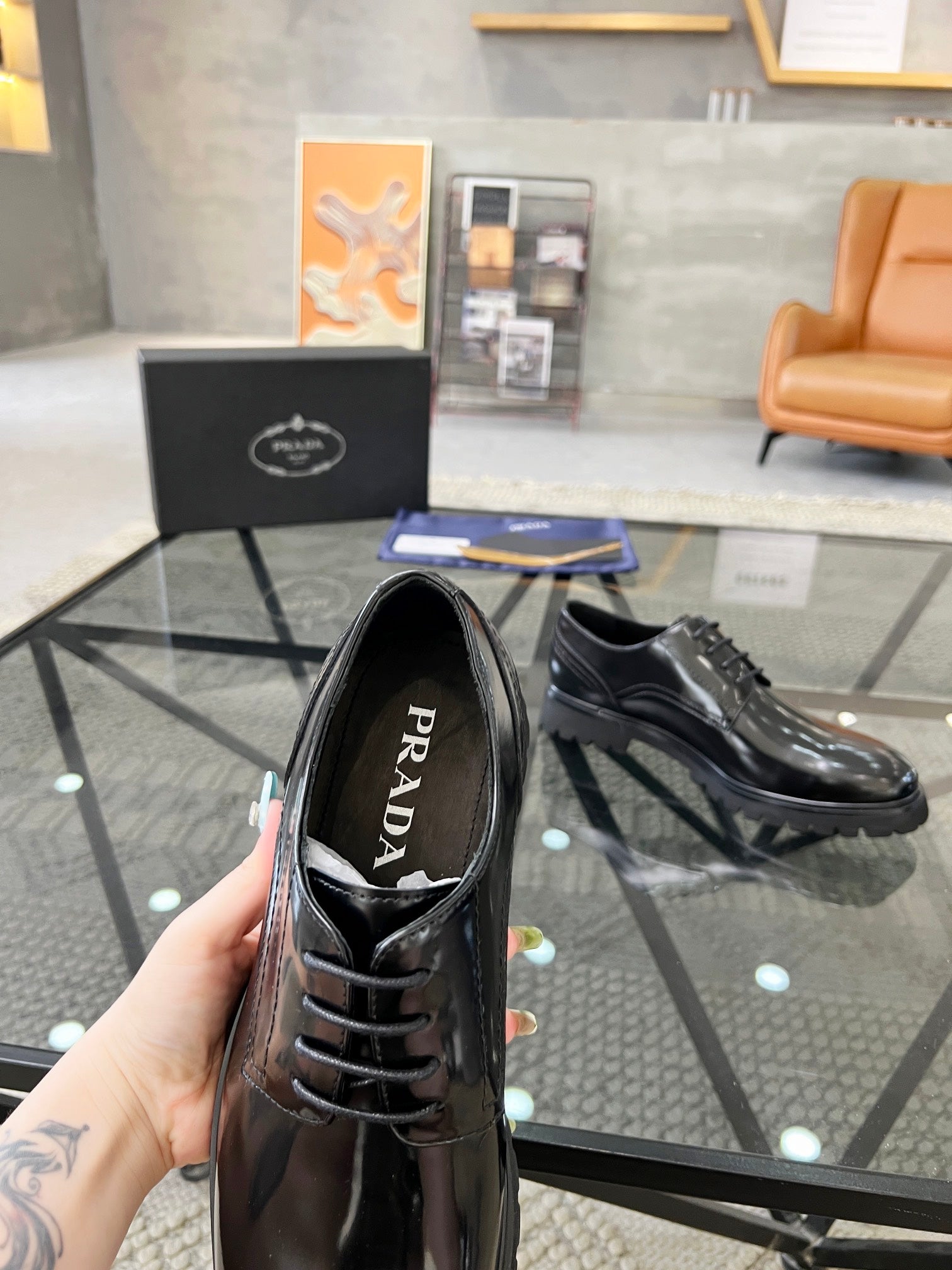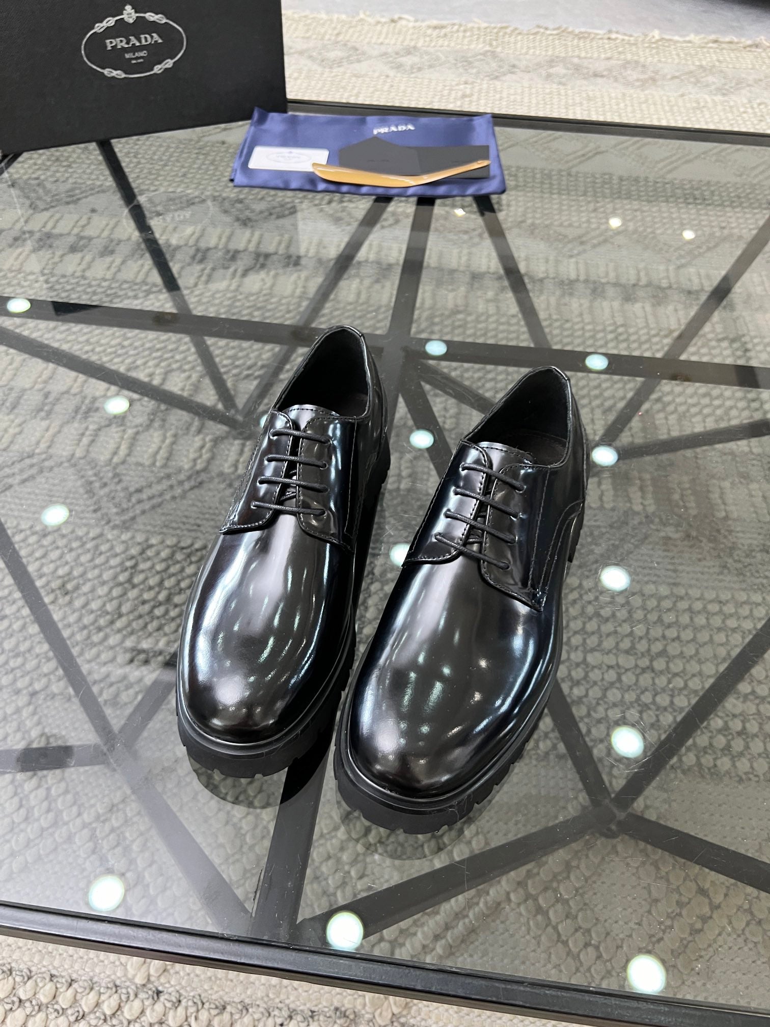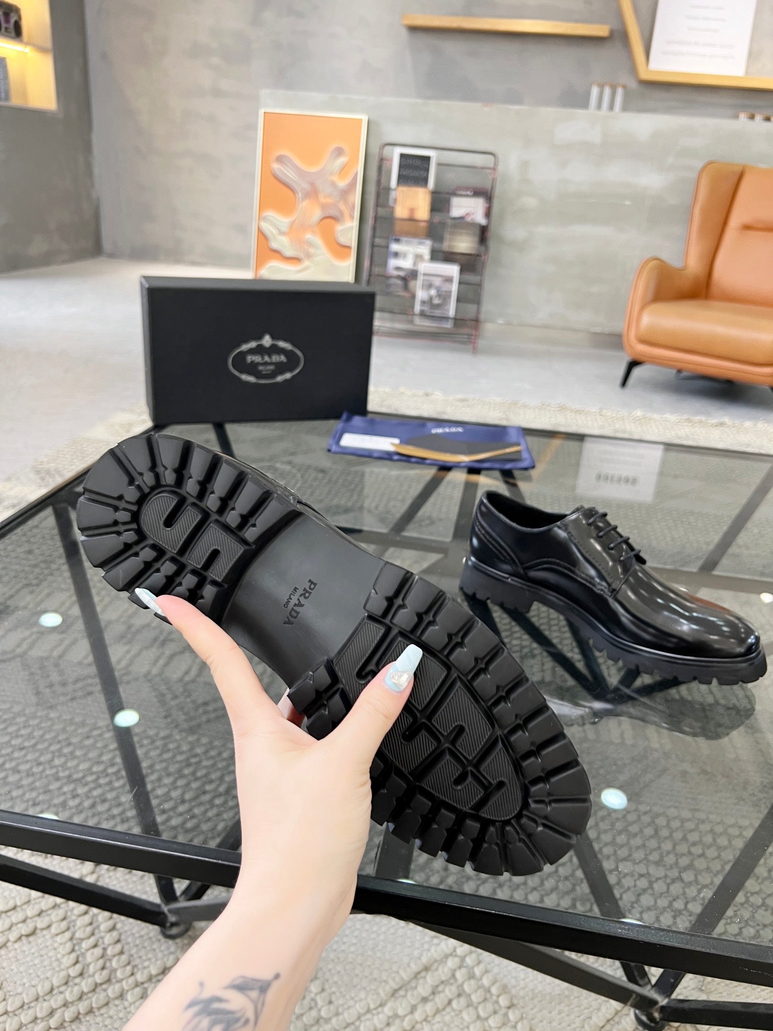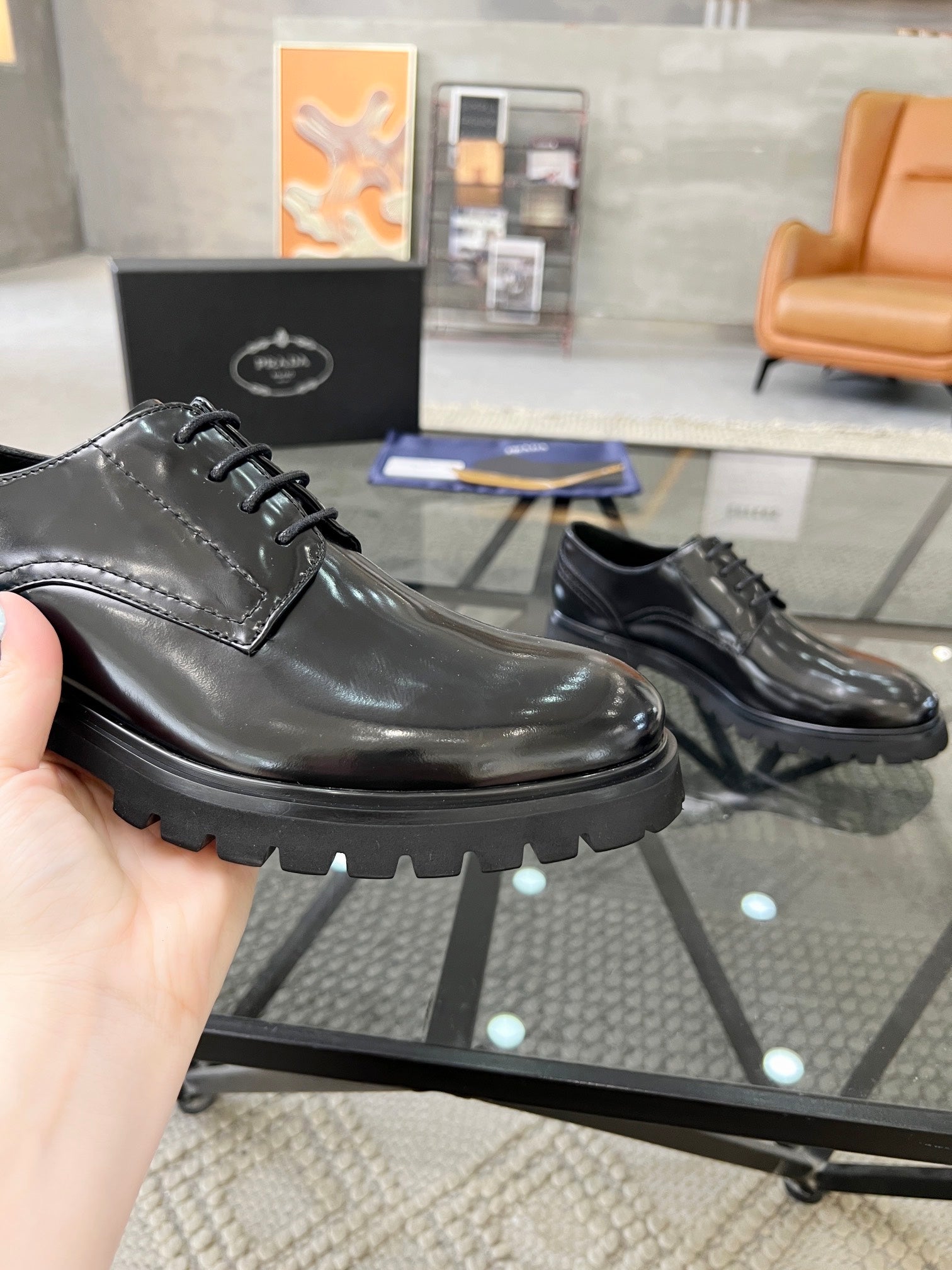 PRA LACE-UP SHOES IN GLOSSY BLACK CALFSKIN