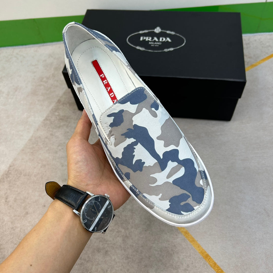 PRA LOAFER IN CAMO PATTERN LIGHT BLUE SUEDE