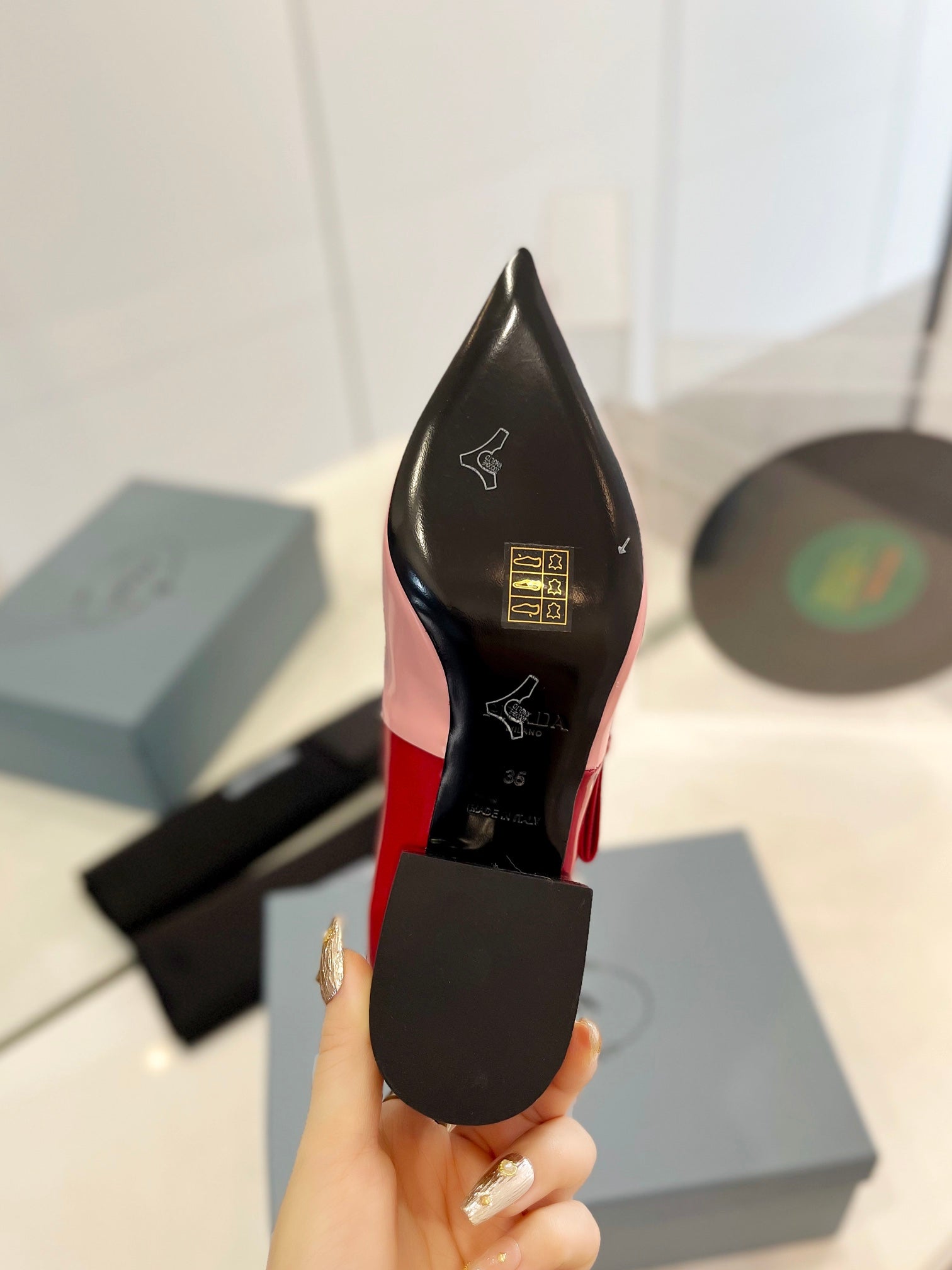 PRA MID - HEELS RED AND LIGHT PINK LAMBSKIN WITH BOW