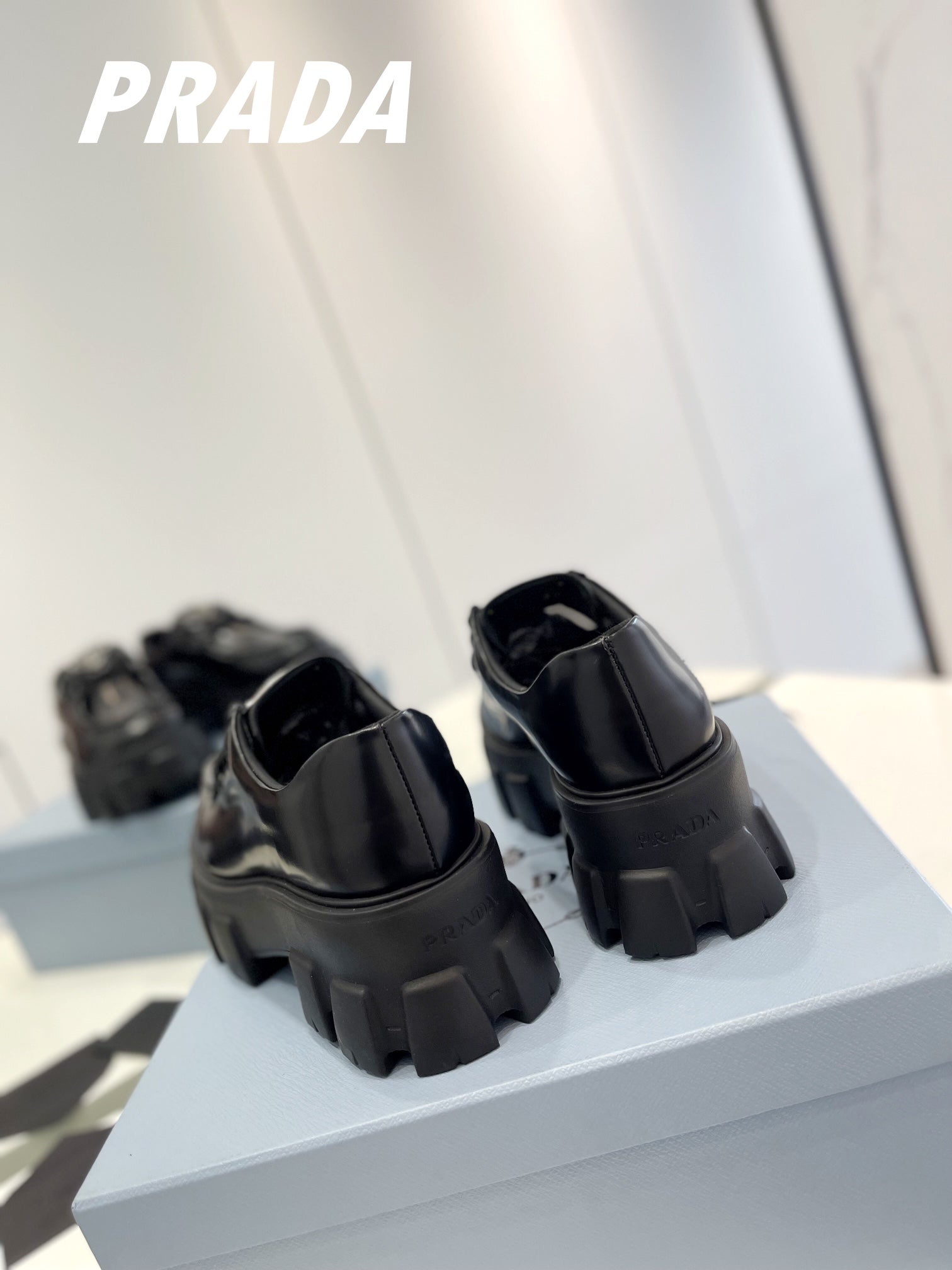 PRA MONOLITH LACE-UP LOAFERS BLACK CALFSKIN