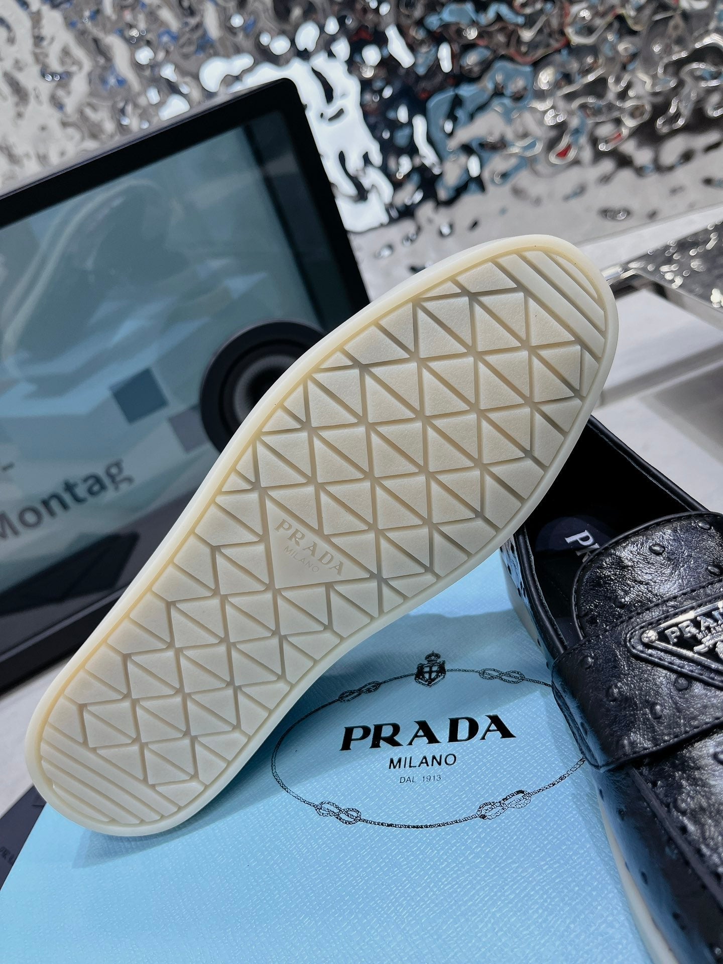 PRA OSTRICH PATTERN LOAFERS BLACK CALFSKIN