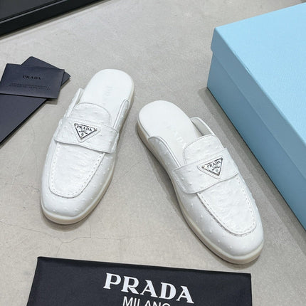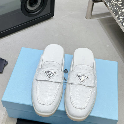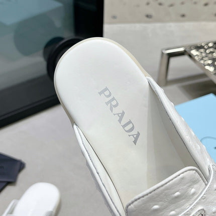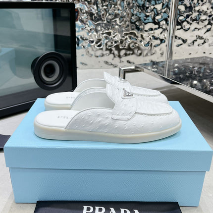 PRA OSTRICH PATTERN MULES WHITE CALFSKIN