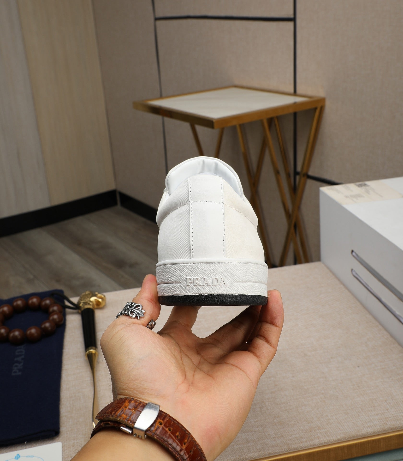 PRA RE-NYLON SNEAKERS IN WHITE LEATHER AND FABRIC
