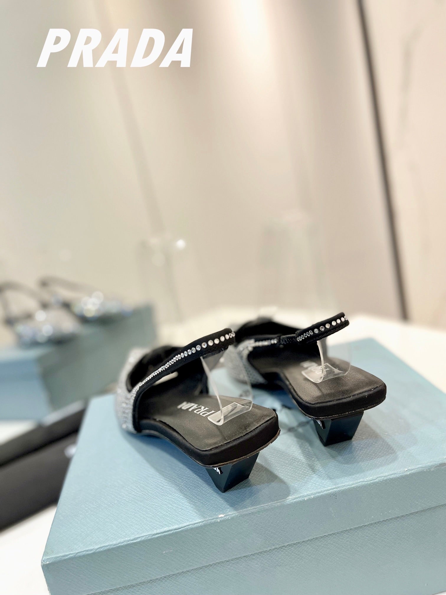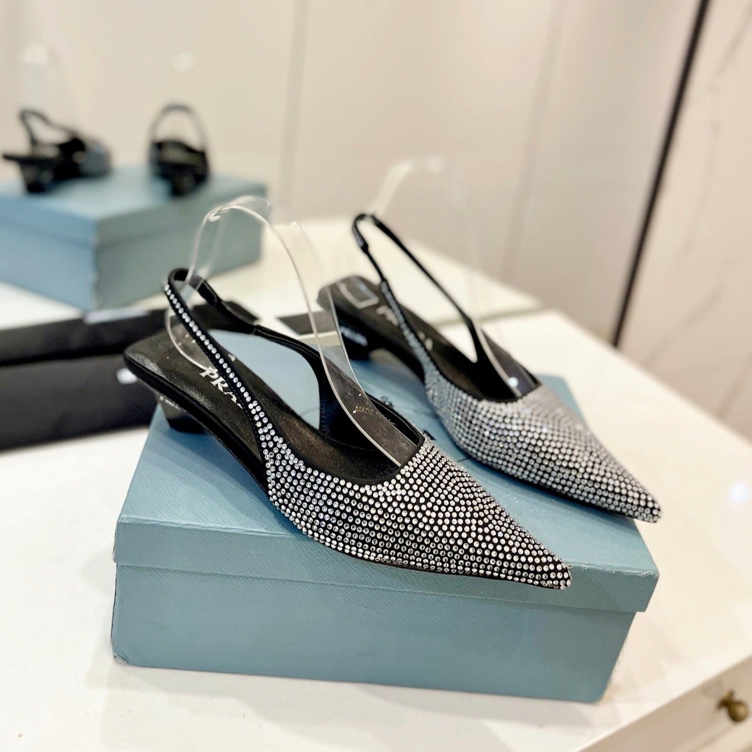 PRA SLINGBACK PUMPS BLACK SATIN WITH WHITE CRYSTALS