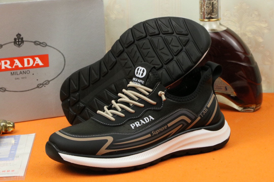 PRA SNEAKER IN BLACK MIX GOLD CALFSKIN AND BREATHABLE MESH