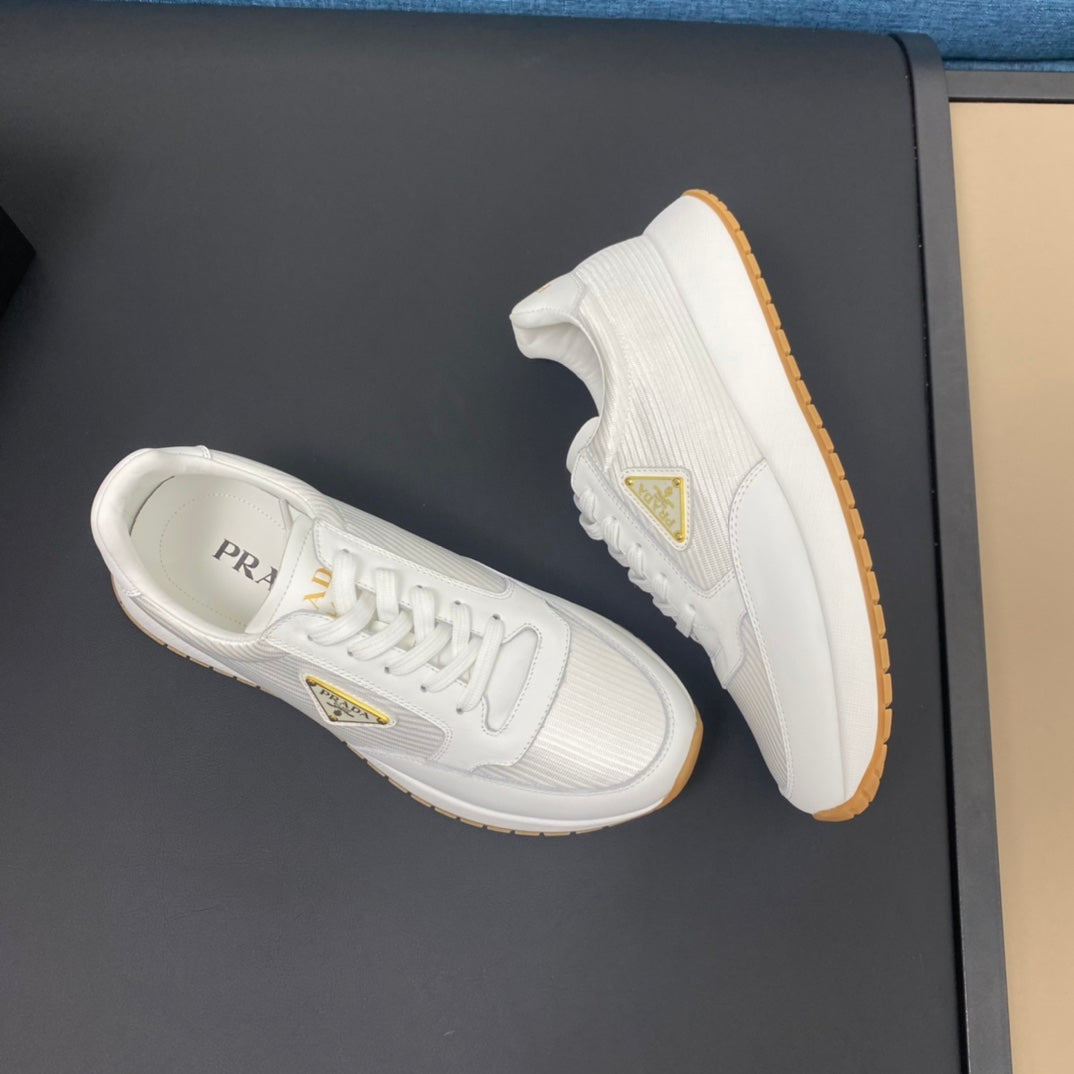PRA SNEAKER IN WHITE CALFSKIN AND FABRIC WITH GOLDEN LOGO