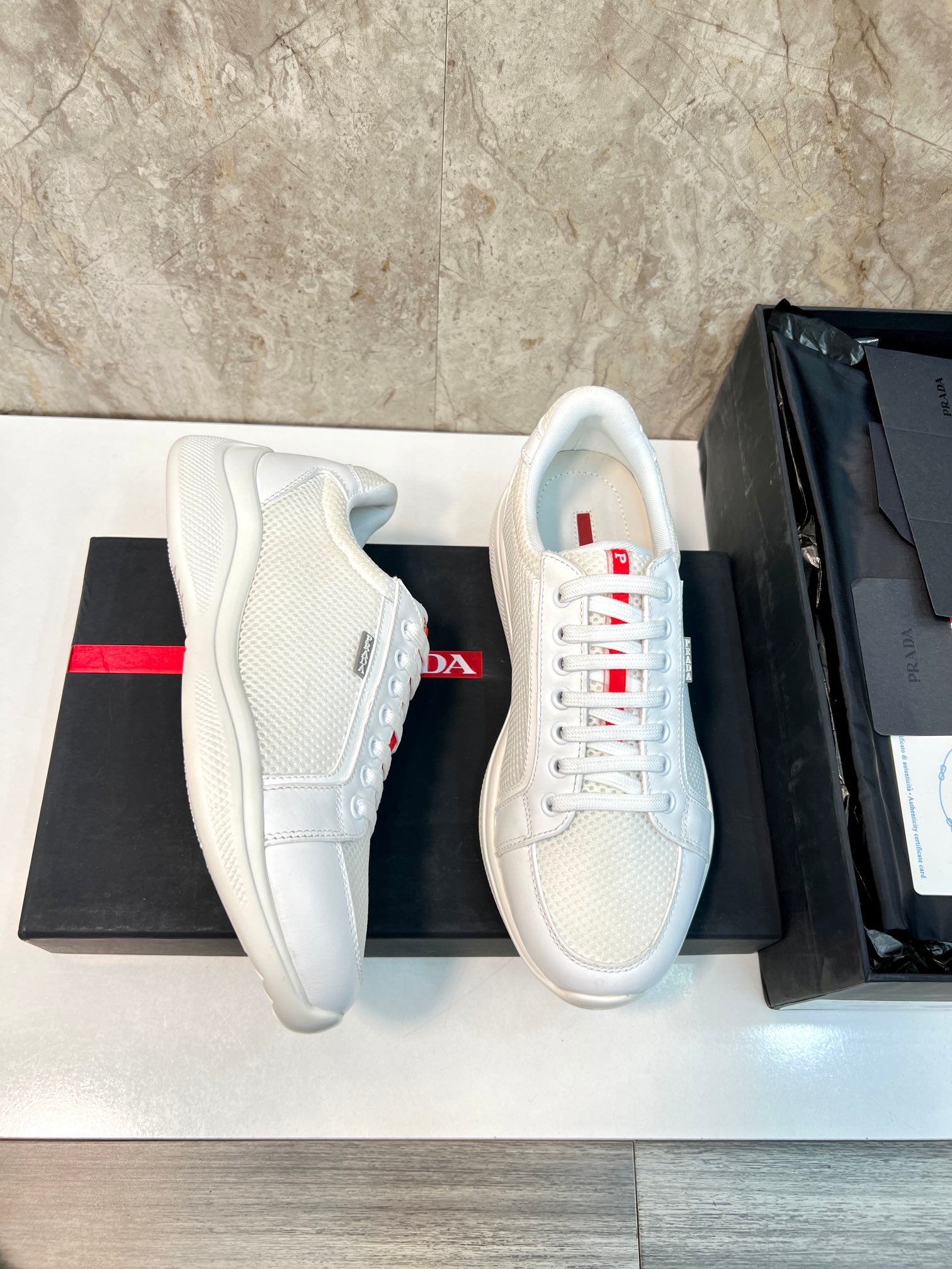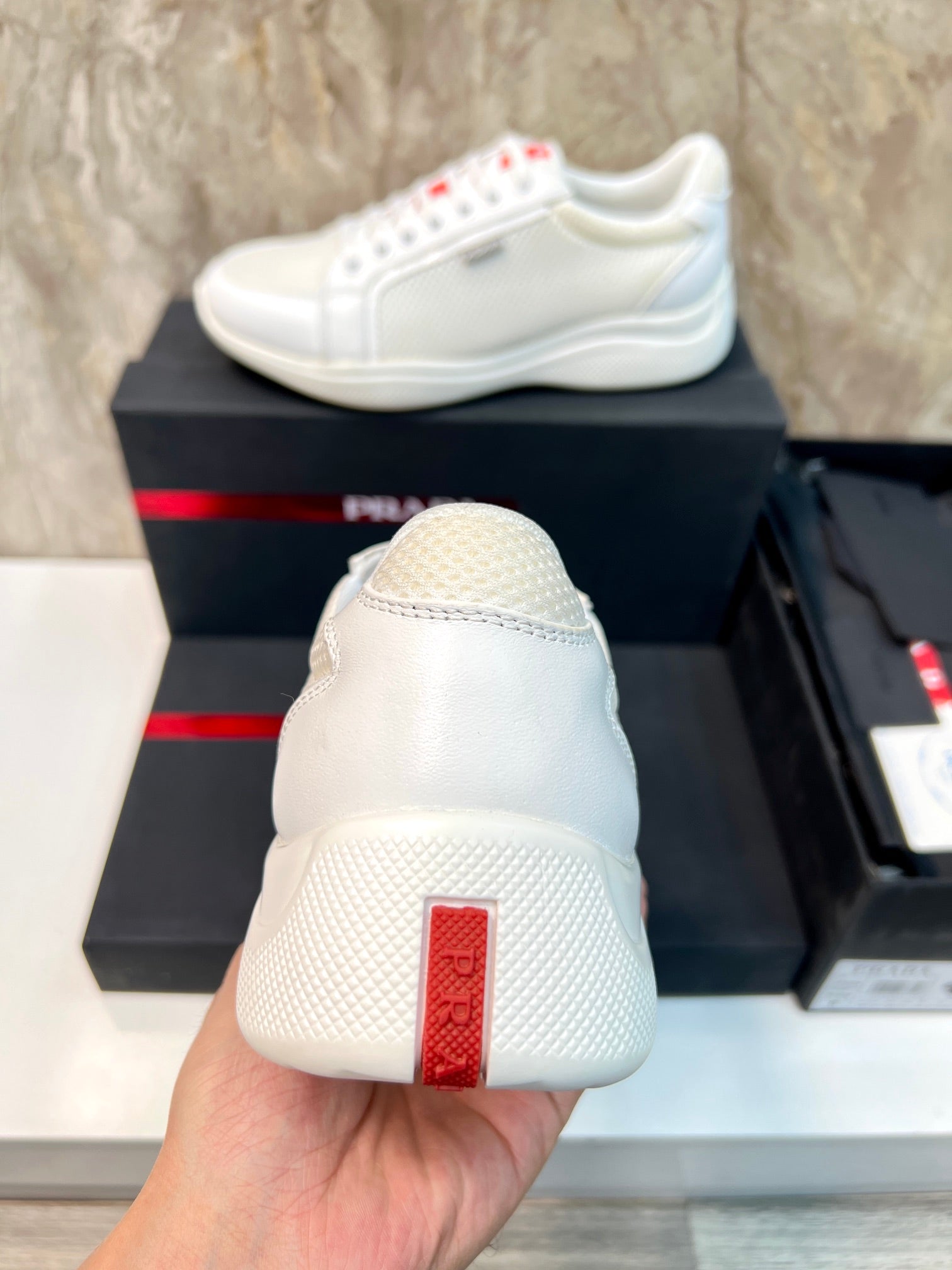 PRA SNEAKER WHITE CALFSKIN AND MESH FABRIC