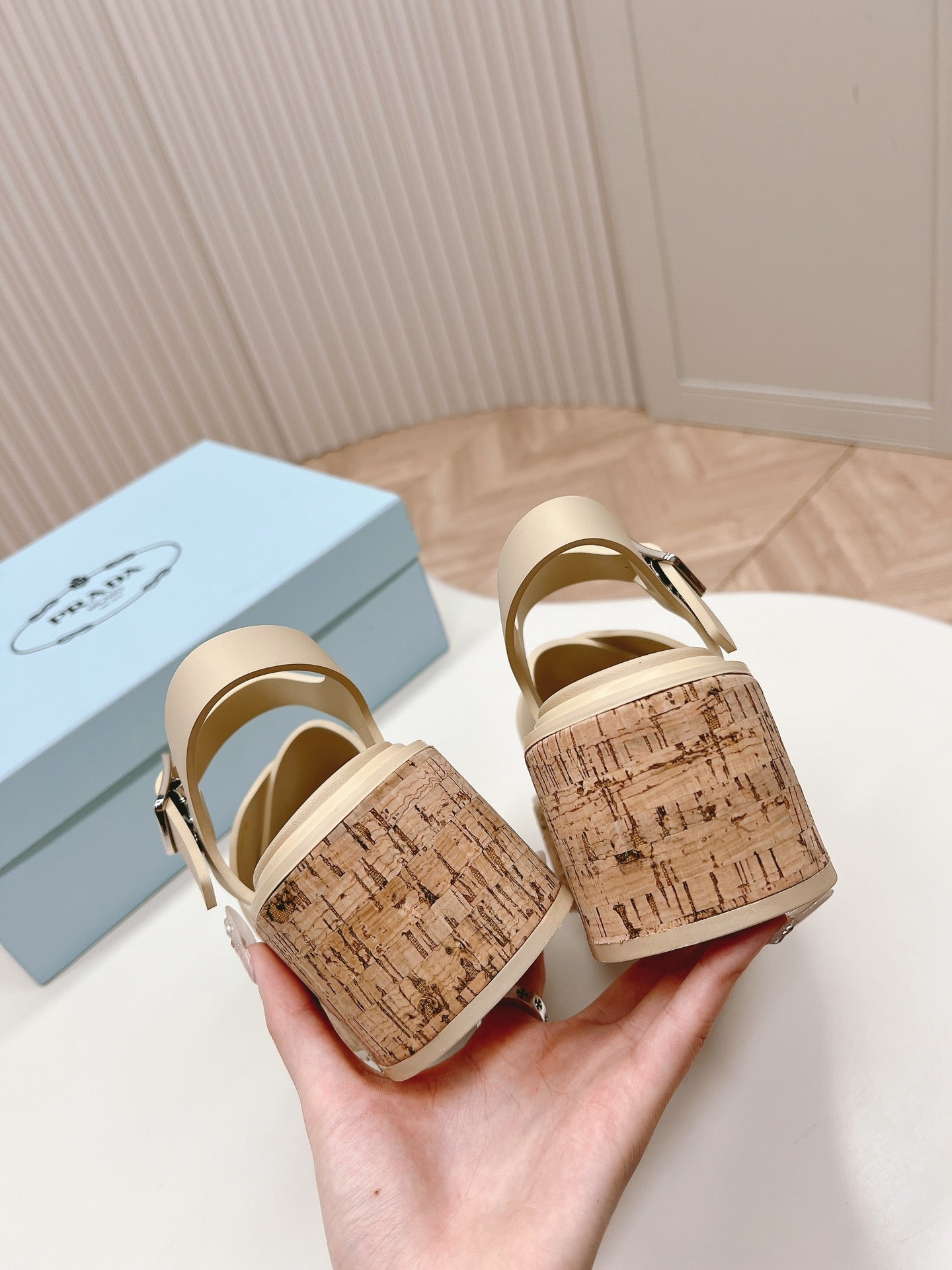 PRA WEDGE PLATFORM SANDALS BEIGE CALFSKIN