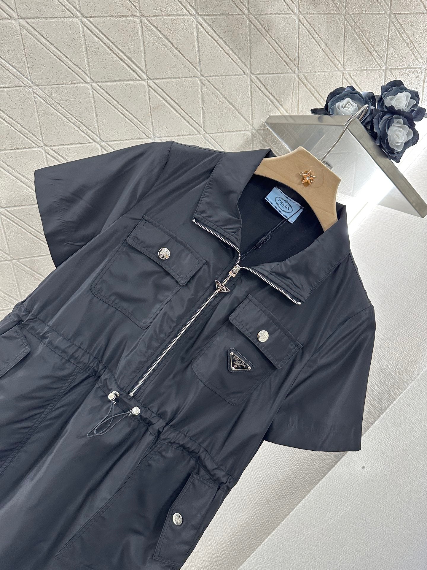 PRAD 25S SHORT SLEEVE DRAWSTRING DRESS 265563