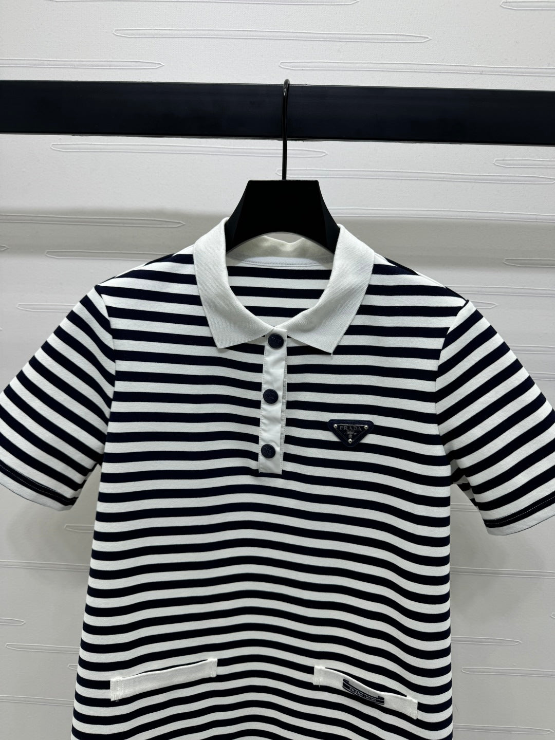PRAD 25S STRIPED SHORT SLEEVE KNIT DRESS 264218