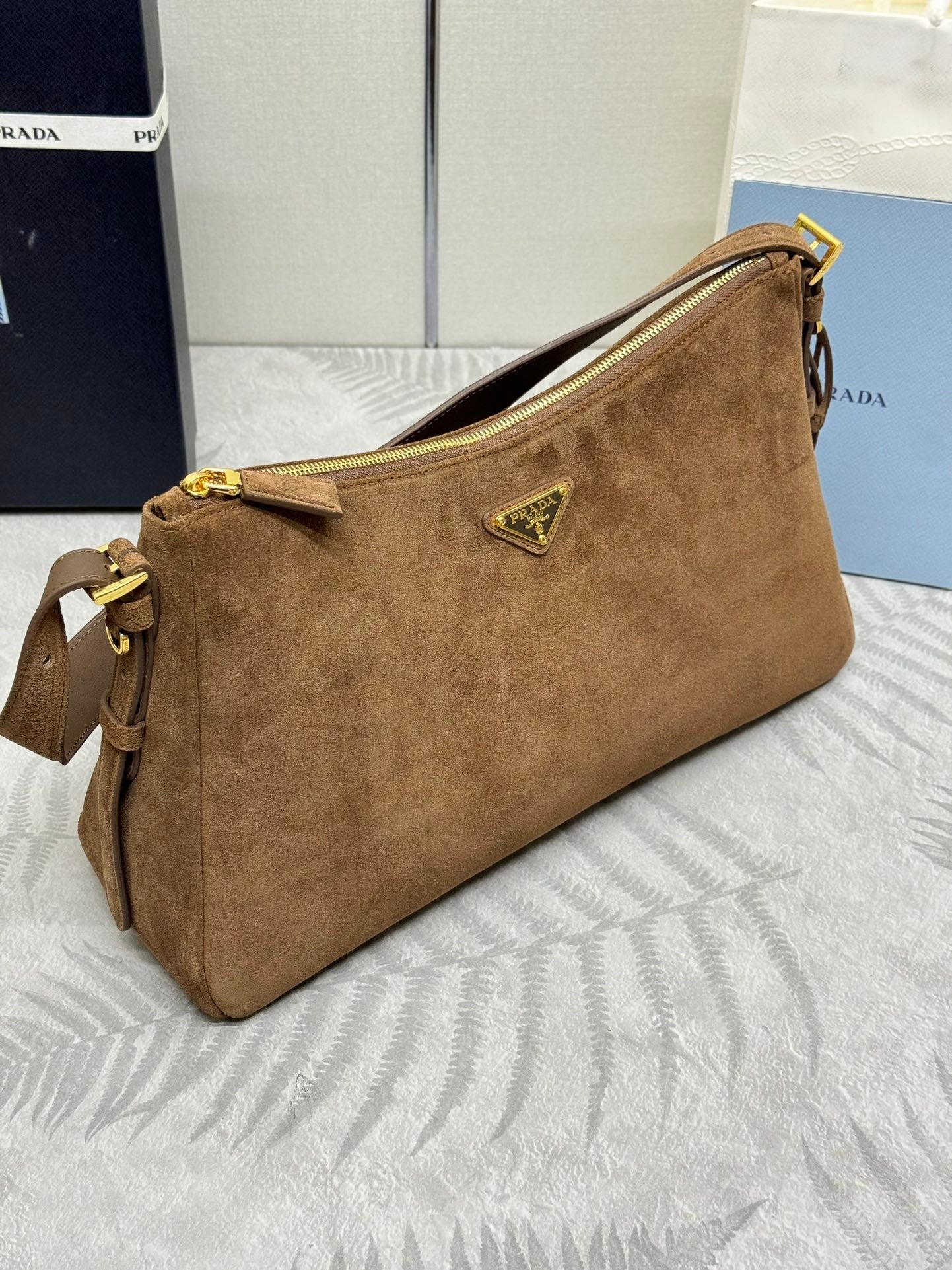 PRADA 25S AIMEE SHOULDER BAG 39 IN BROWN SUEDE