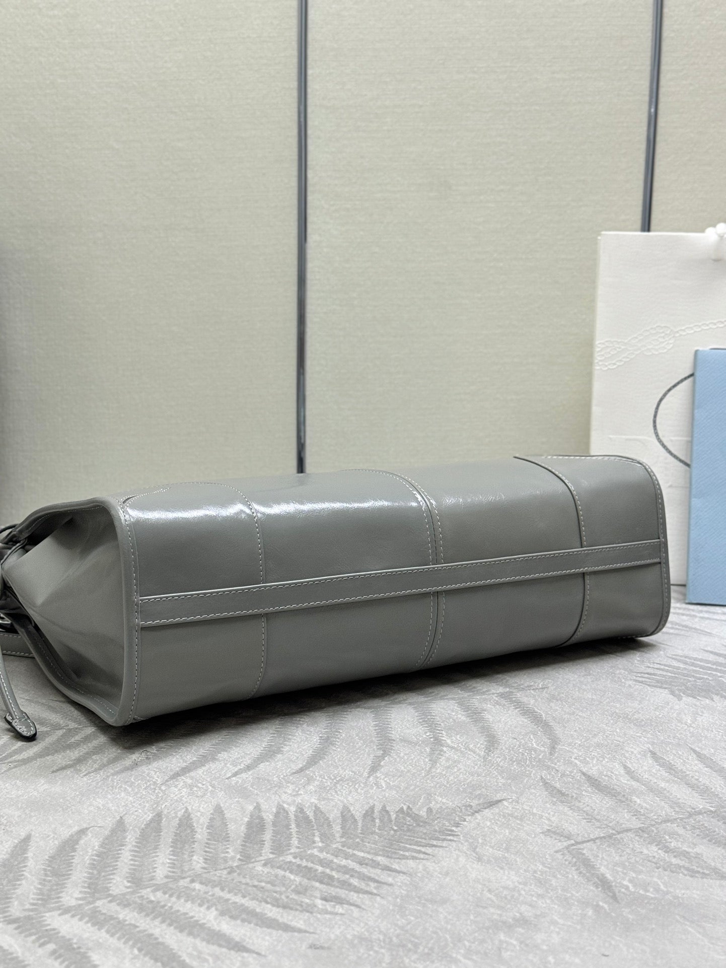 PRADA 25S BONNIE LARGE HANDBAG 38 IN GRAY GLOSSY CALFSKIN GOLD HARDWRE