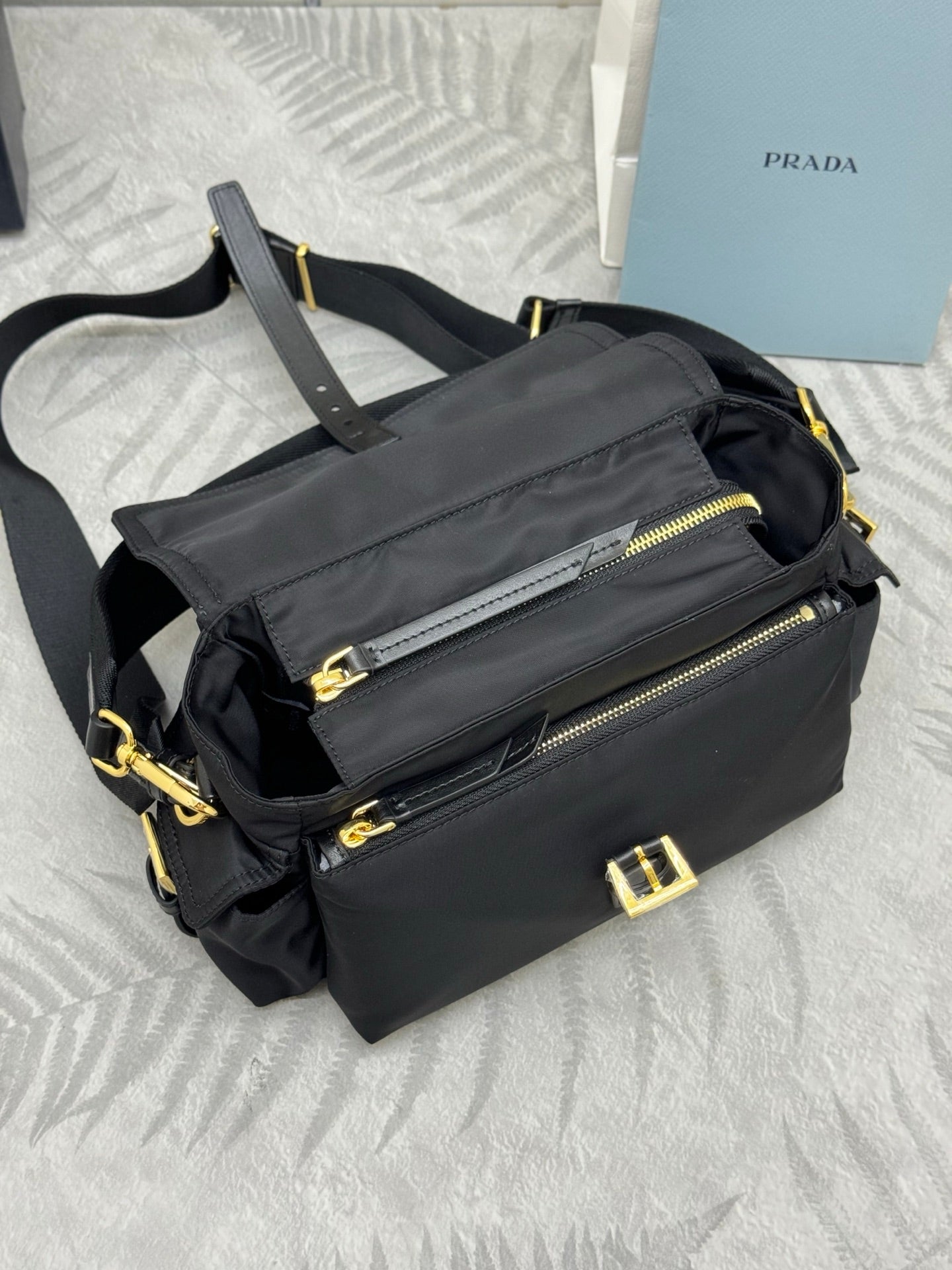 PRADA 25S EXPLORE LARGE SHOULDER BAG 30 IN BLACK RE-NYLON WITH FLAP