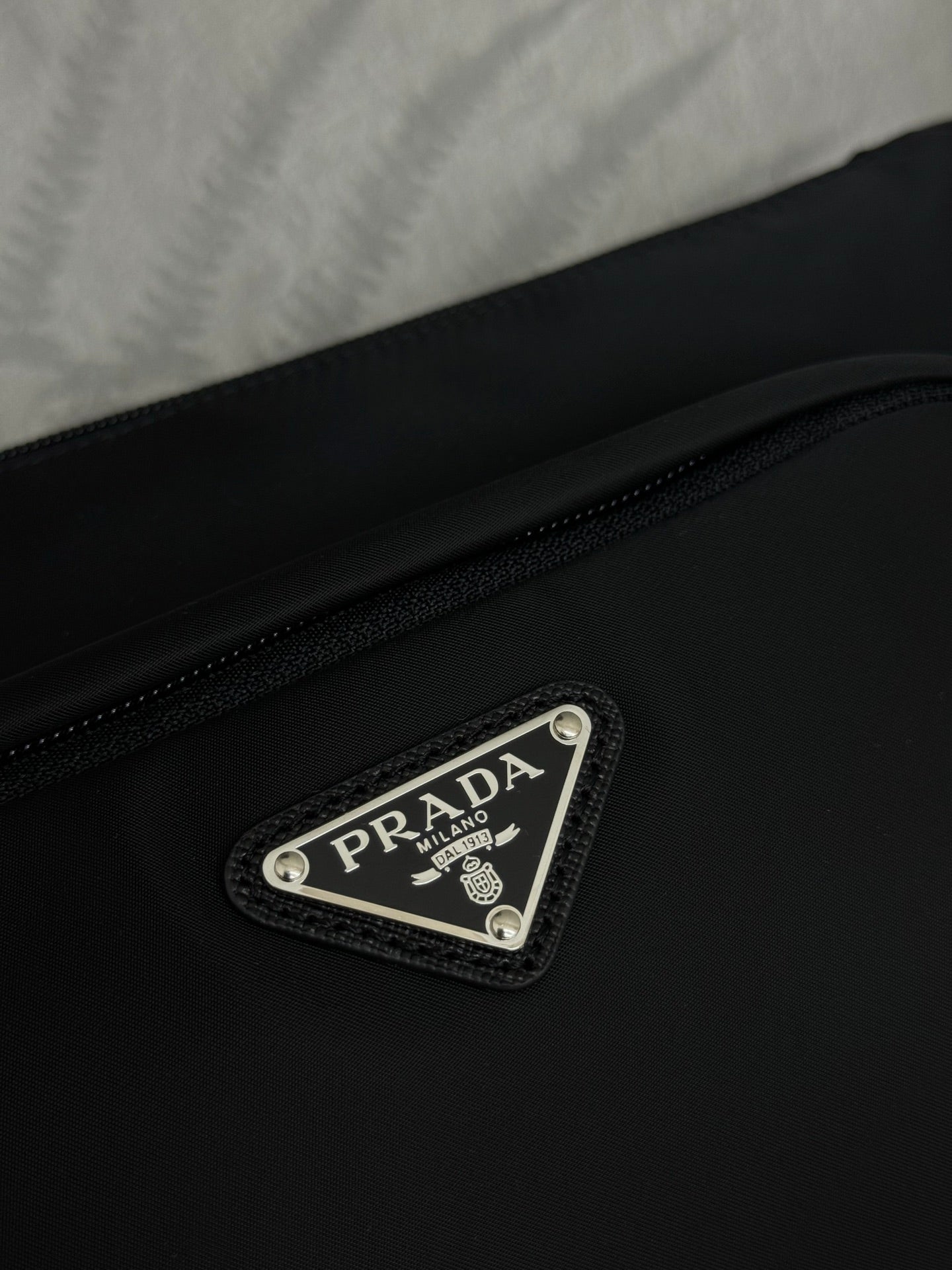 PRADA 25S MEDIUM MESSENGER BAG 35 IN BLACK RE-NYLON AND CALFSKIN